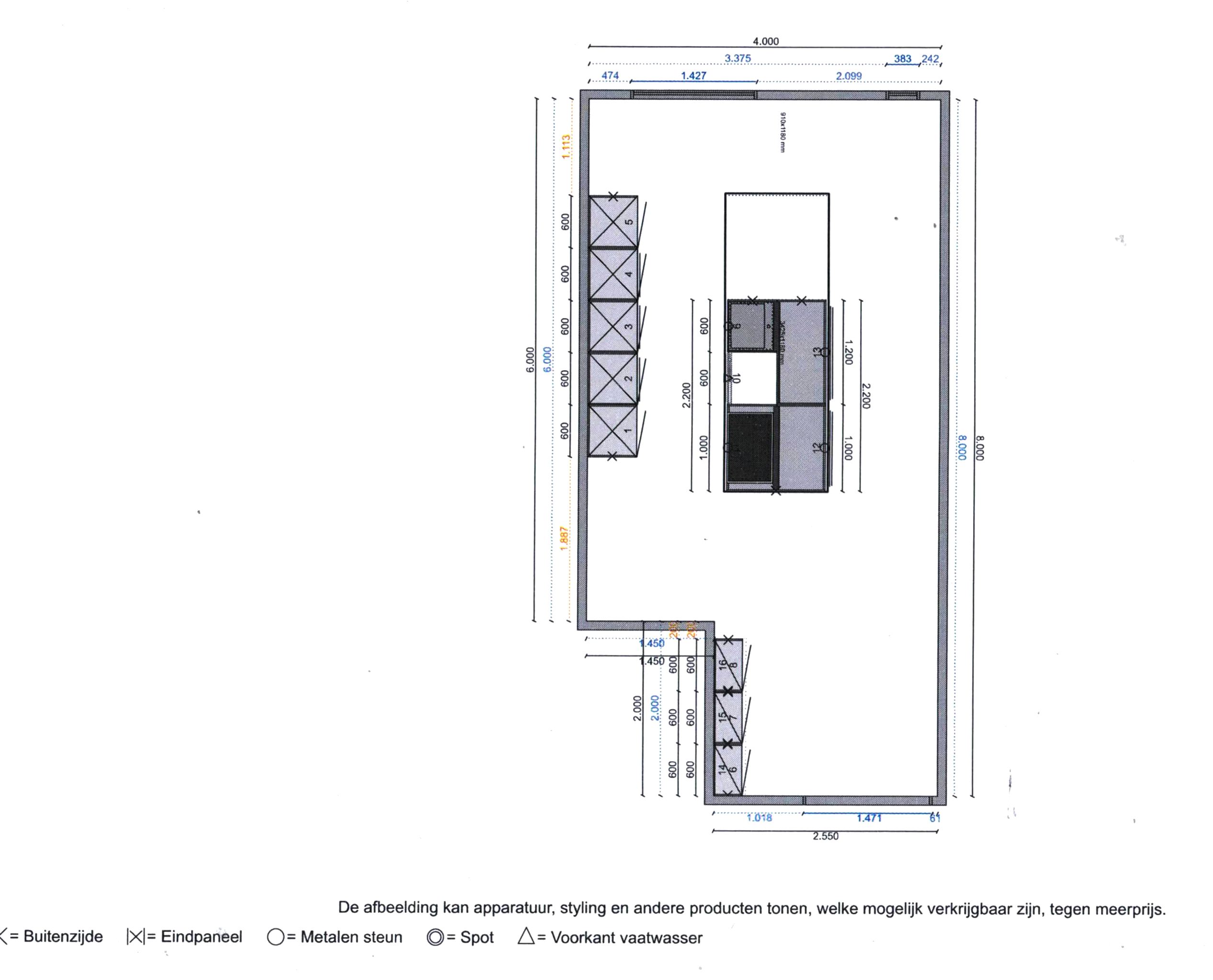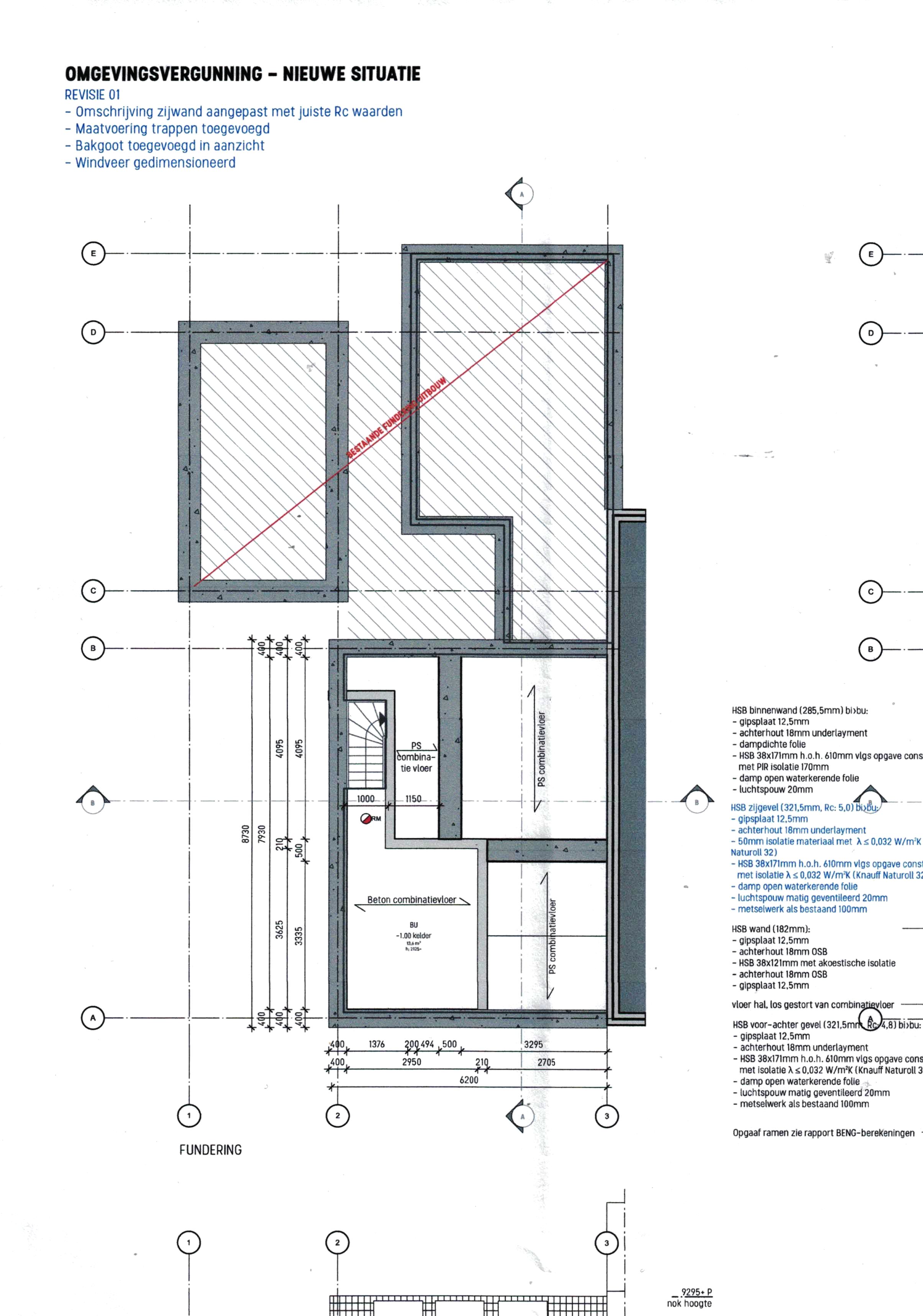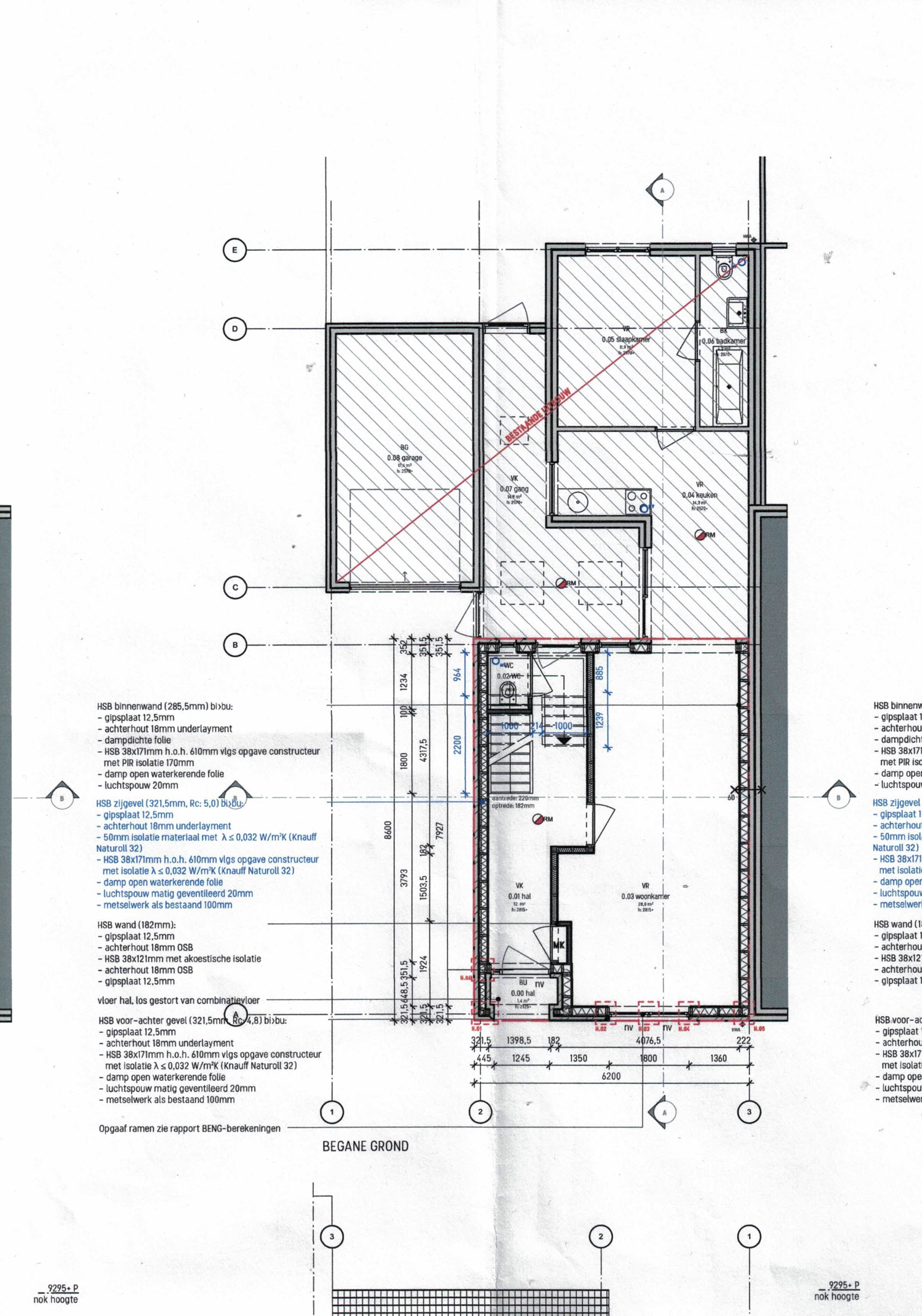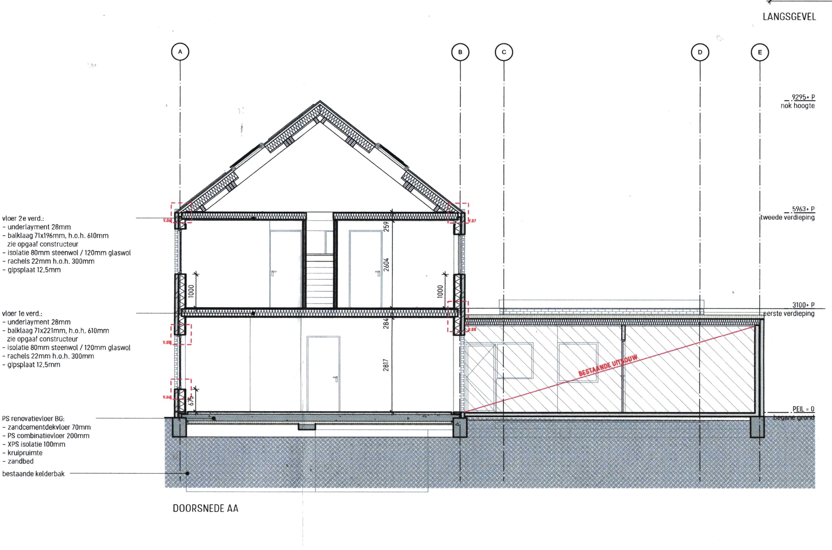 De bestaande achteruitbouw (1952) wordt 'binnenmuur vrij' gemaakt om zelf een grote leefkeuken met eigentijdse keukeninstallatie te kunnen realiseren en krijgt een nieuwe betonnen begane grond vloer met isolatie en vloerverwarming (keuken wordt niet door aannemer geleverd).