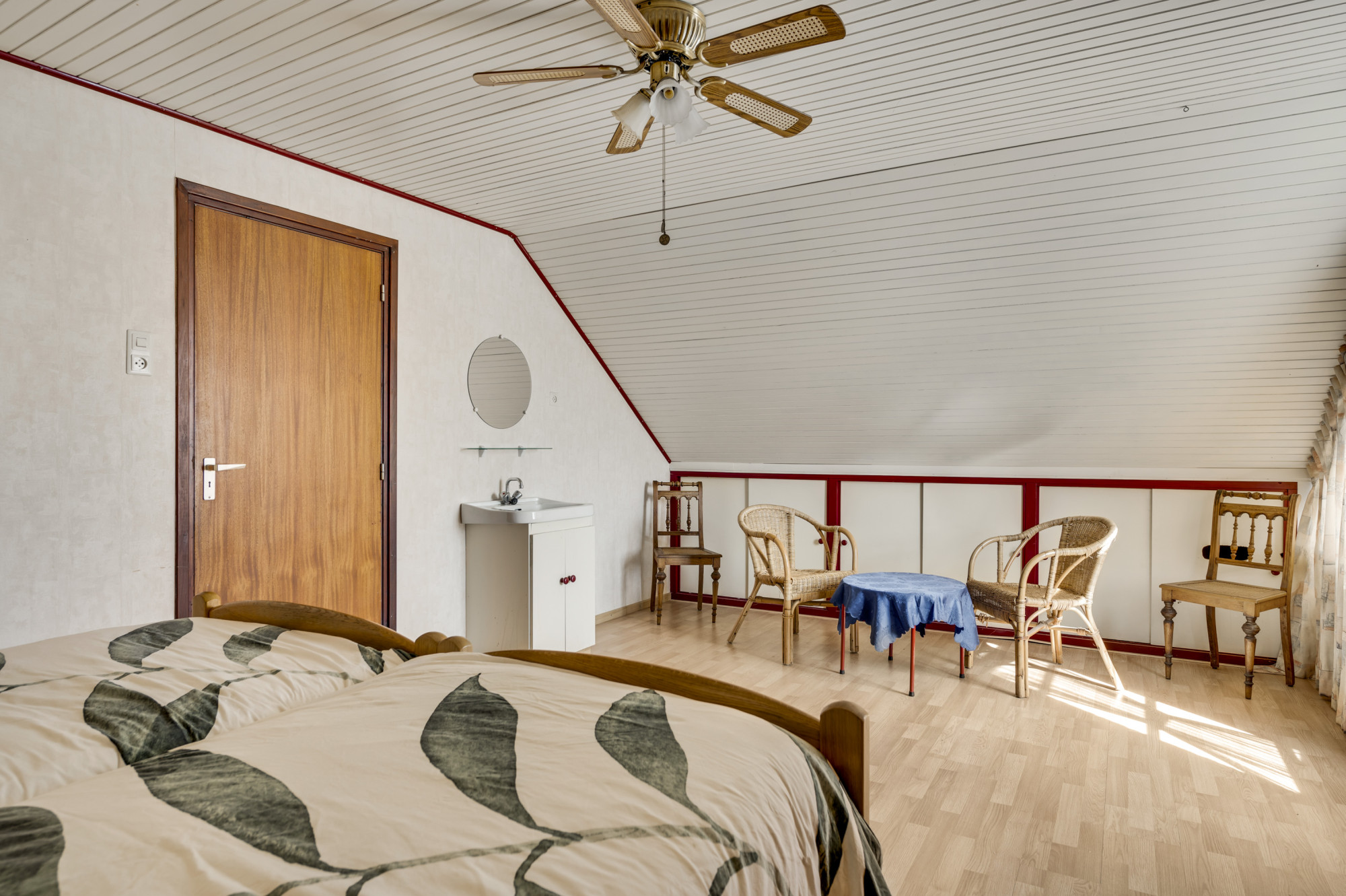 Boven de inpandige berging/garage is een praktische zolder/vliering middels een mangat te bereiken.