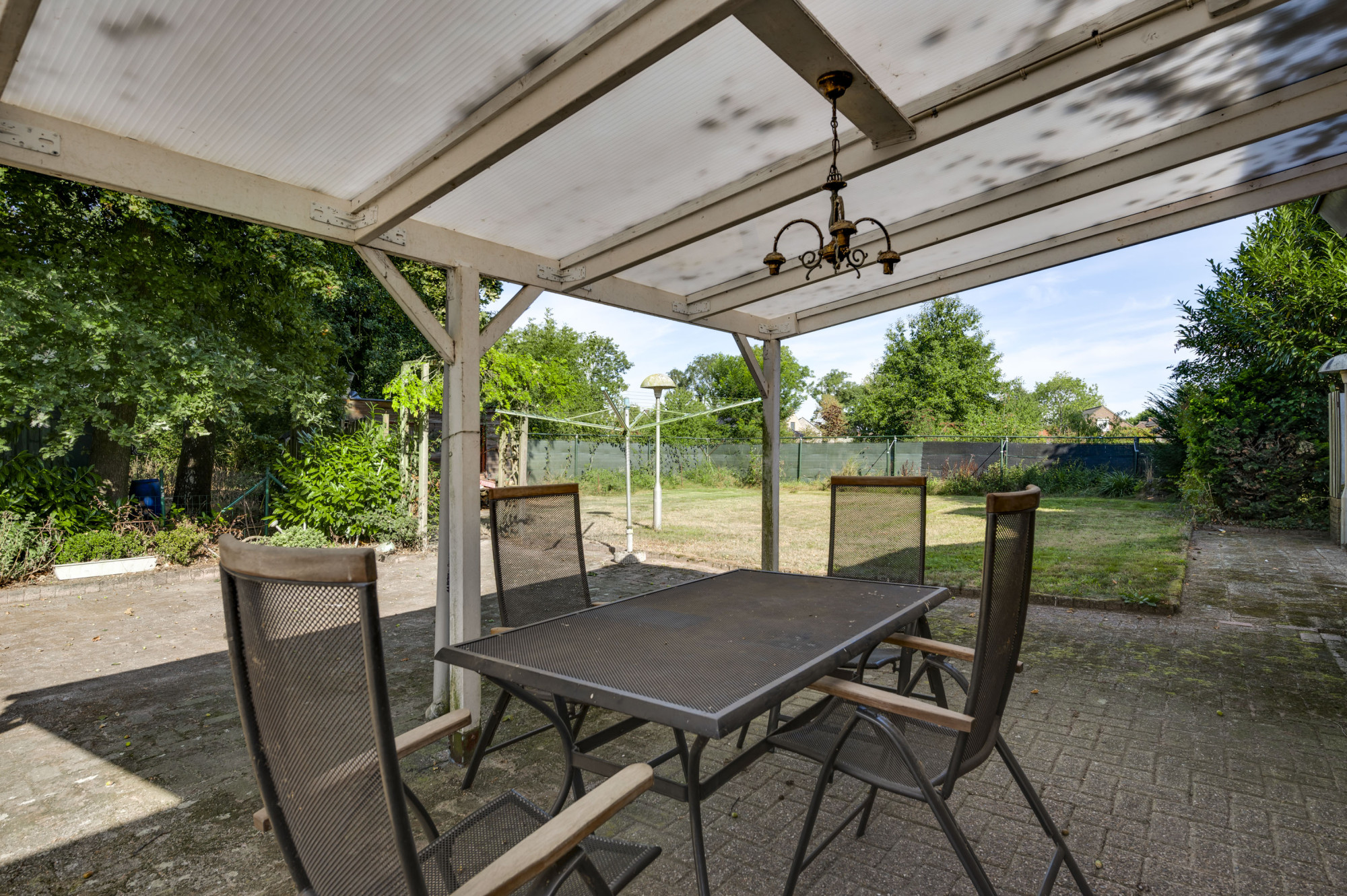 Rondom de woning is volop ruimte om te leven en te ontspannen. Aan de voorzijde bevindt zich een zeer royale oprit met voldoende parkeergelegenheid voor meerdere voertuigen. De diepe achtertuin is een waar buitenparadijs: diverse terrassen, een groot gazon, eigen bosje, twee eenvoudige tuinhuisjes, een overkapping, volwassen beplanting en een grondwaterput. Een droomplek voor tuinliefhebbers, hobbyisten, gezinnen met kinderen en iedereen die houdt van het buitenleven!