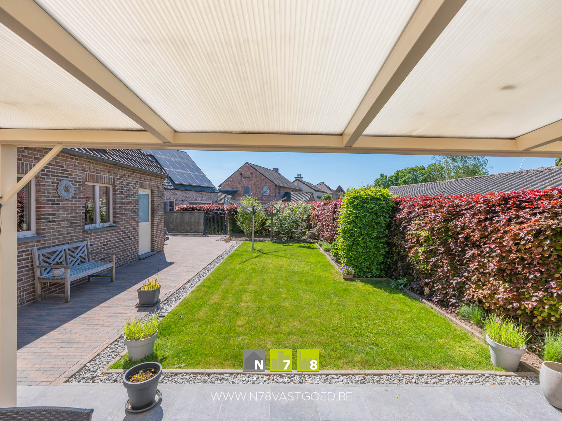 - Overdekt betegeld terras.