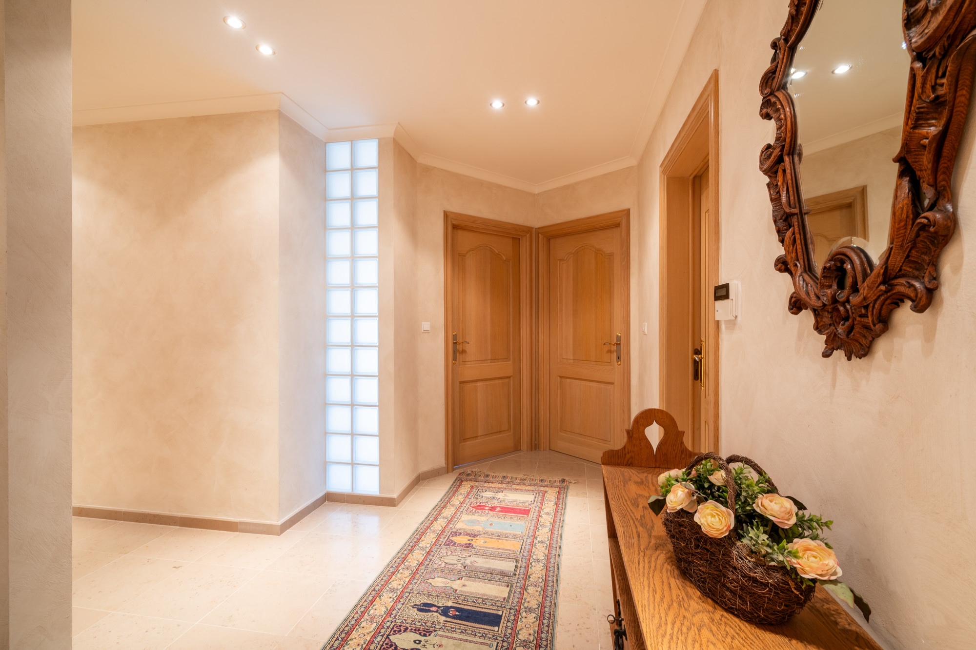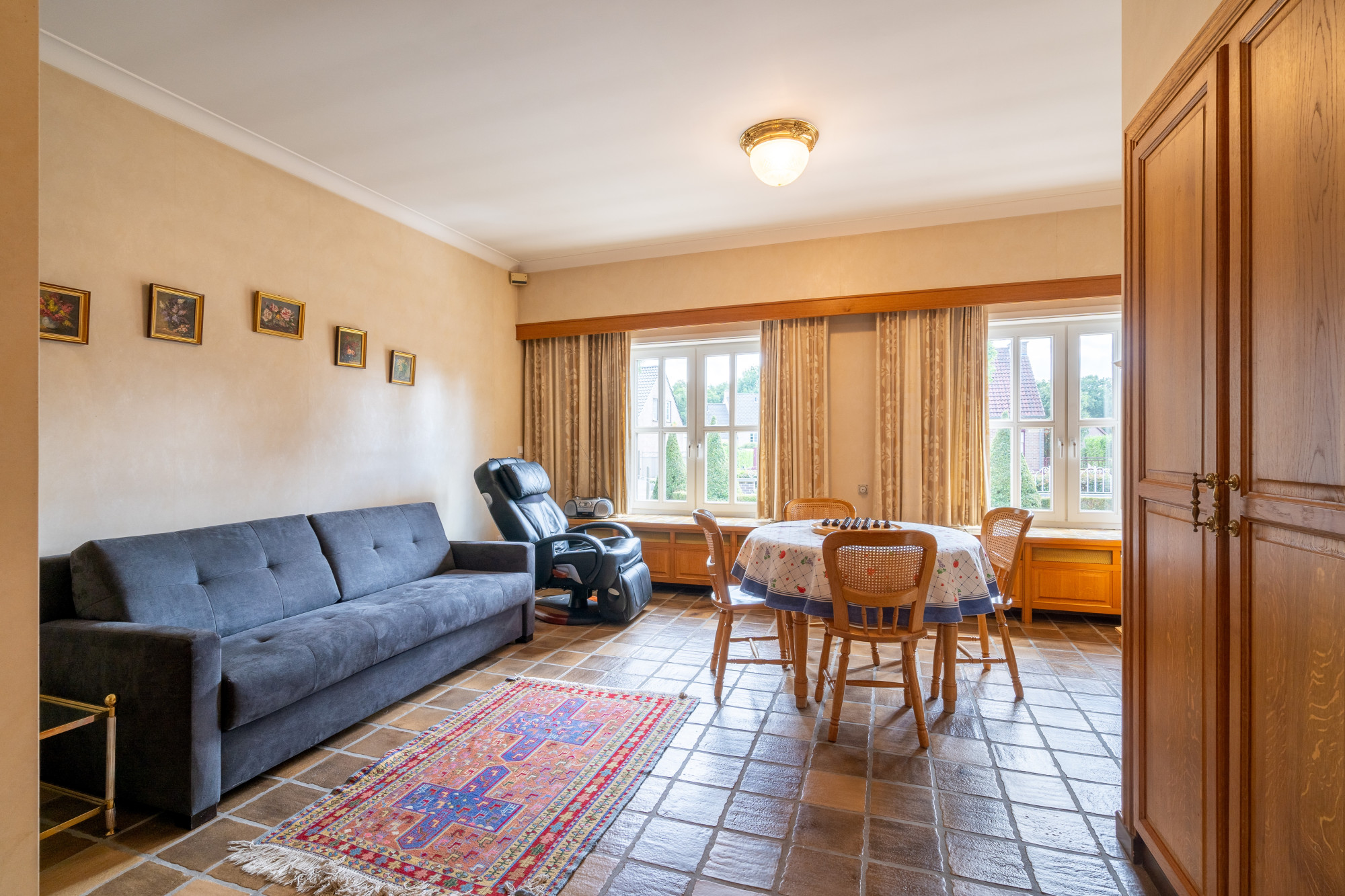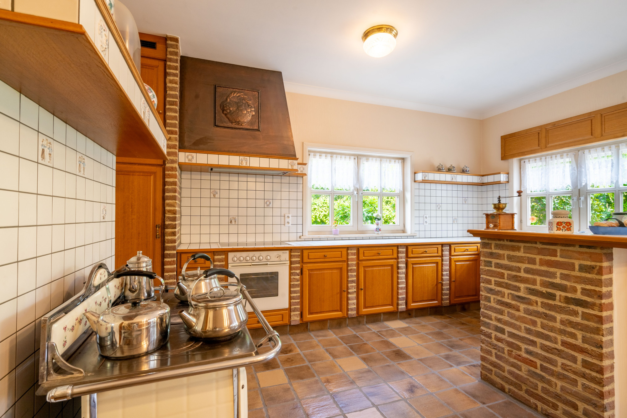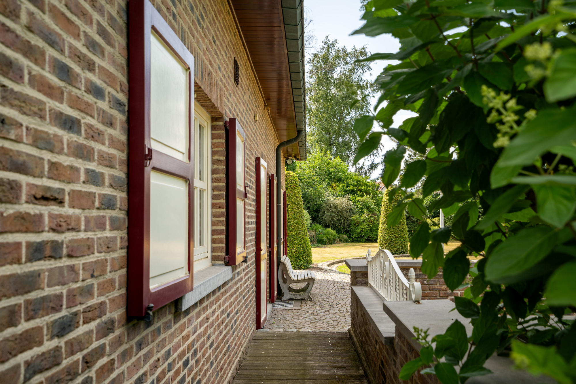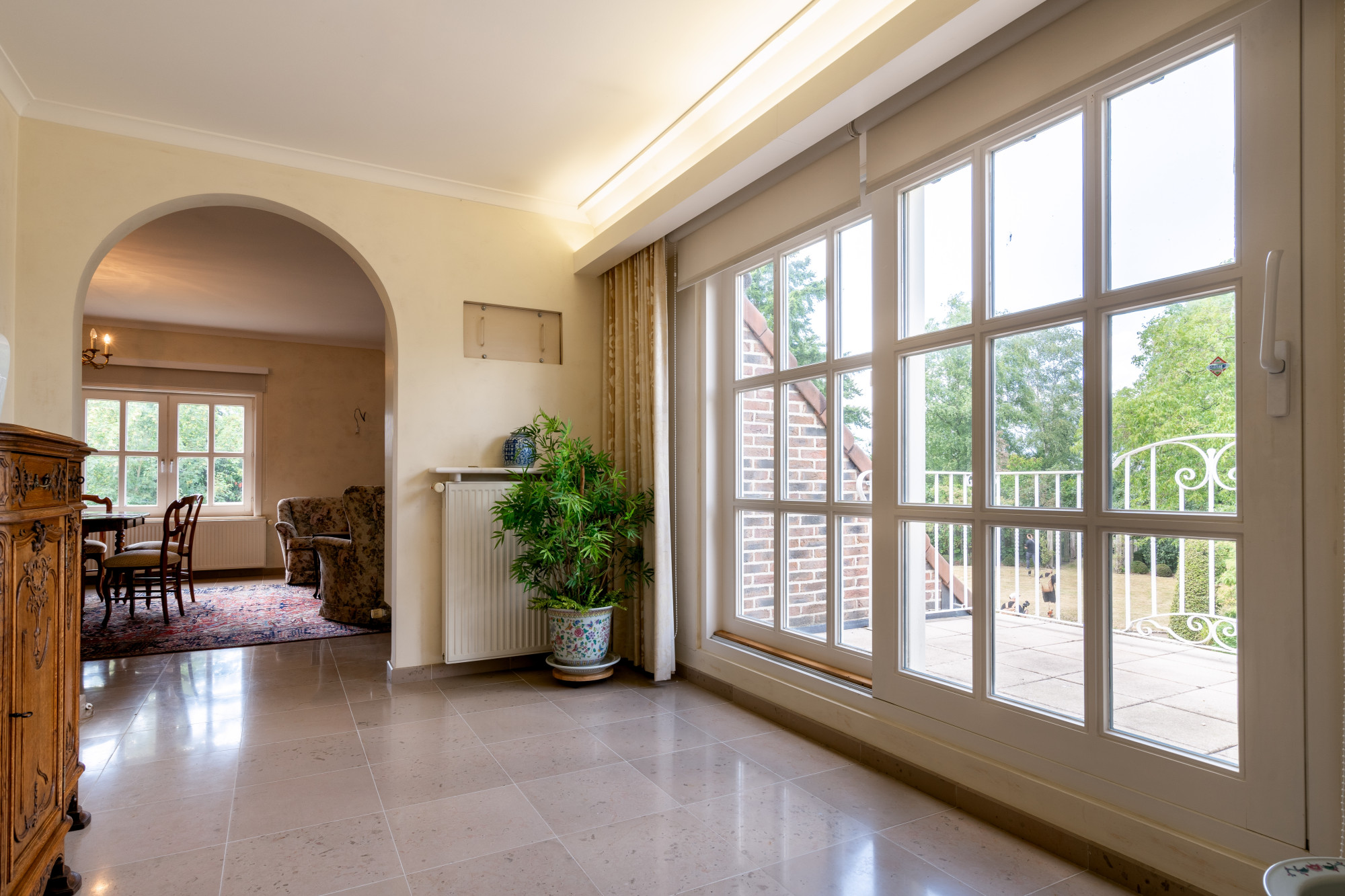 Deze karaktervolle villa van 1990 is gelegen in een zeer rustige straat van het gehuchtje Waterloos te Neeroeteren, deelgemeente van Maaseik. De villa kent een bruto bewoonbare oppervlakte van 694m2 (excl. kelder) en is gelegen op een perceel van 1ha 00a 18ca. Een echte troef is de riante parktuin met diverse terrassen, fruitbomen en sierstruiken. De grote serre met druivenranken geeft de tuin een extra romantische toets. Dankzij de ingerichte studio op het gelijkvloers en een ingericht appartement op de verdieping is deze villa eveneens zeer geschikt voor het uitoefenen van een vrij beroep of voor het uitbaten van een B&B.