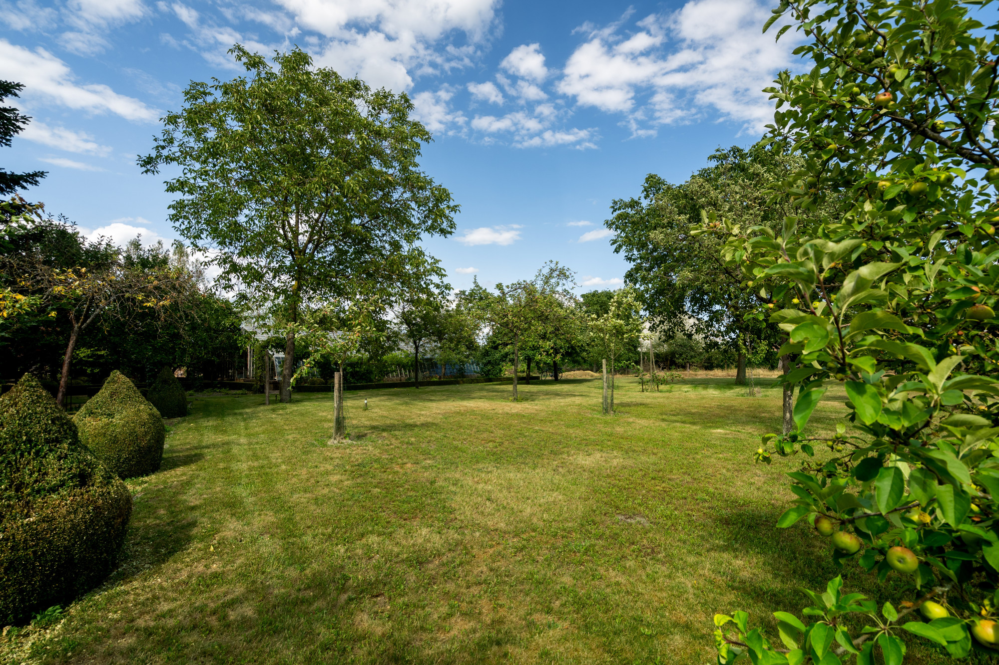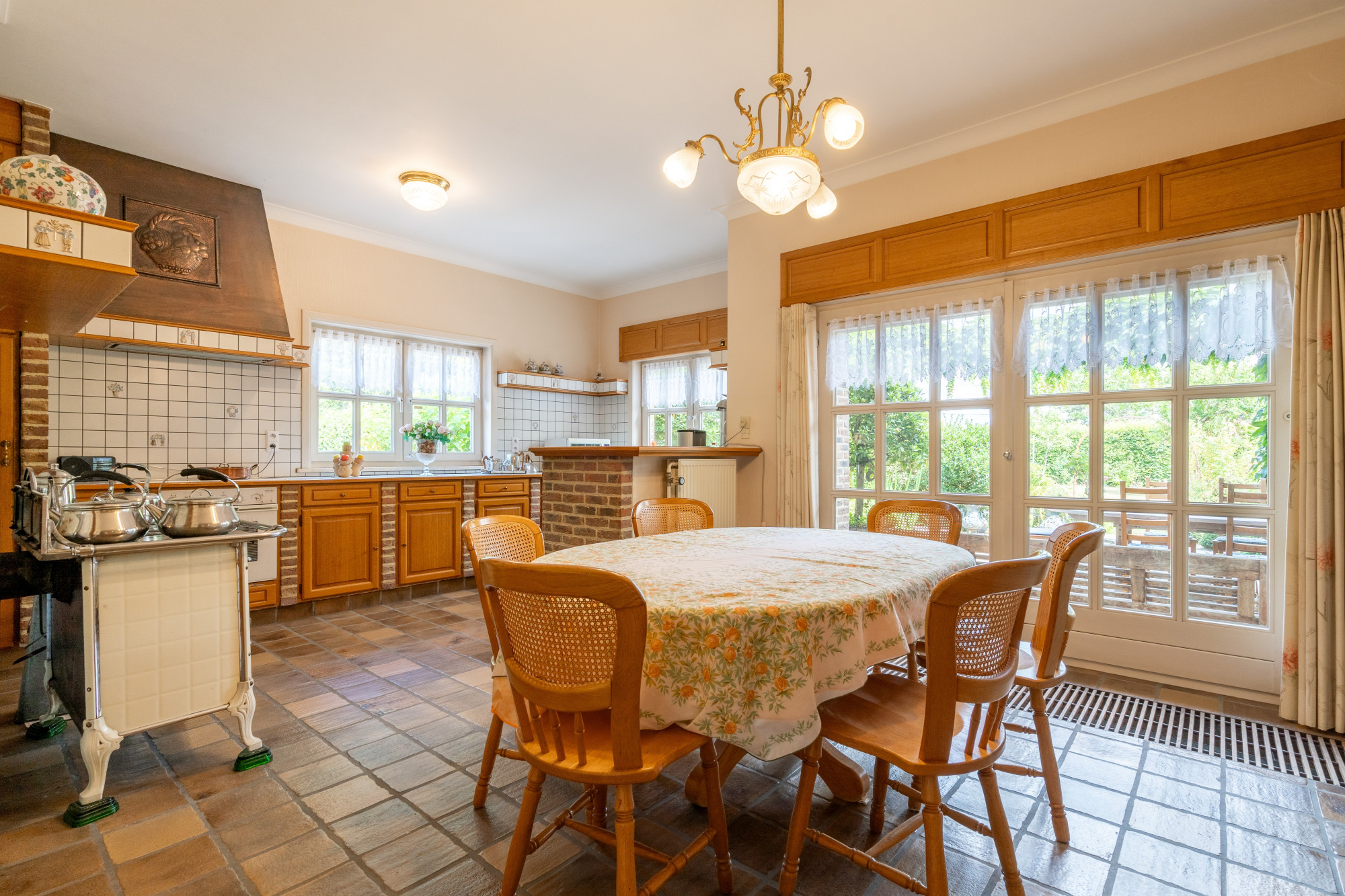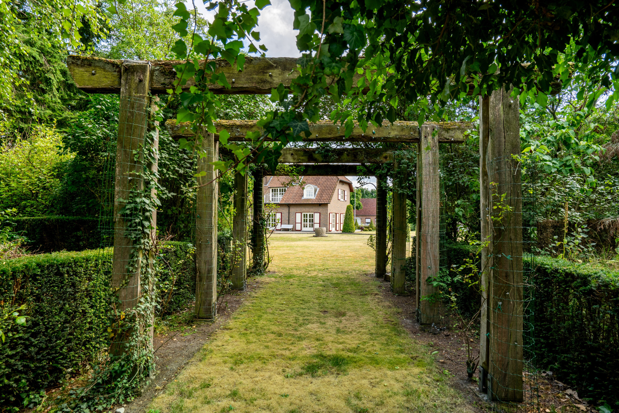 De riante parktuin is volledig aangelegd en omheind en voorzien van een bestrating in kasseien, diverse terrassen en een serre met druivenranken.