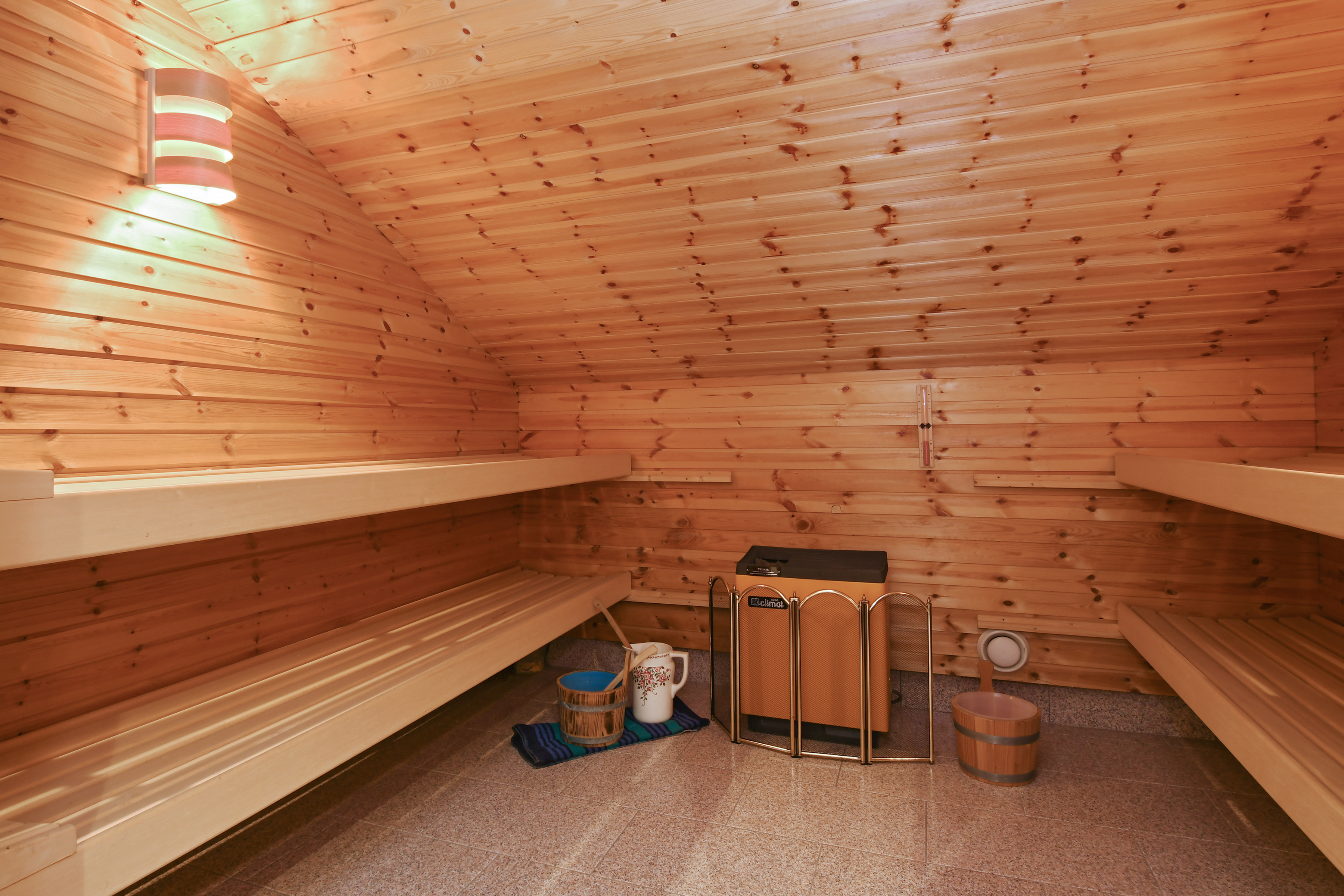 -- Verdieping: overloop met sauna, twee slaapkamers, zolderruimtes en technische ruimte;