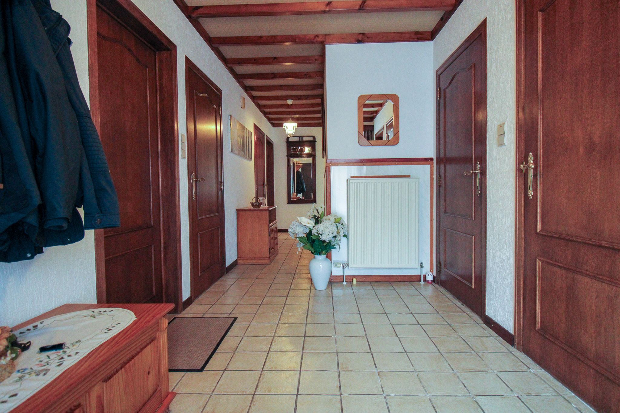 Gelijkvloers is er een ruime inkomhal met gastentoilet die verder toegang geeft tot alle leefruimtes.