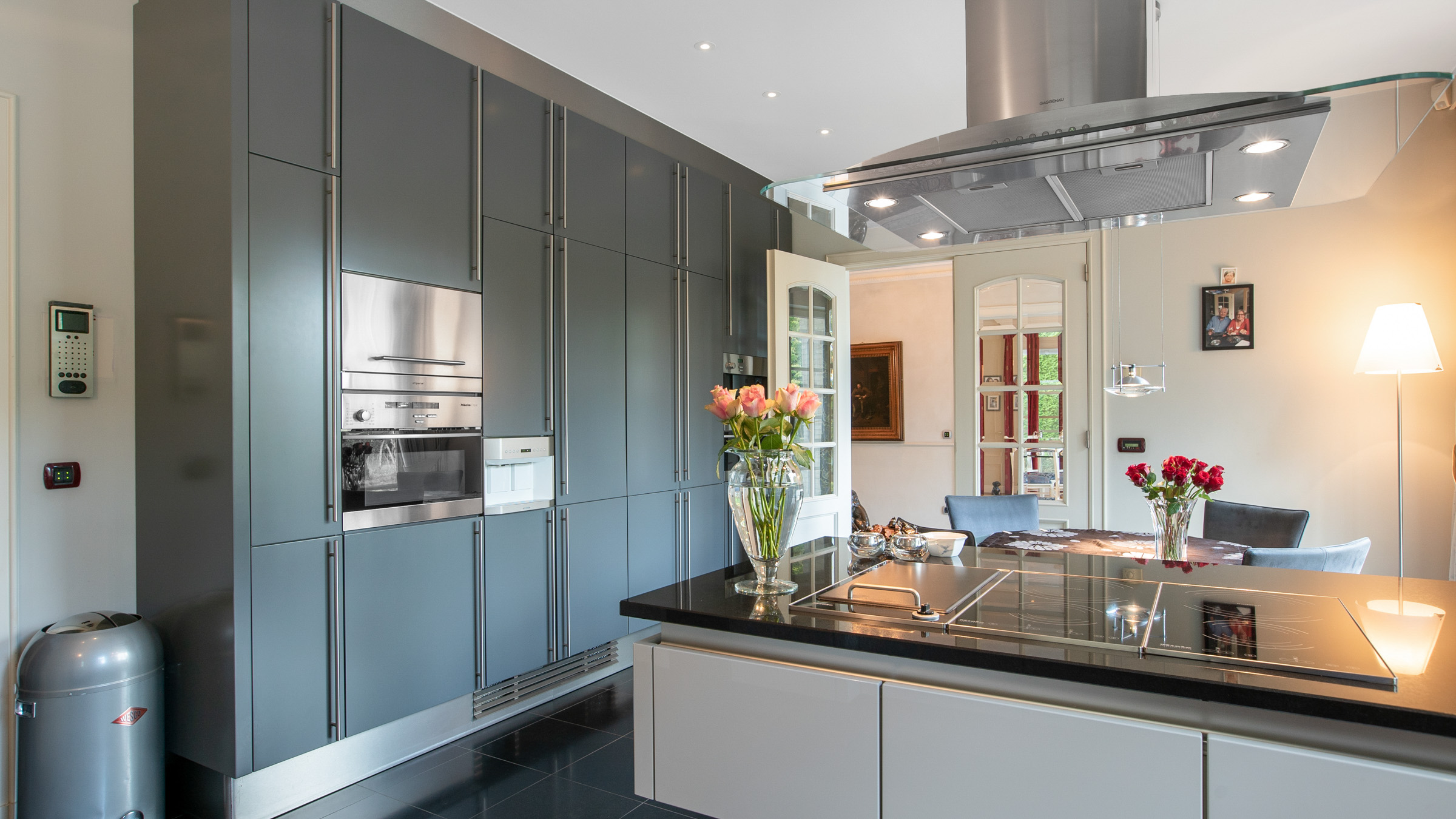 - Volledig uitgeruste keuken (Gaggenau): kookplaat, ingebouwde friteuse, combi-oven, stoomoven, koelkast, diepvries, bordenverwarmer, koffiezetapparaat , vaatwasser en meer