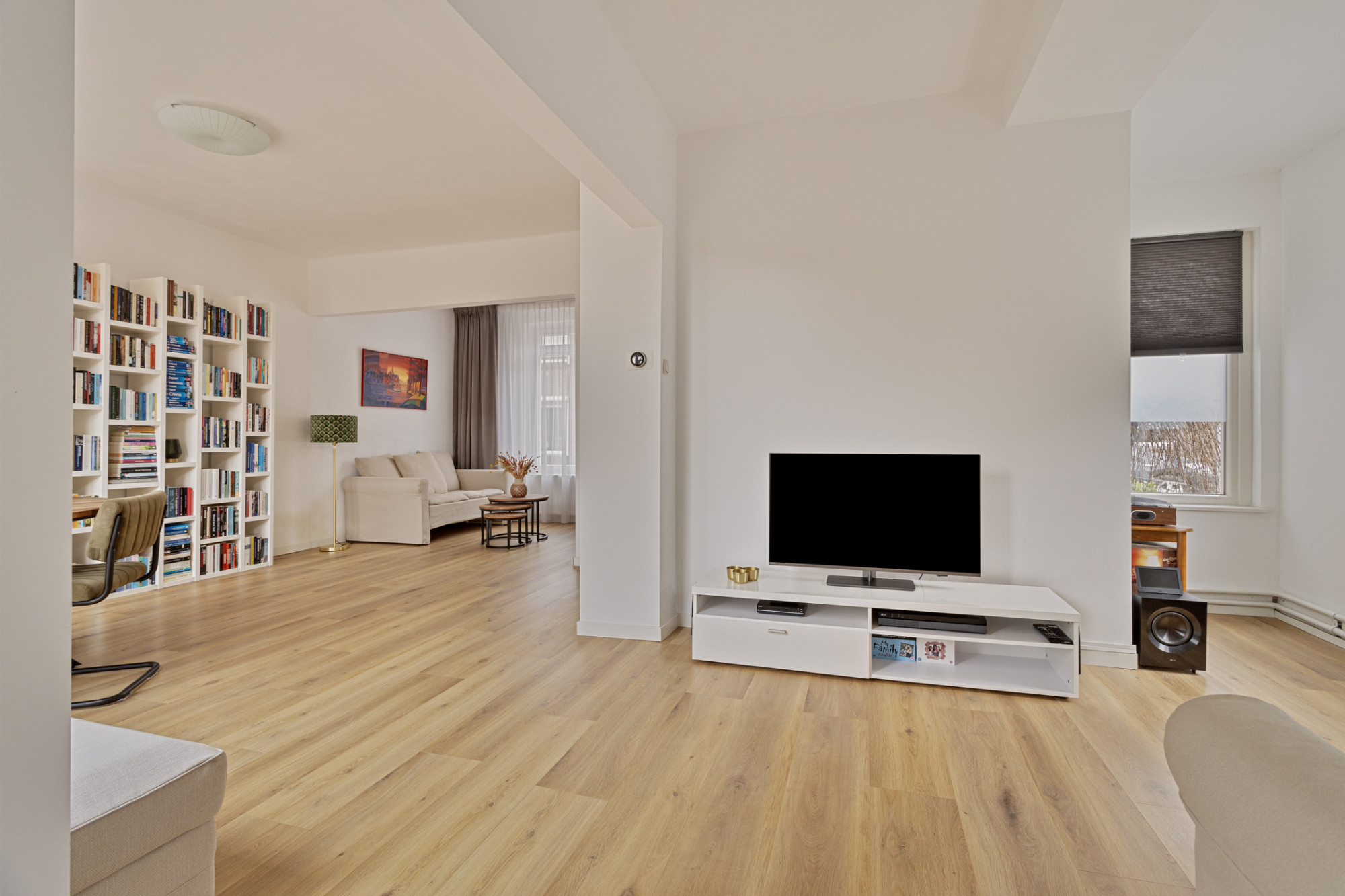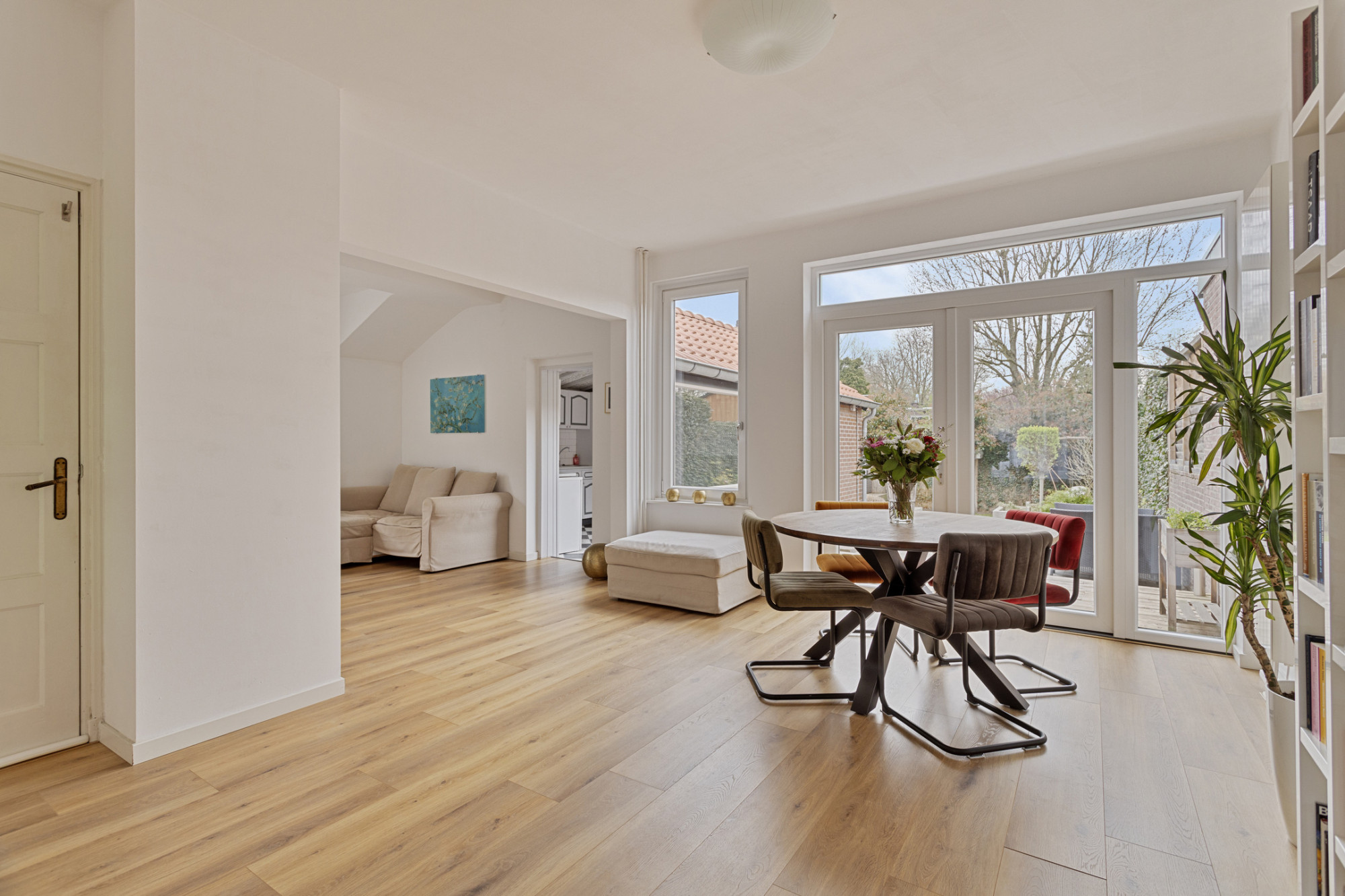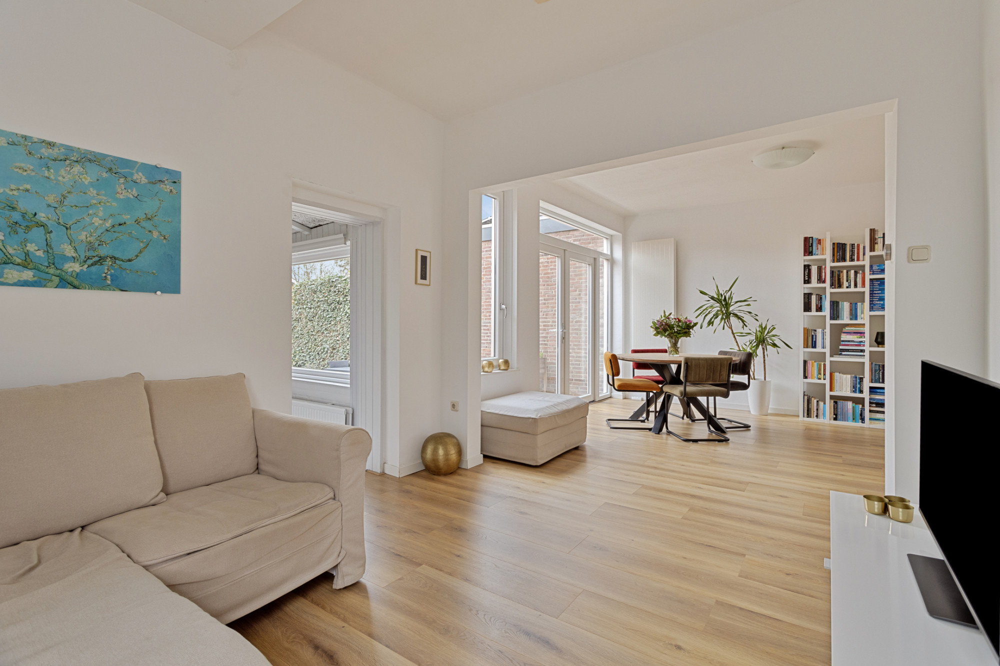 - Ruime doorzonwoonkamer van ca. 40 m² met openslaande deuren naar de achtertuin en met toegang