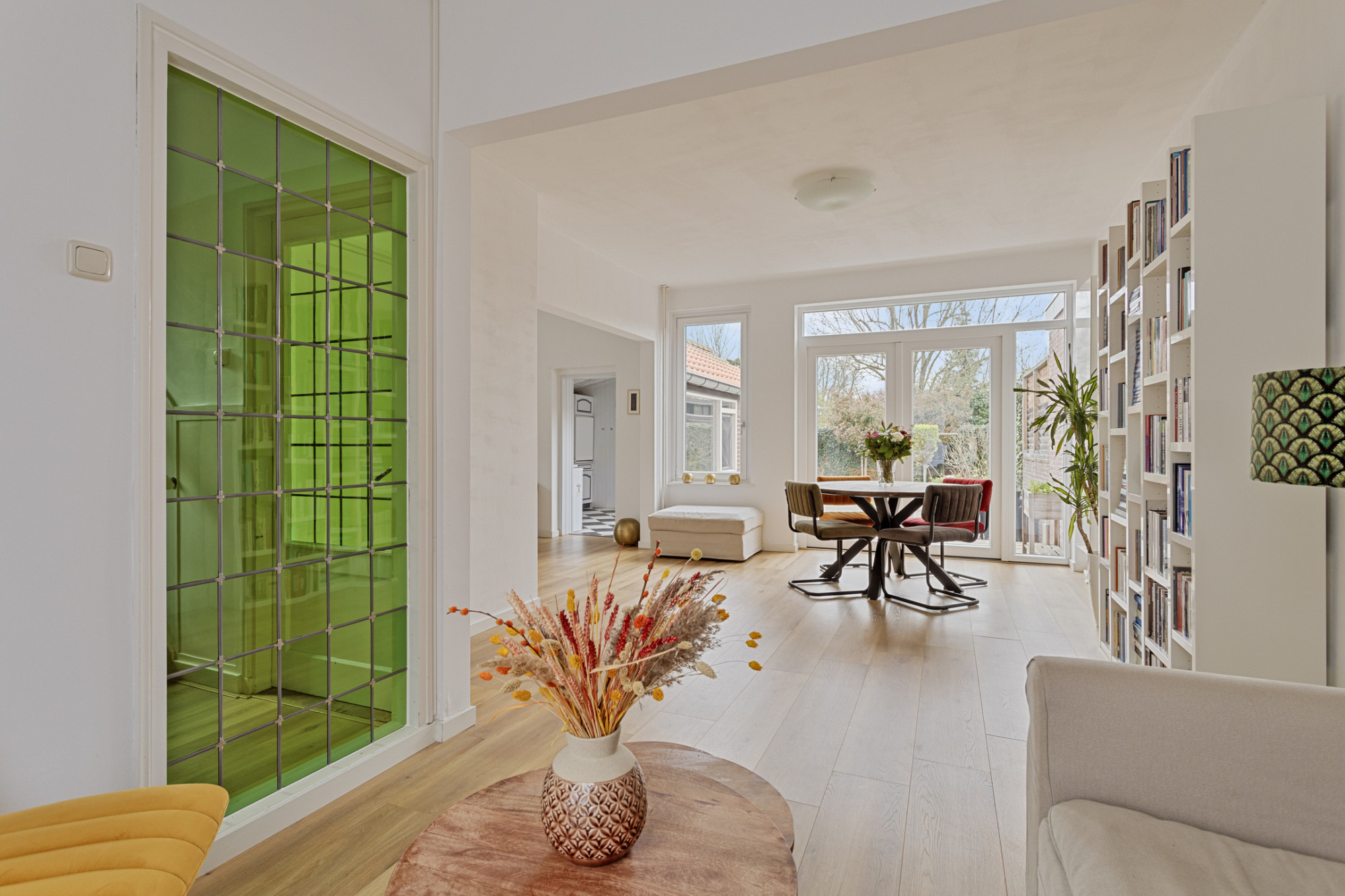 Karakteristieke en goed onderhouden twee-onder-één-kap woning met ruime oprit, veel lichtinval, garage en diepe tuin op het zuiden.