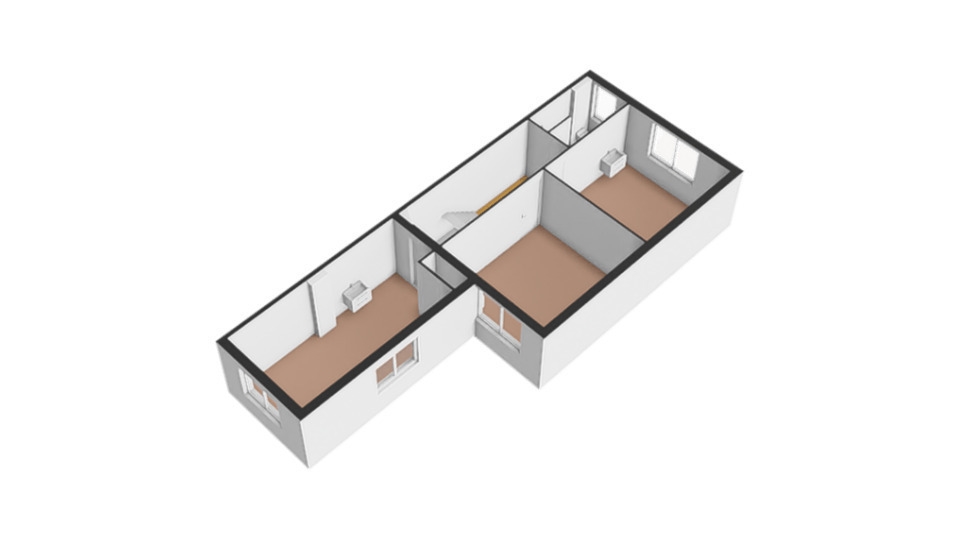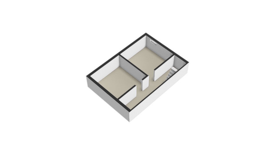 Er is een vaste trap naar de tweede verdieping waar nog een slaapkamer via een hal bereikt wordt.