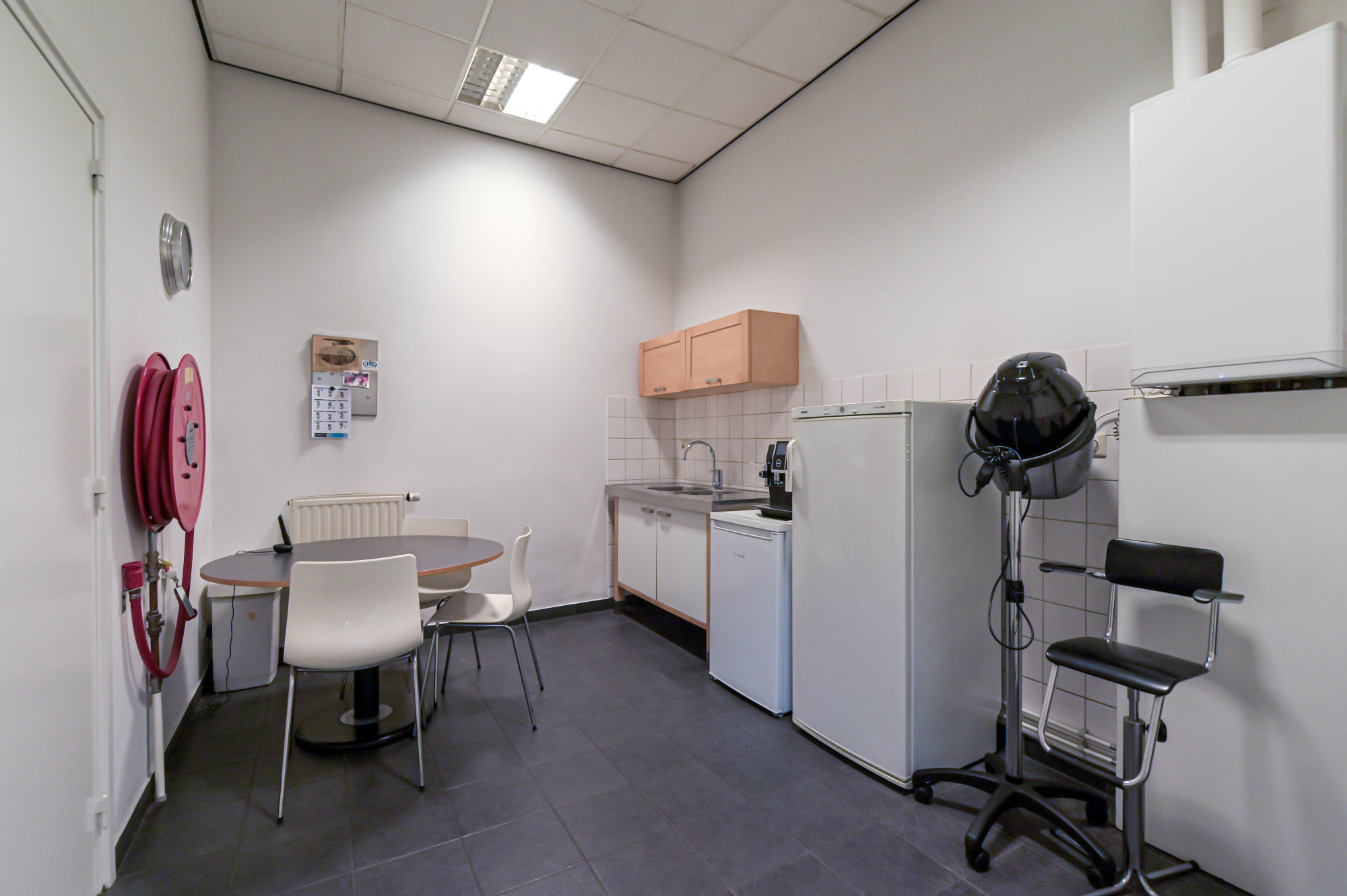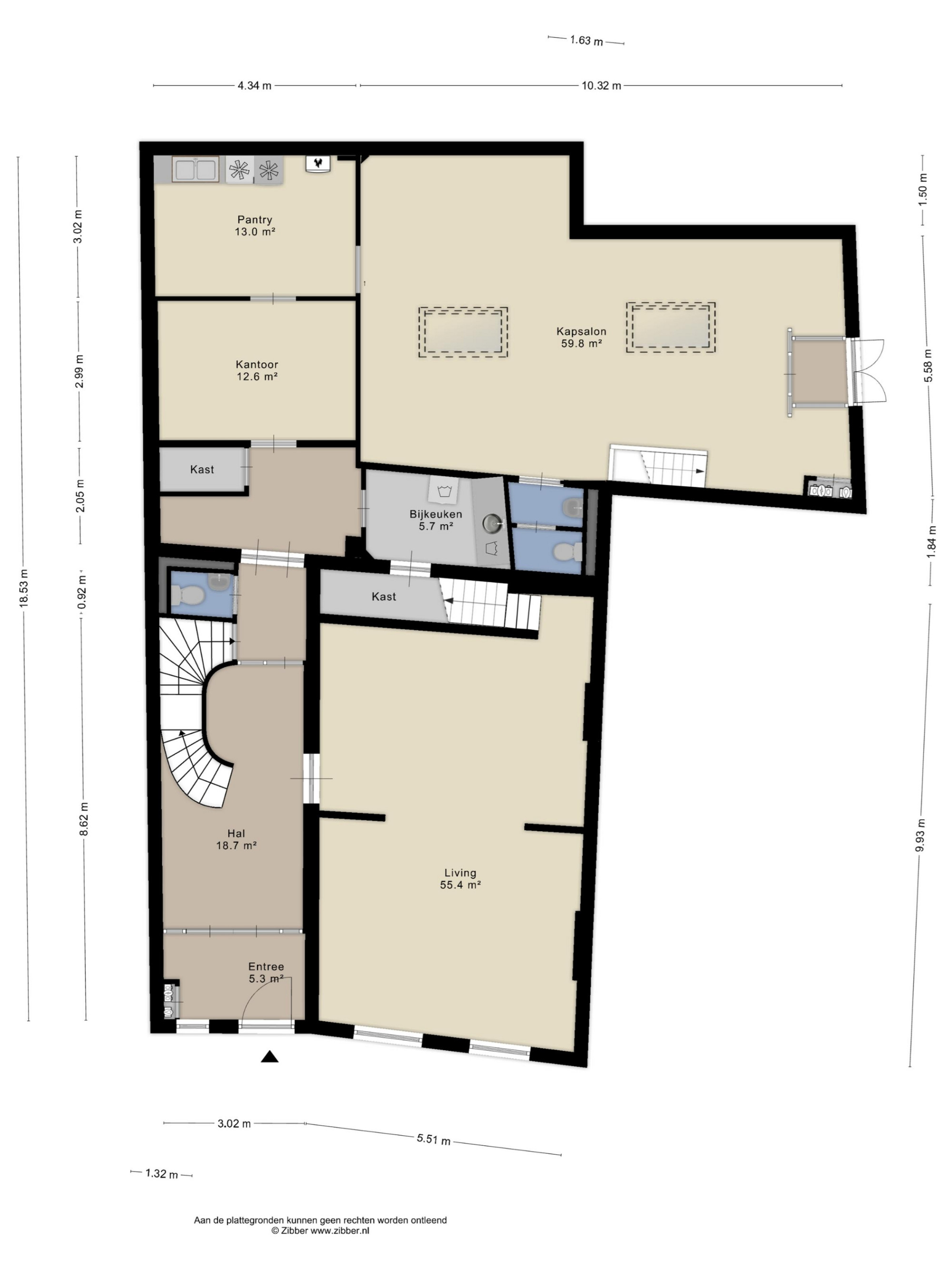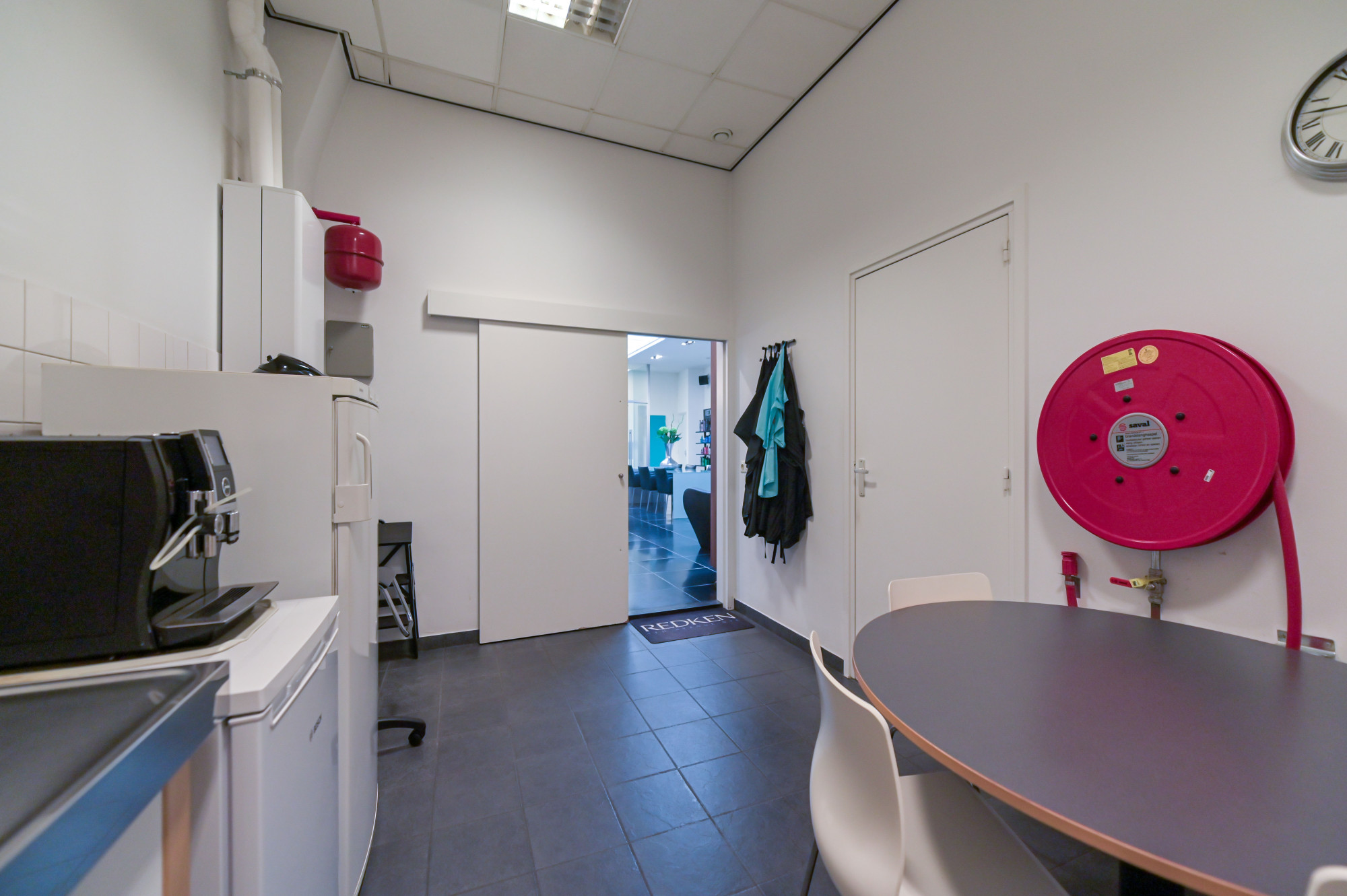 De kapsalon aan de voorzijde beschikt over een eigen entree, hardstenen vloer, toiletgroep en aparte meterkast.