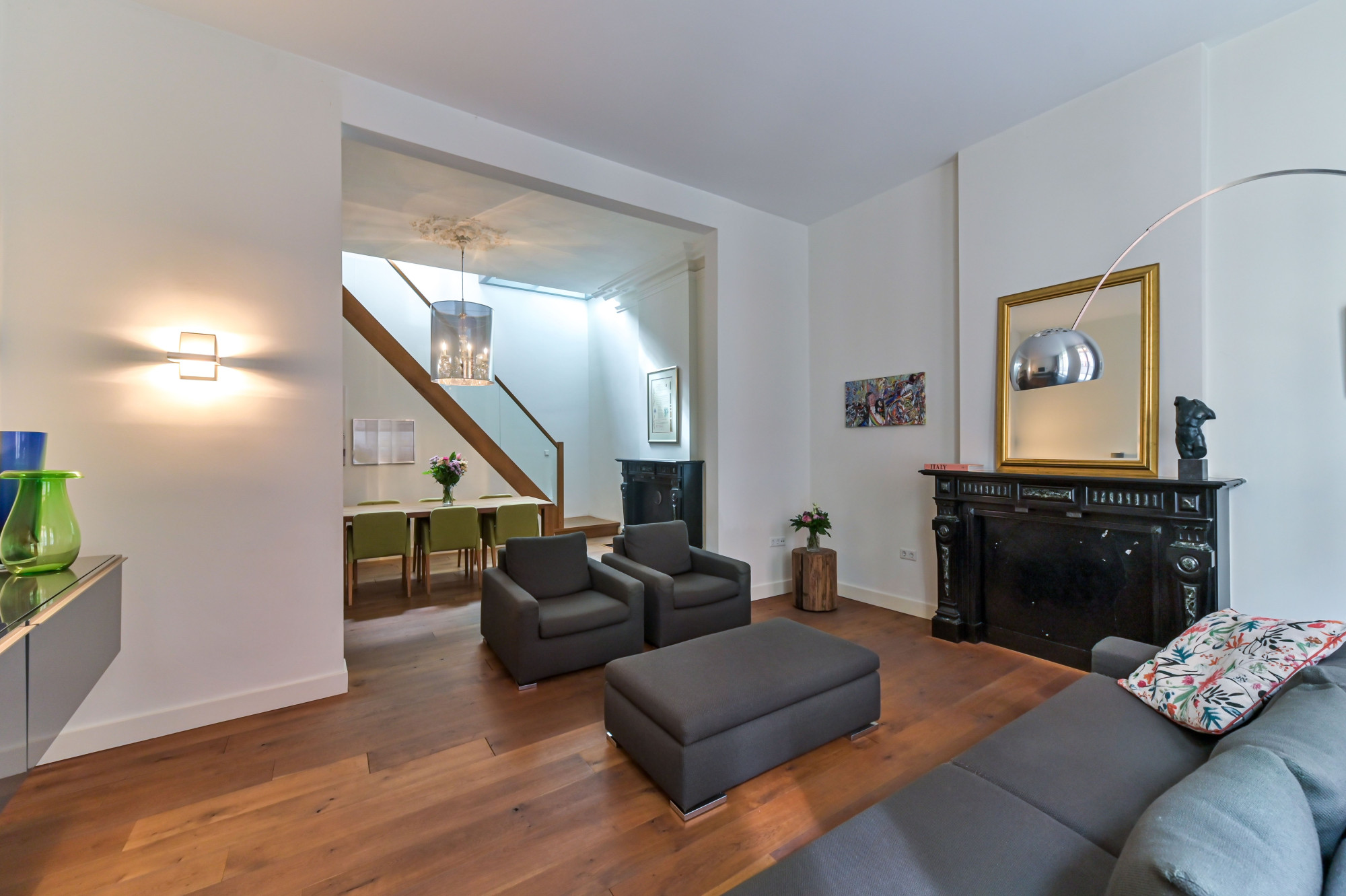 Bij binnenkomst ervaar je direct de karaktervolle uitstraling. Authentieke details zoals de marmeren haardpartijen en de gewelfde kelders geven het pand een charmante en sfeervolle ambiance. Op de begane grond bevindt zich naast de ruime woonkamer een zelfstandige kapsalon met eigen entree - ideaal voor een praktijk, kantoor of atelier aan huis.