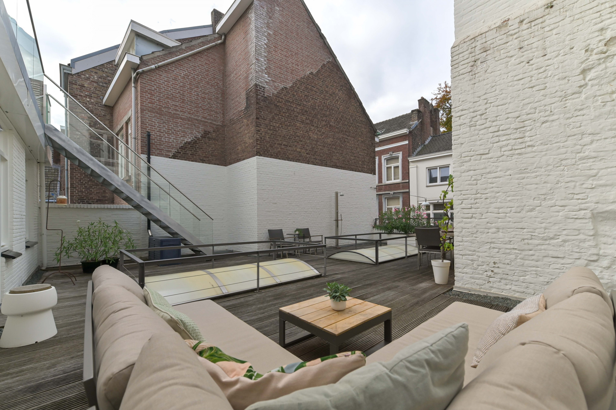 De dakterrassen zijn een groot pluspunt. Hier geniet je in alle rust van het uitzicht over de stad en de levendige sfeer van Maastricht, terwijl je beschikt over je eigen buitenruimte.