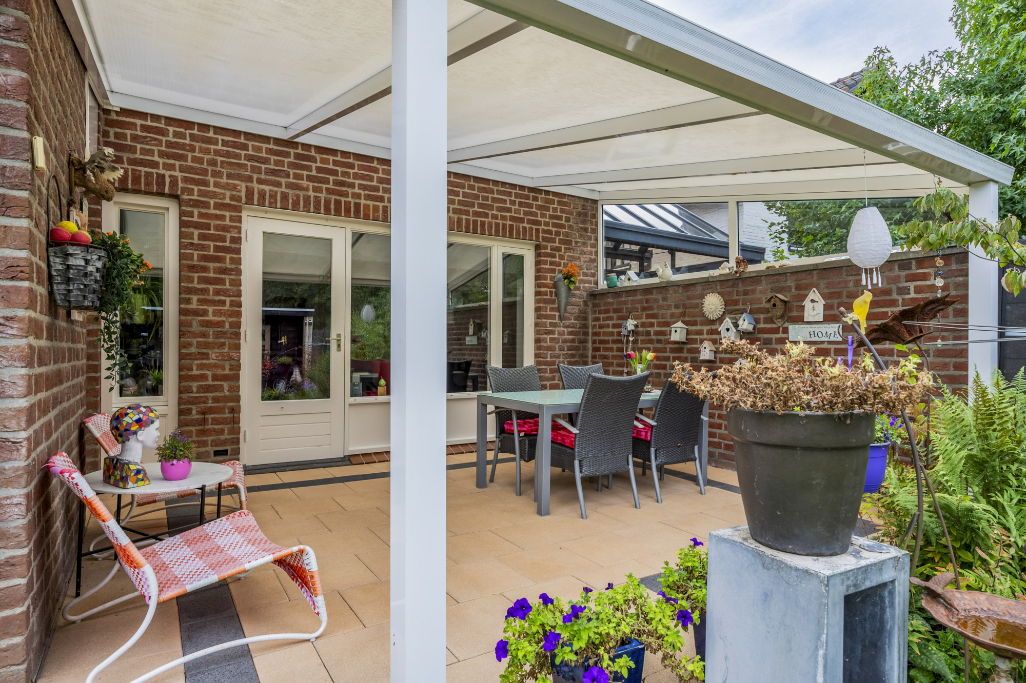In de achtertuin bevindt zich nog een fijne houten berging met overkapping.