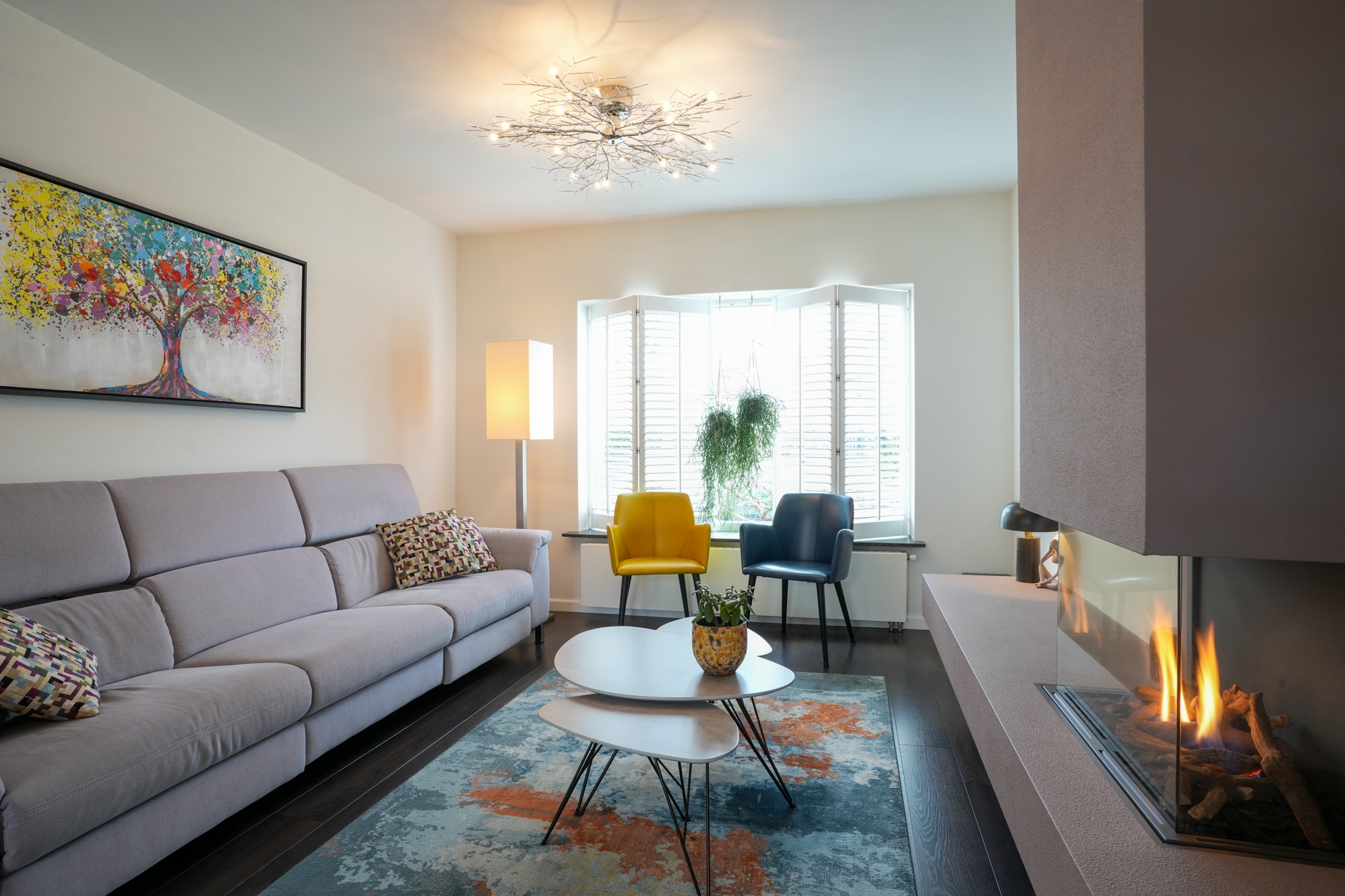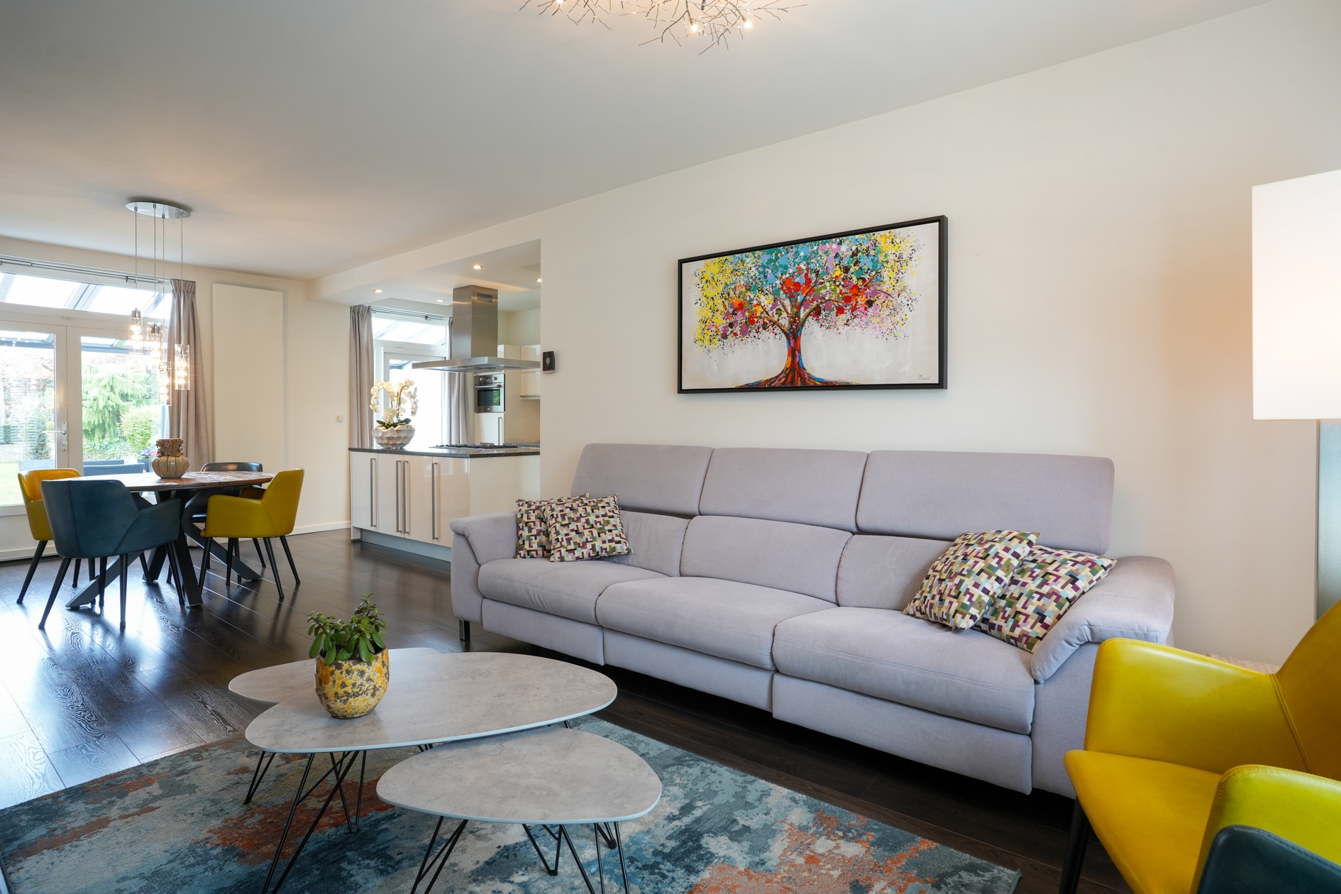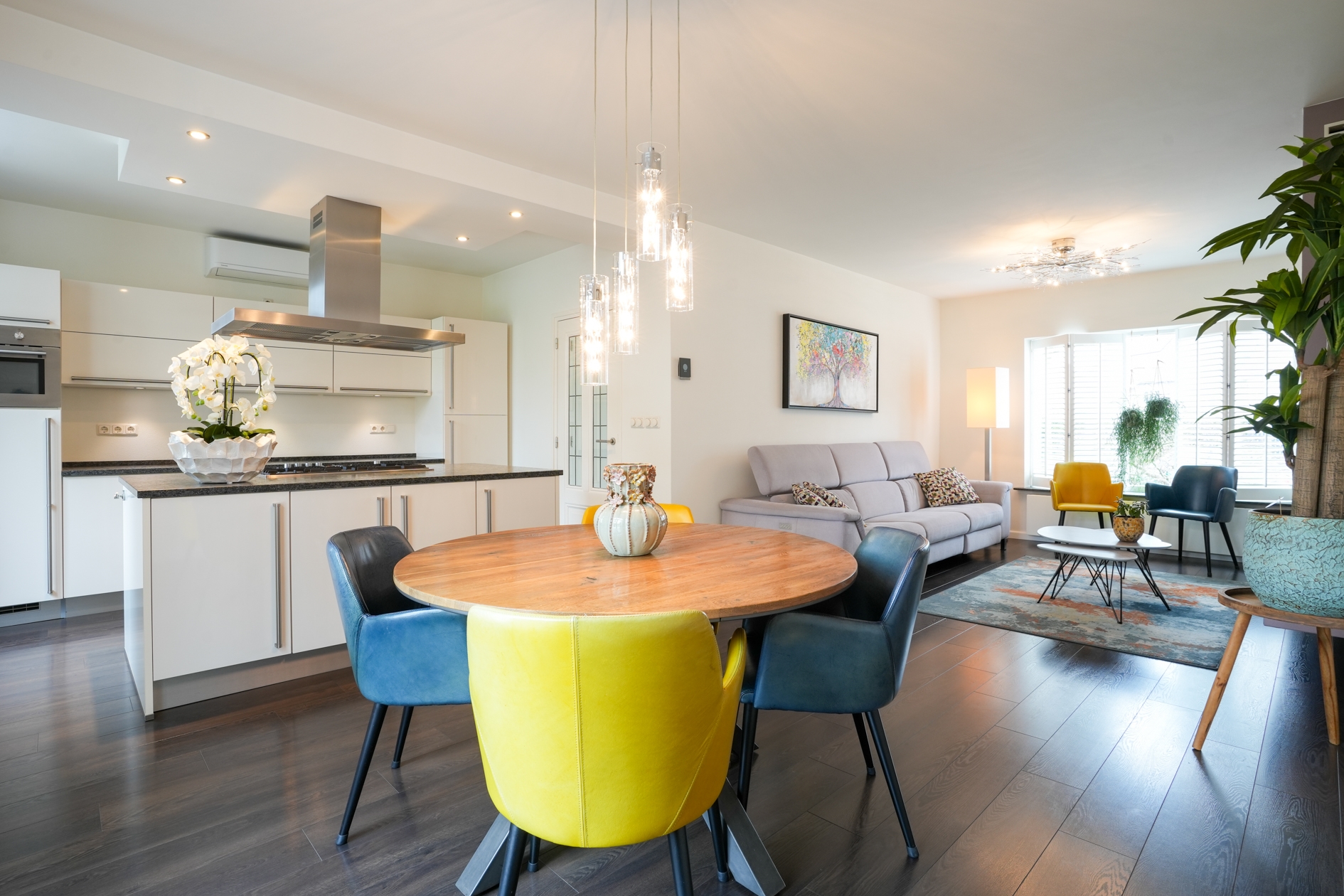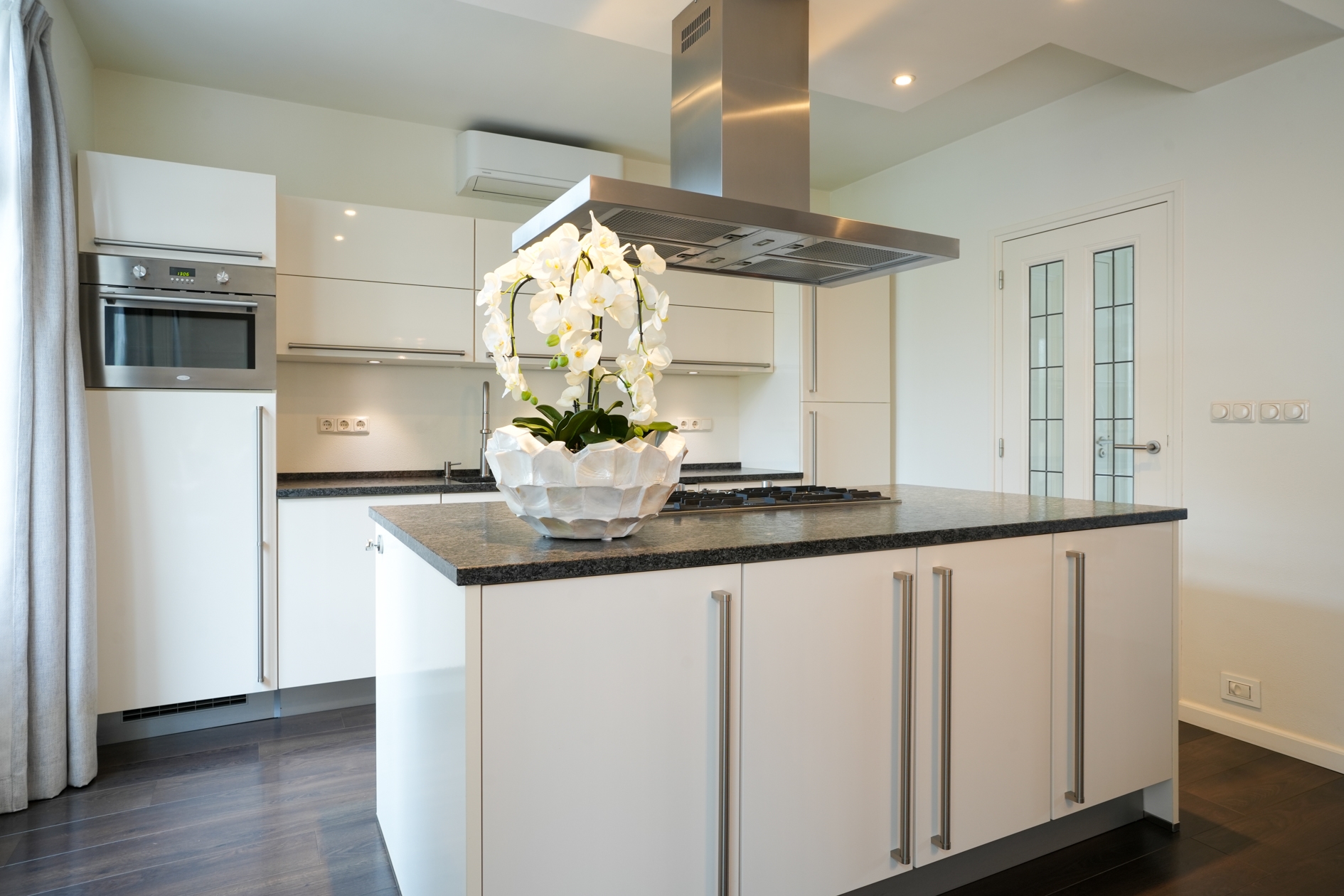 De lichte en ruimtelijke woonkamer is voorzien van een sfeervol plateau met Dru haard, houten shutters aan de voorzijde en een hoogwaardige laminaatvloer. De open keuken met een natuurstenen aanrechtblad is een droom voor kookliefhebbers en uitgerust met Boretti inbouwapparatuur, een ruim kookeiland met 5-pits gasfornuis en afzuigkap, een combi-heteluchtoven, vaatwasser, koelkast en een grote vriezer. Dankzij de efficiënte boiler heeft u direct warm water.
