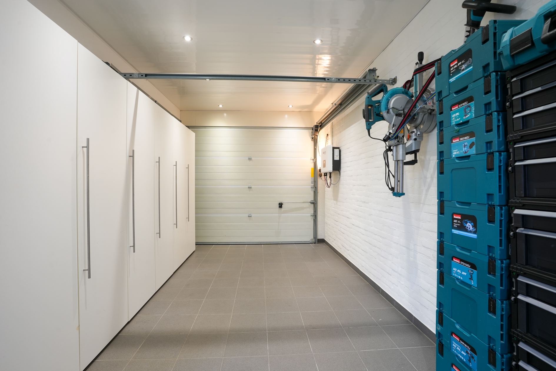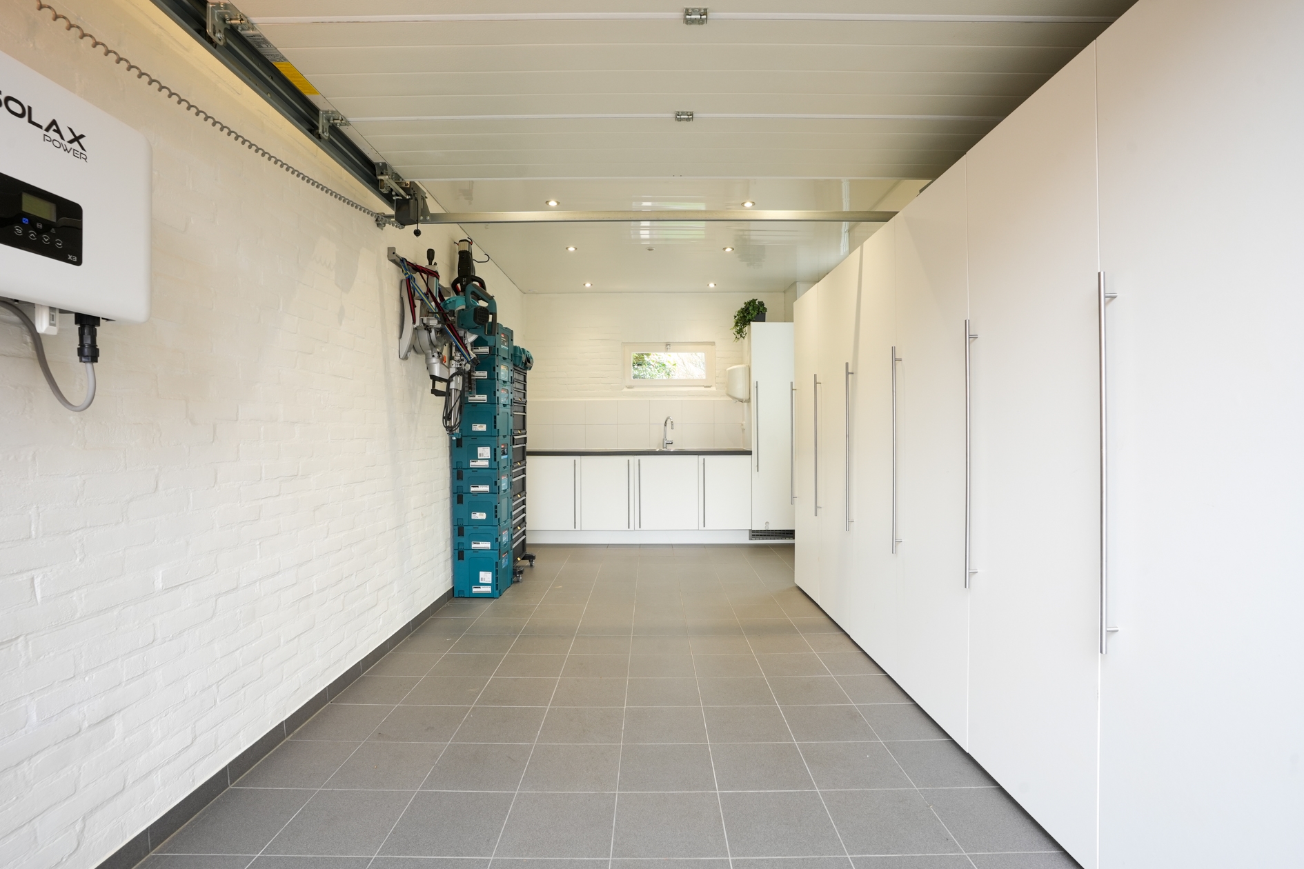 Daarnaast beschikt de woning over een praktische garage met elektrische sectionaalpoort, betegelde vloer, water- en elektriciteitsaansluiting en een royale kastenwand.