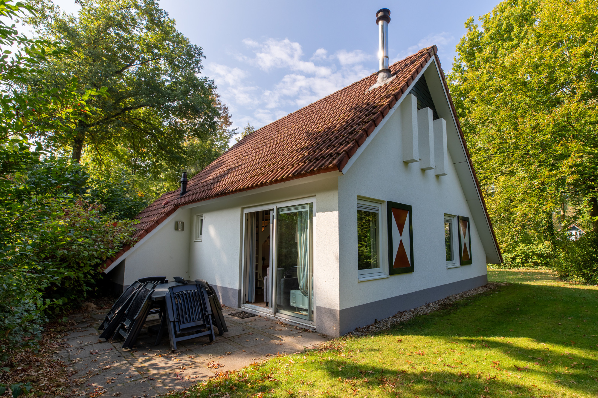 Deze 6 persoonsrecreatiewoning nr. 97 is gelegen op een prachtige locatie aan begin op het park in een mooie en rustige omgeving midden tussen de bomen op een grondstuk van liefst 621 m2.
