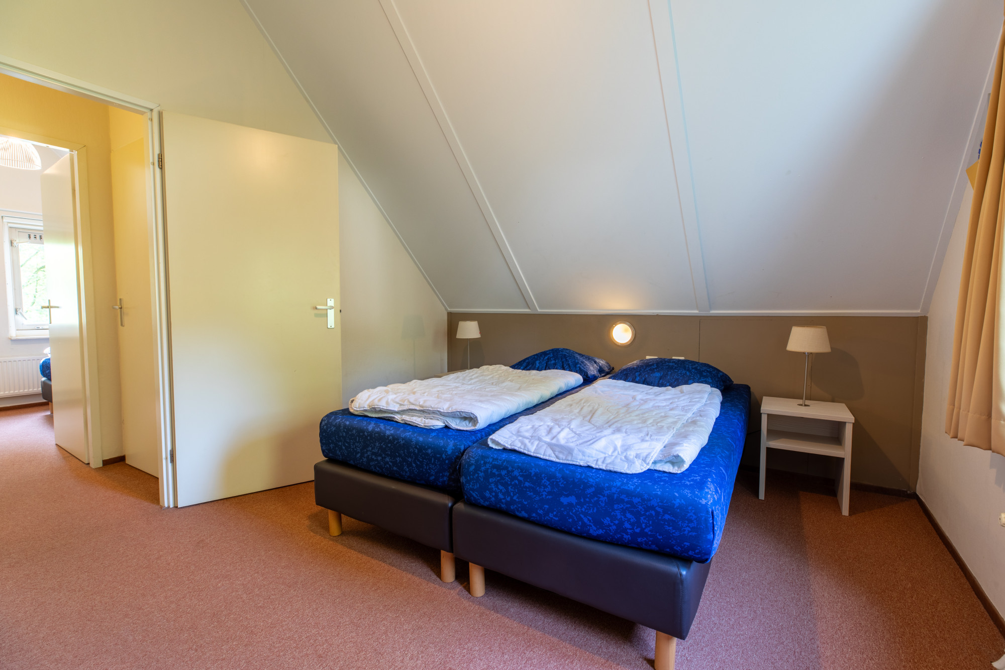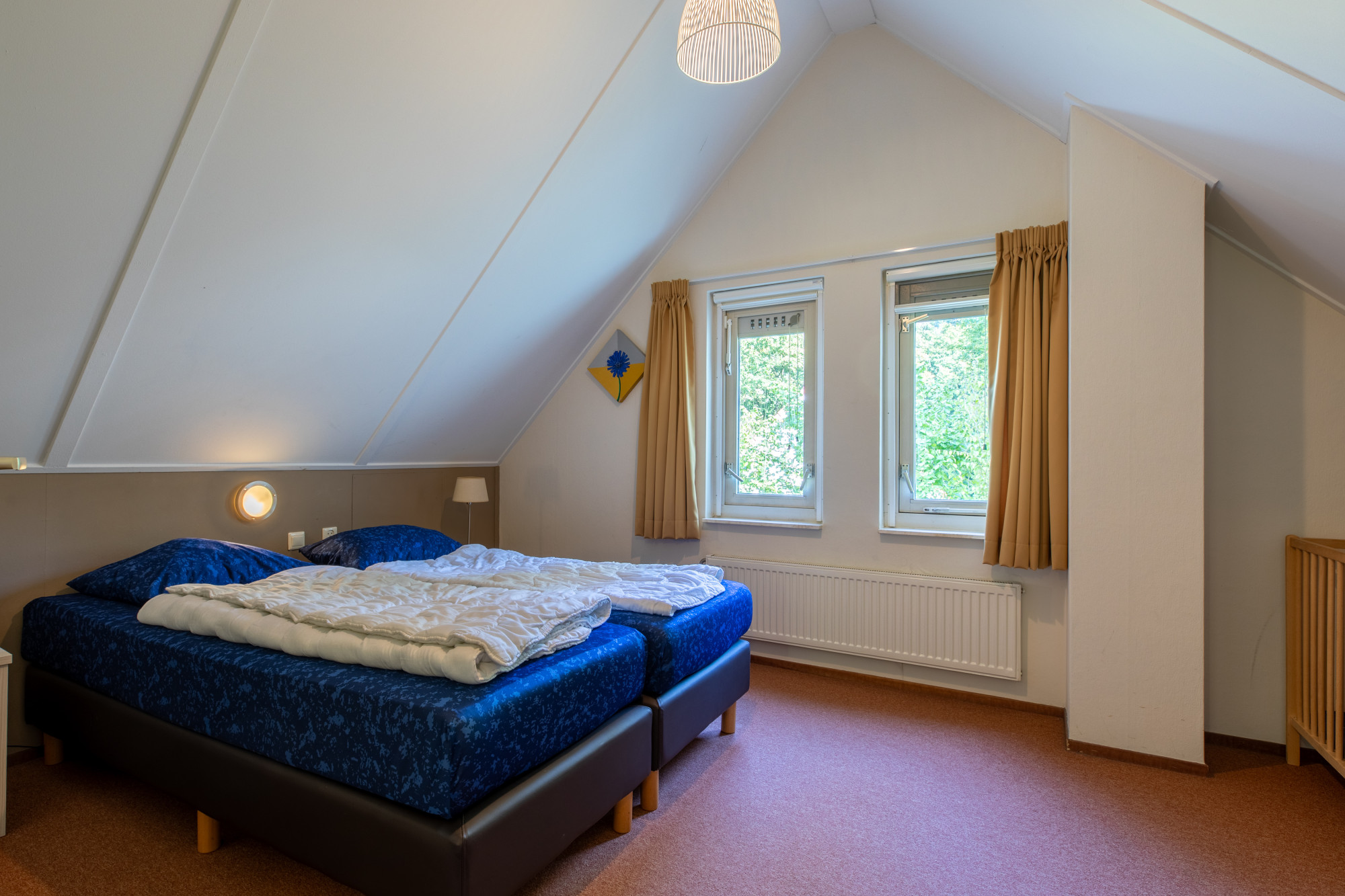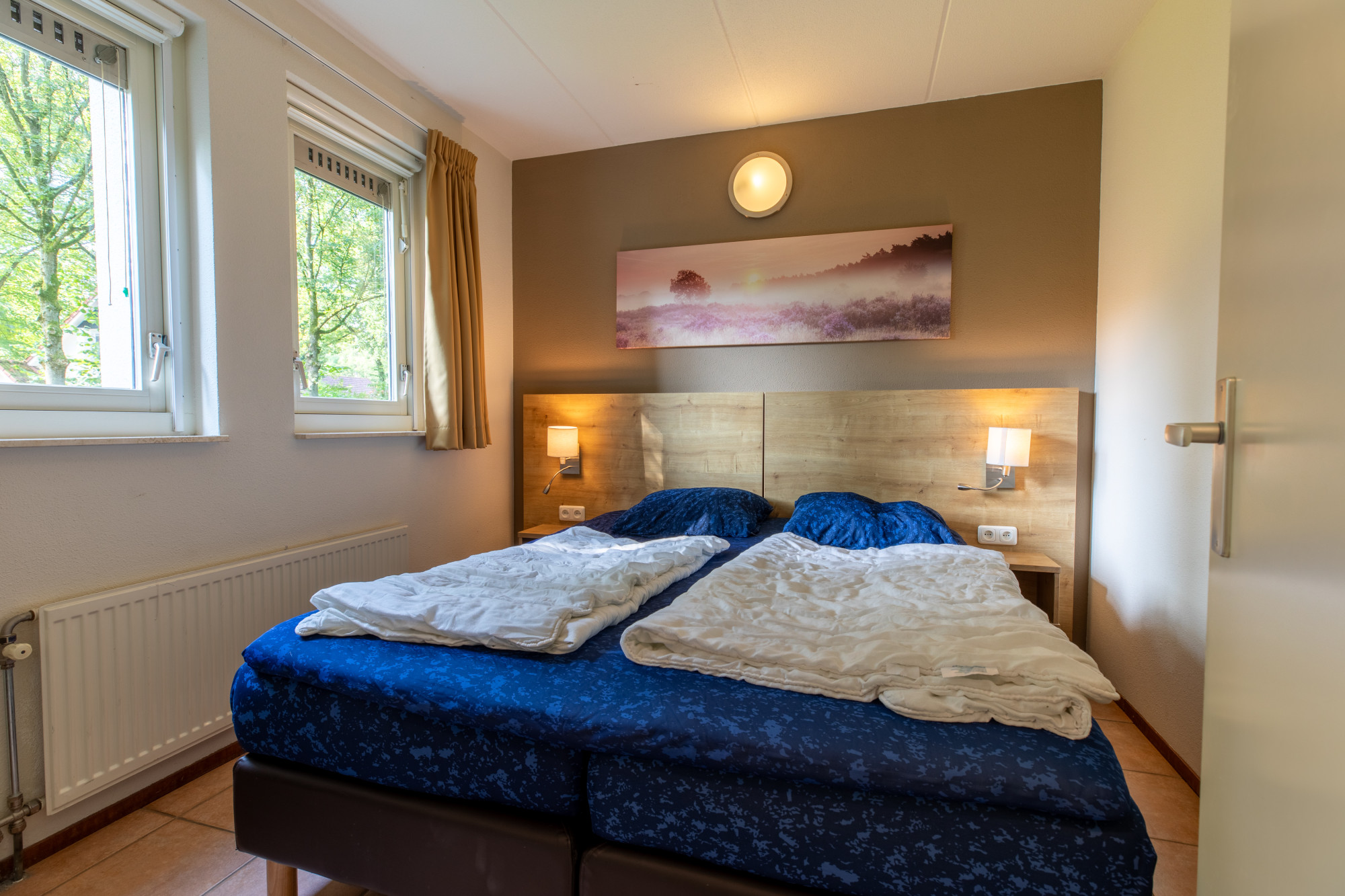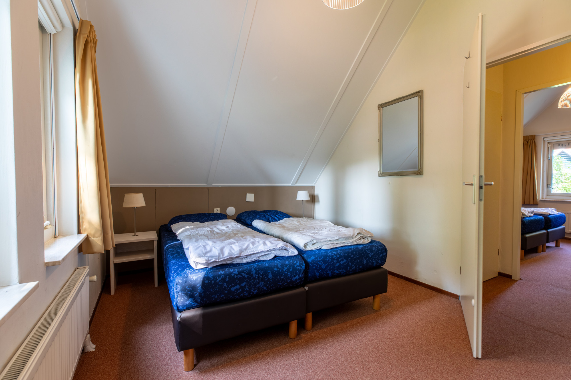 Twee ruime slaapkamers met boxspring bedden er is een kleine berging.