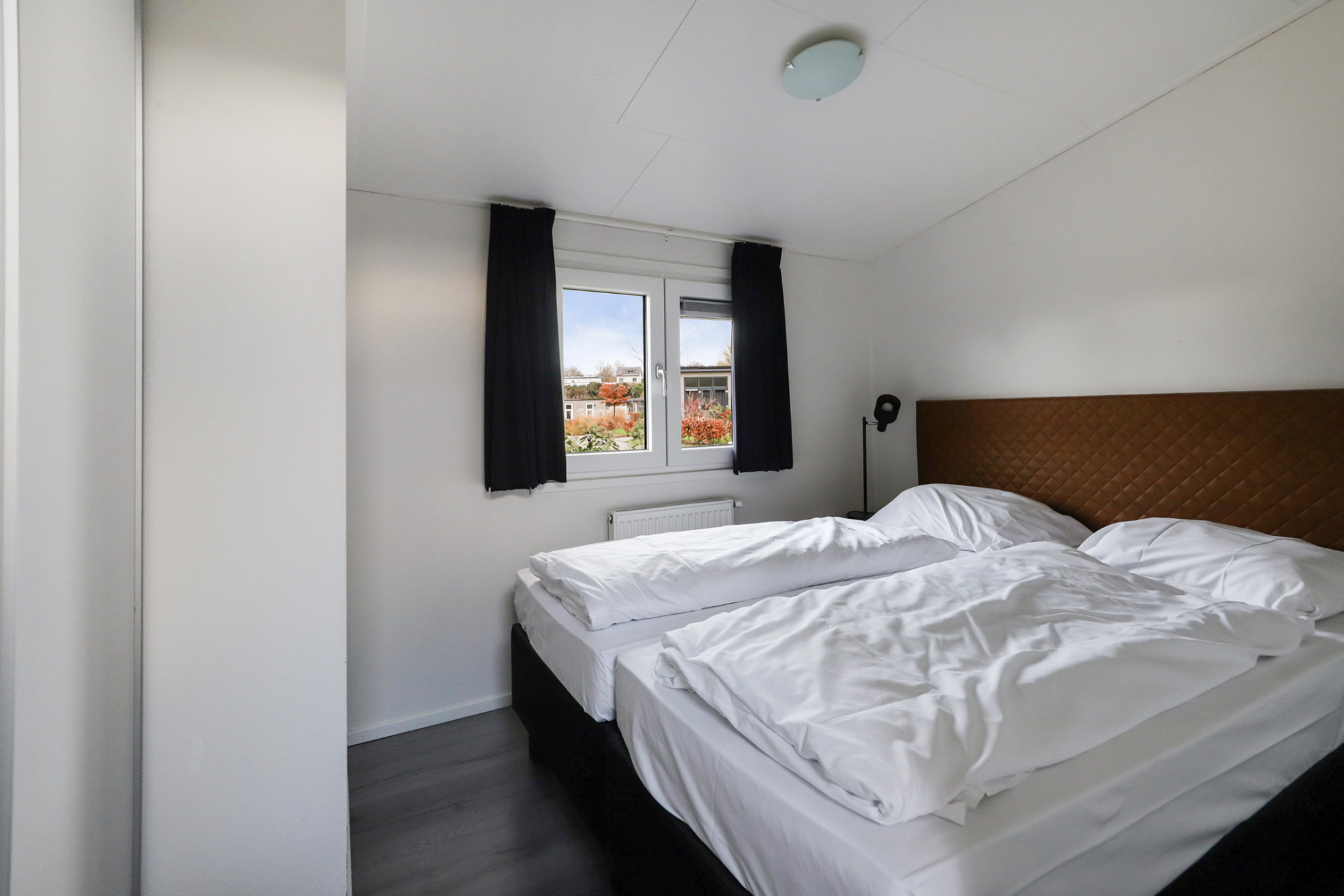 De grootste slaapkamer is voorzien van een 2-persoonsbed en een kastenwand met schuifdeuren. De tweede slaapkamer is ingedeeld met een stapelbed, ook deze kamer beschikt over voldoende opbergmogelijkheden. De derde slaapkamer heeft 2 eenpersoonsbedden met kast.