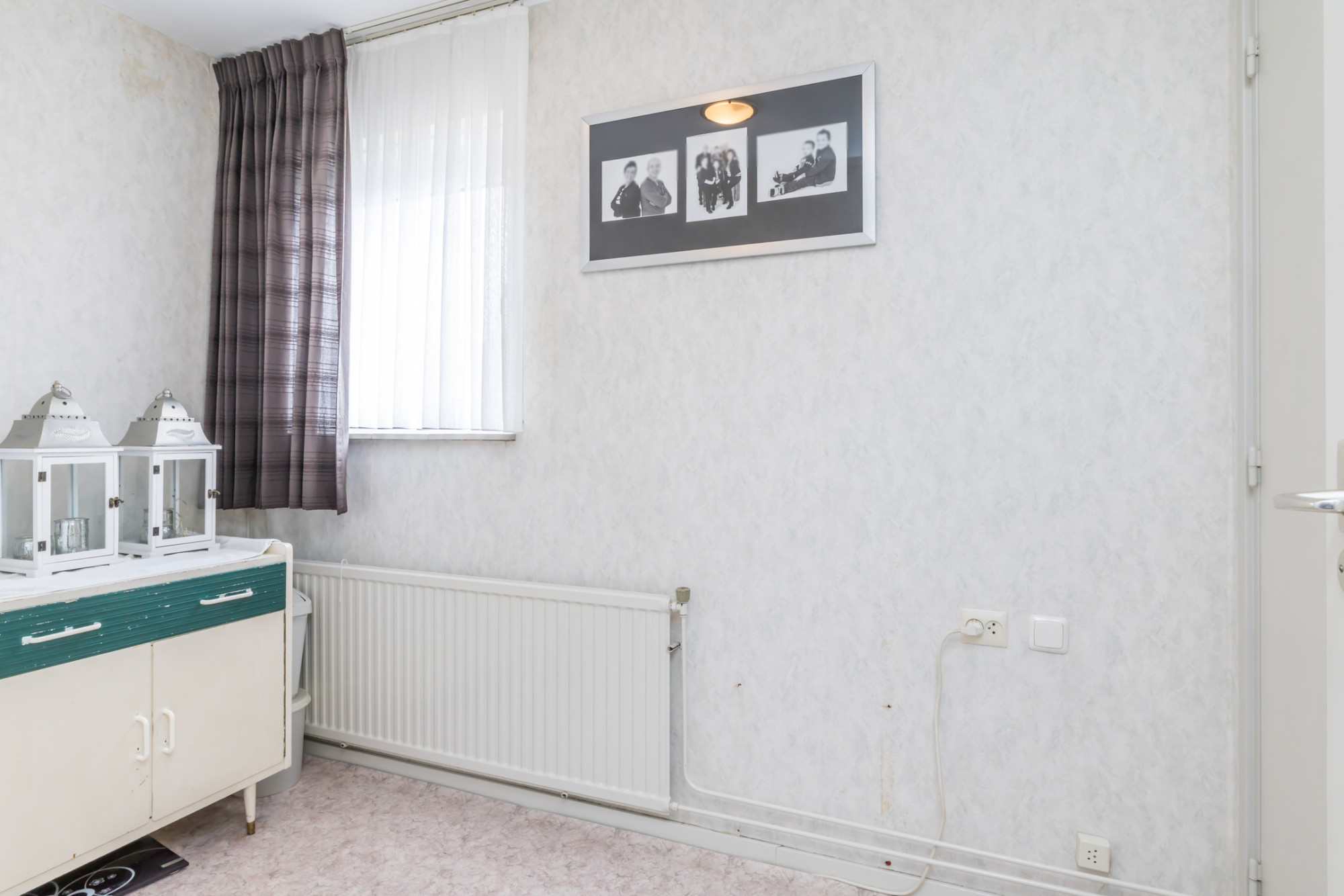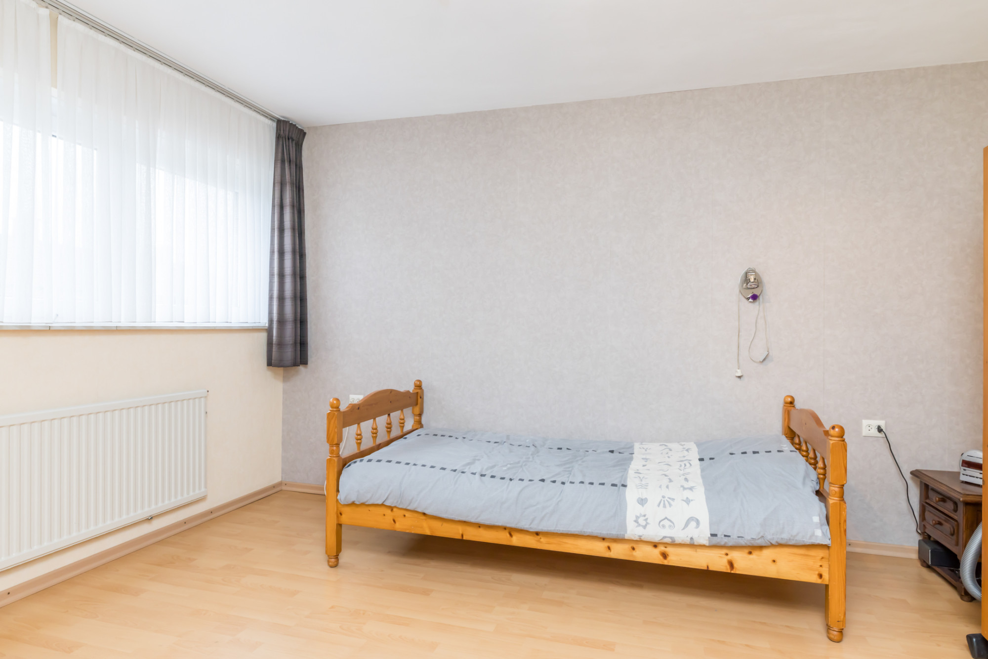 Hobby-/studeerkamer met vaste kastenwand. De slaapkamer aan de linker voorzijde is in gebruik als logeerkamer.