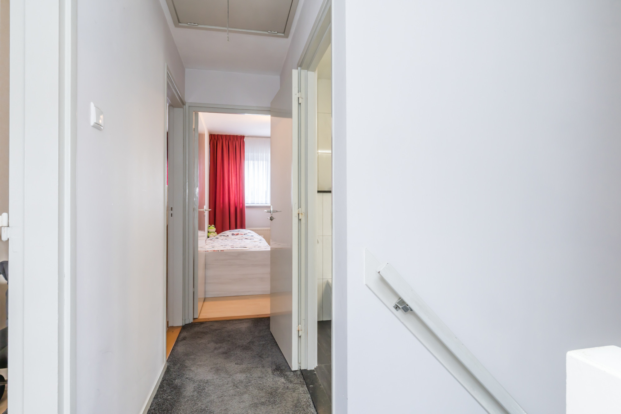 Overloop met toegang tot de slaapvertrekken, hobby-/studeerkamer, de badkamer en vlizotrap naar de zolder.