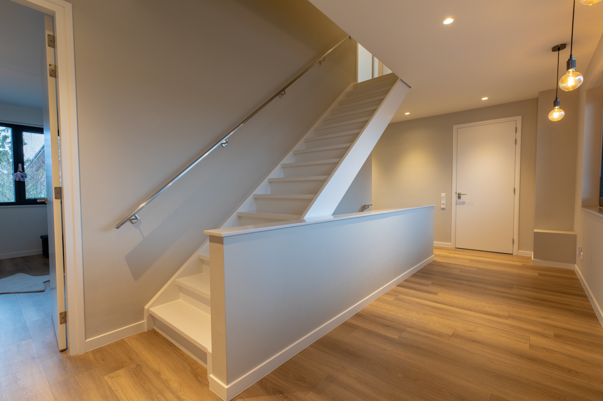 Riante ontvangsthal (5.31 x 2.43 m) voorzien van ruime op maat gemaakte garderobe kasten en met prachtige zwevende trap naar de eerste verdieping.