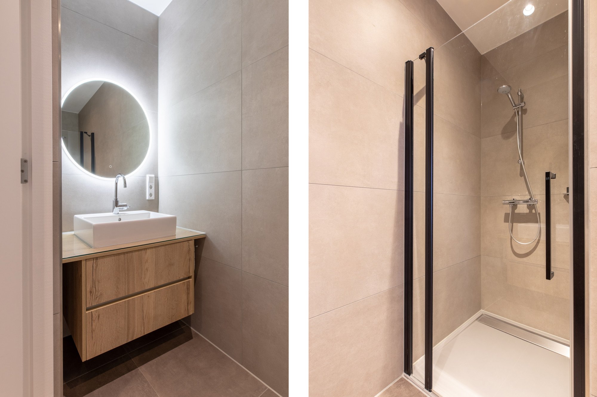 Badkamer 2 (2.83 x 1.00 m) geheel betegeld en met inloopdouche en vaste wastafel meubel.