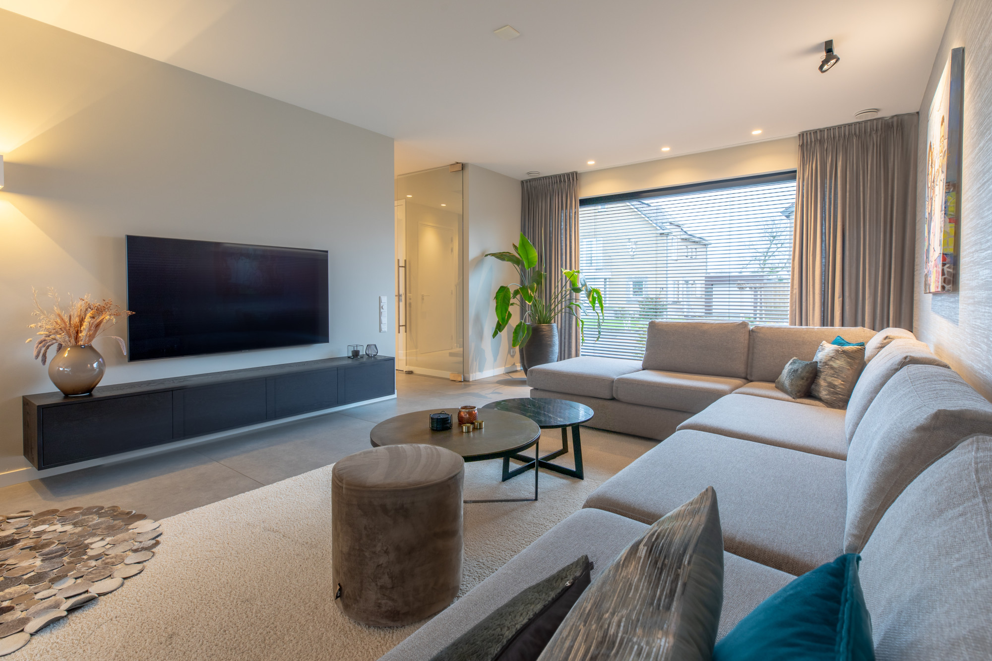 De woning is ontworpen met een verlichtingsplan zodat bij elke ruimte de sfeer op het juiste moment gecreëerd kan worden.
