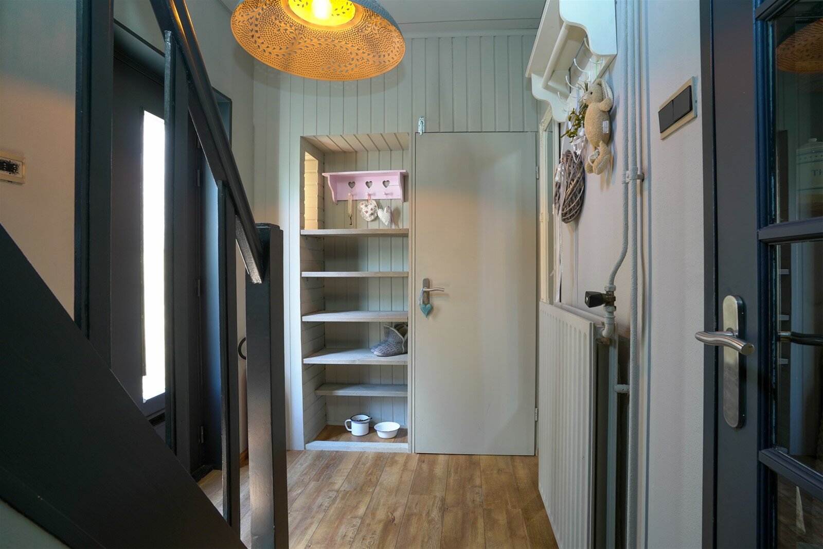 Entree met vernieuwde meterkast trap naar de kelder, 1e verdieping en toegang naar de keuken.