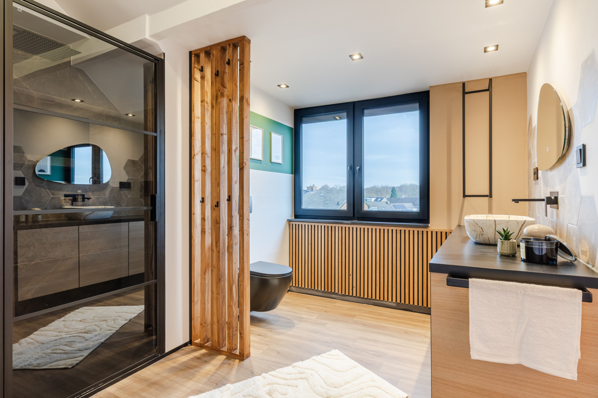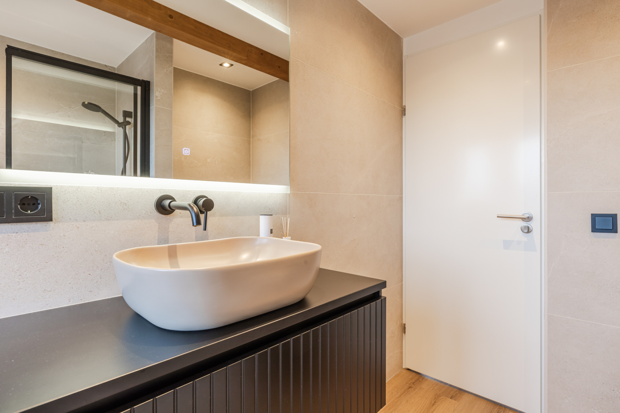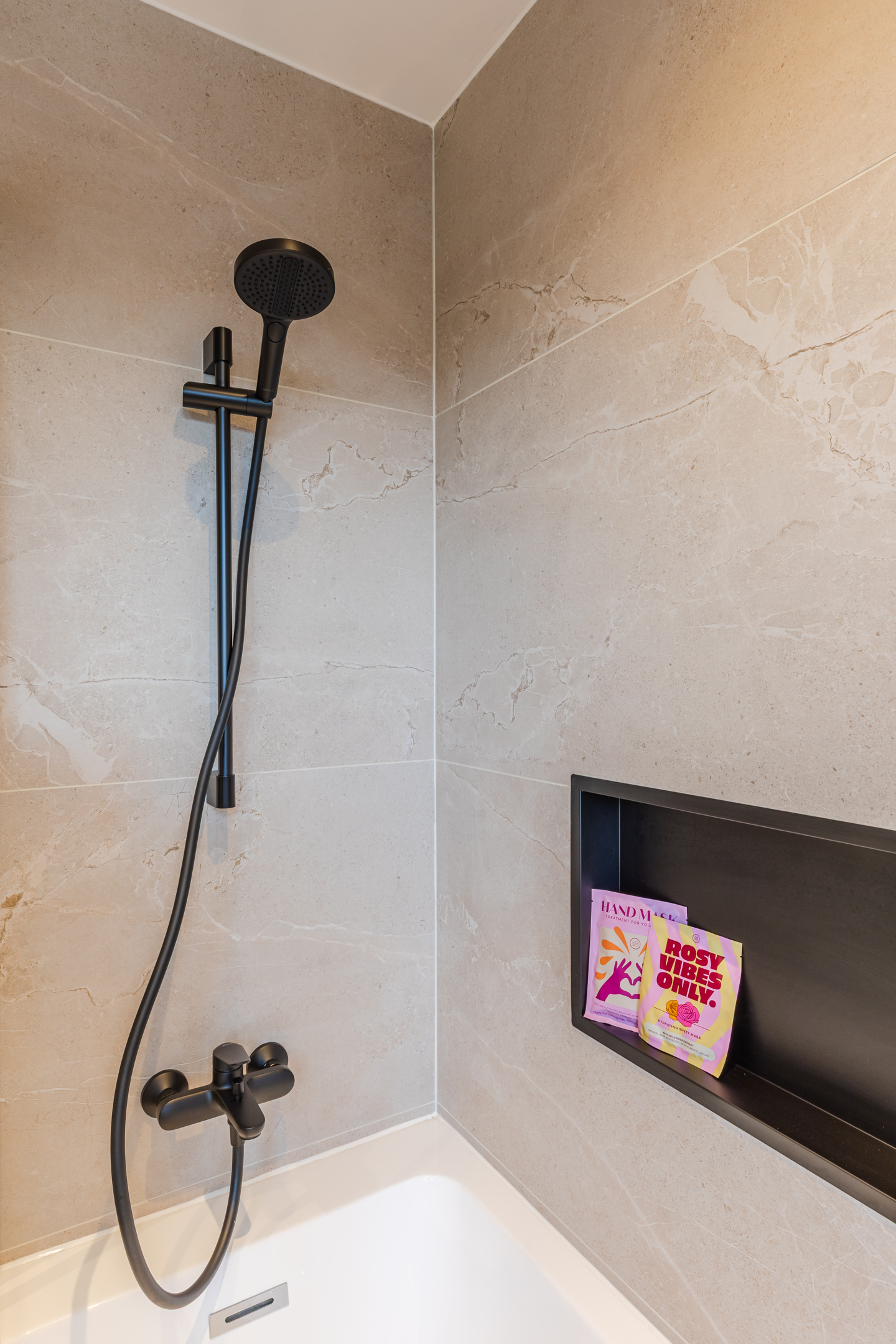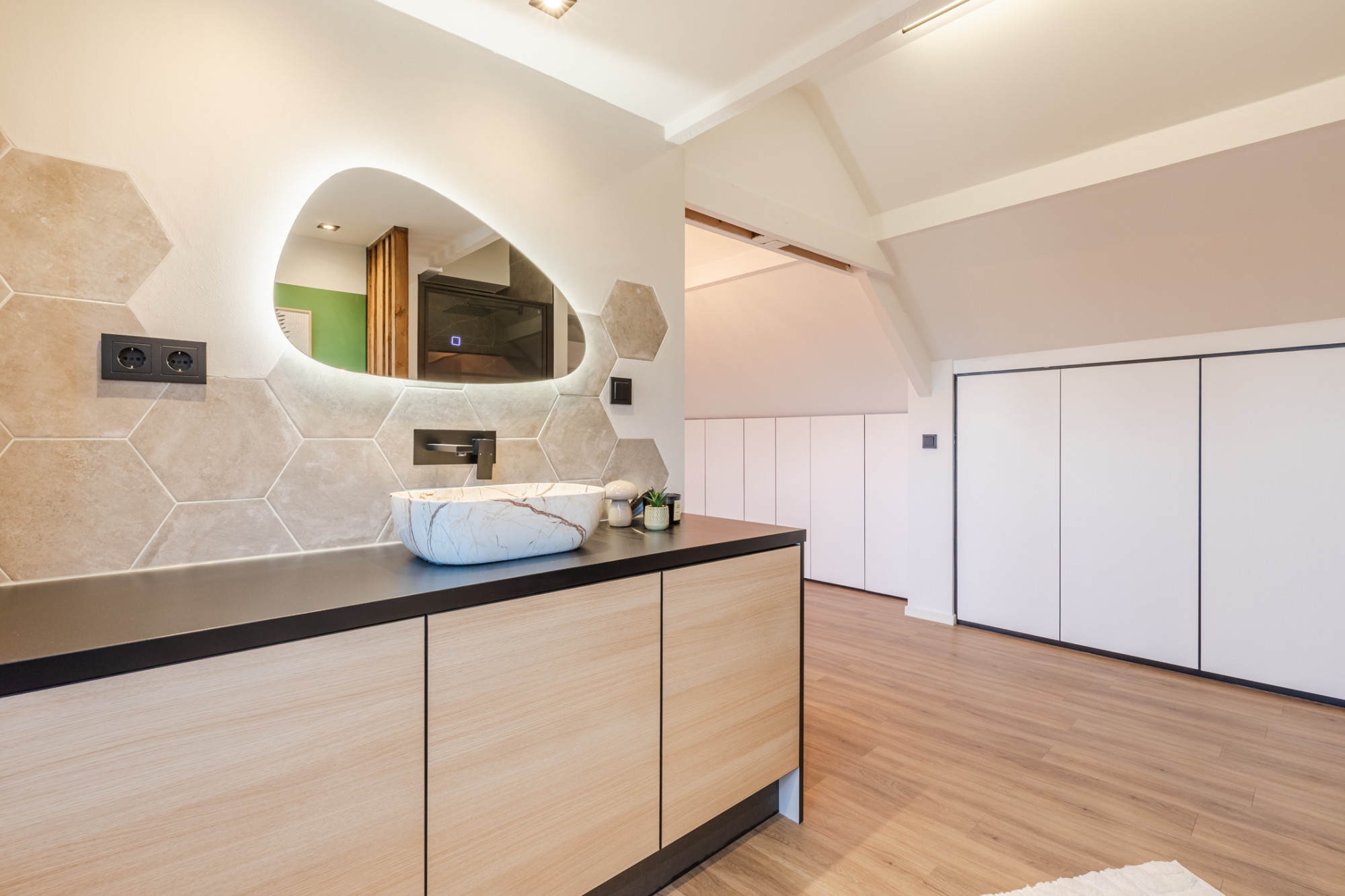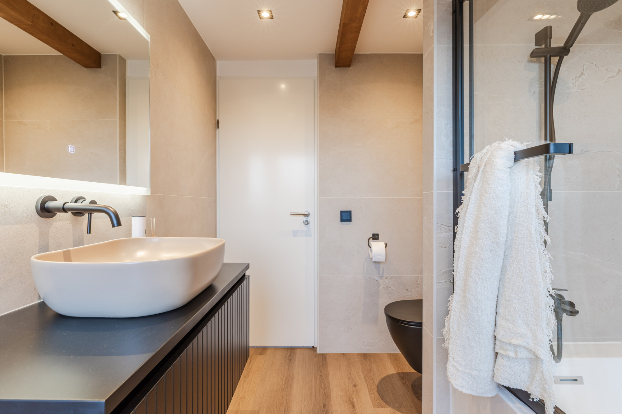 Tweede luxe badkamer (2024) met inloopdouche en wastafelmeubel