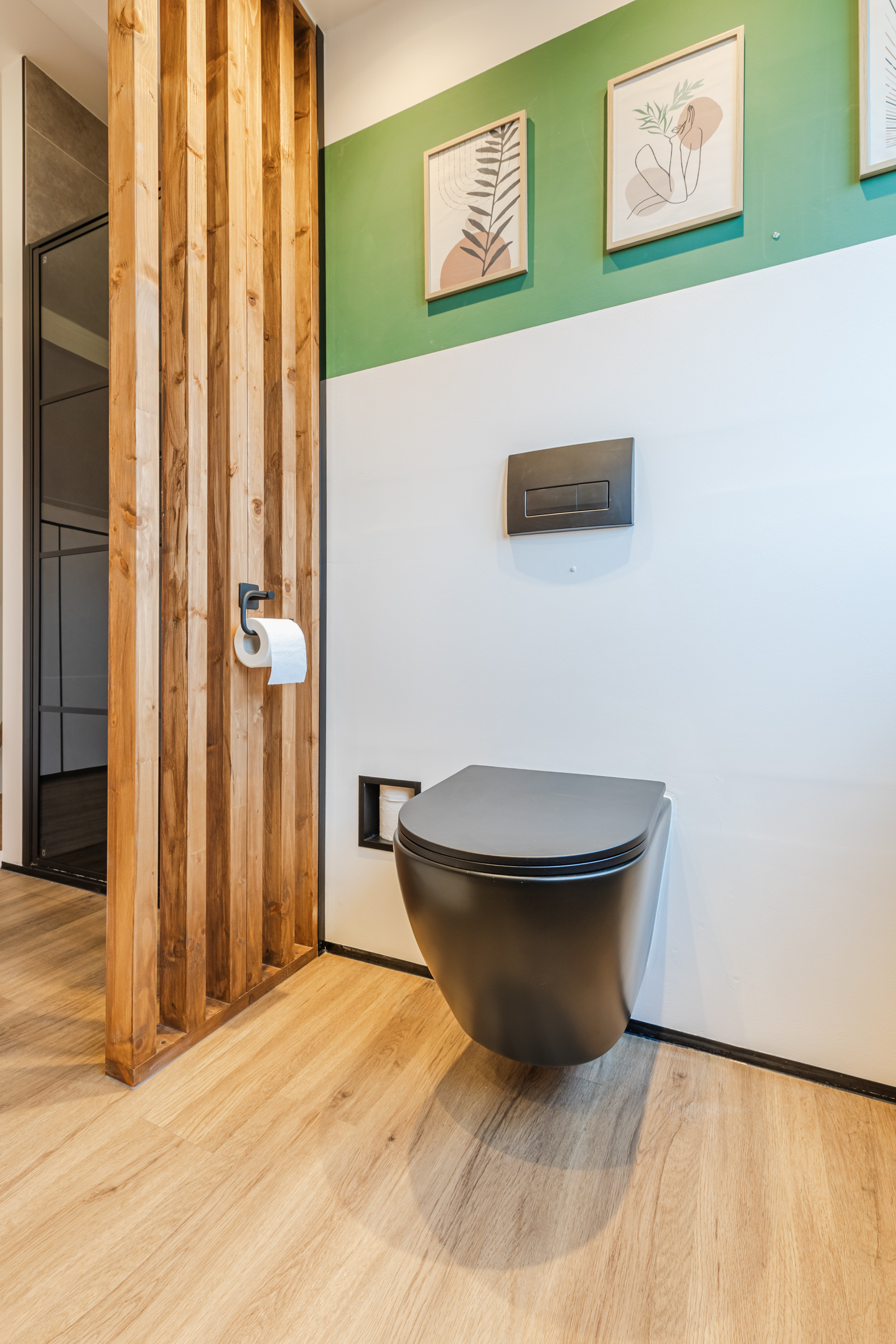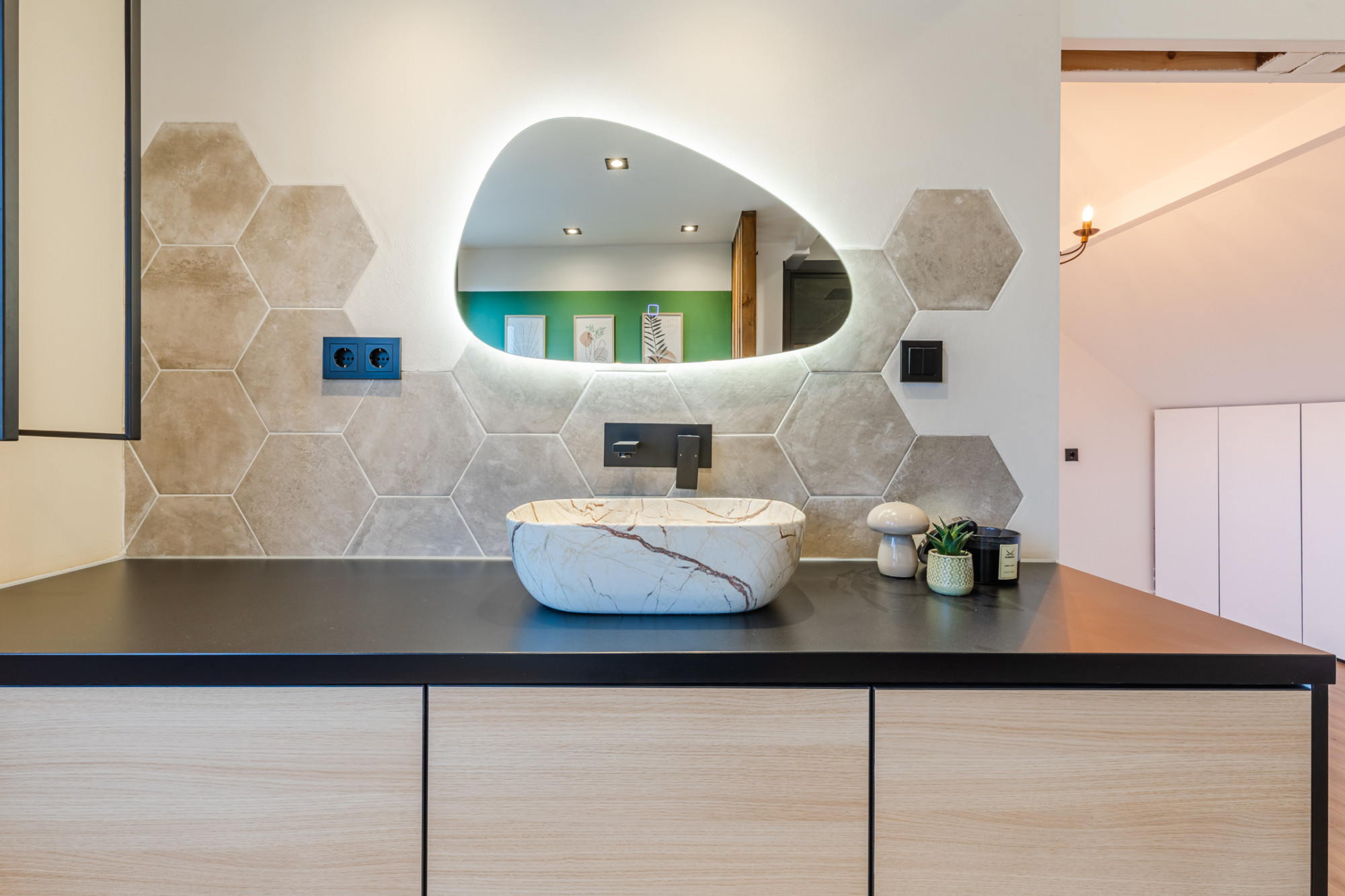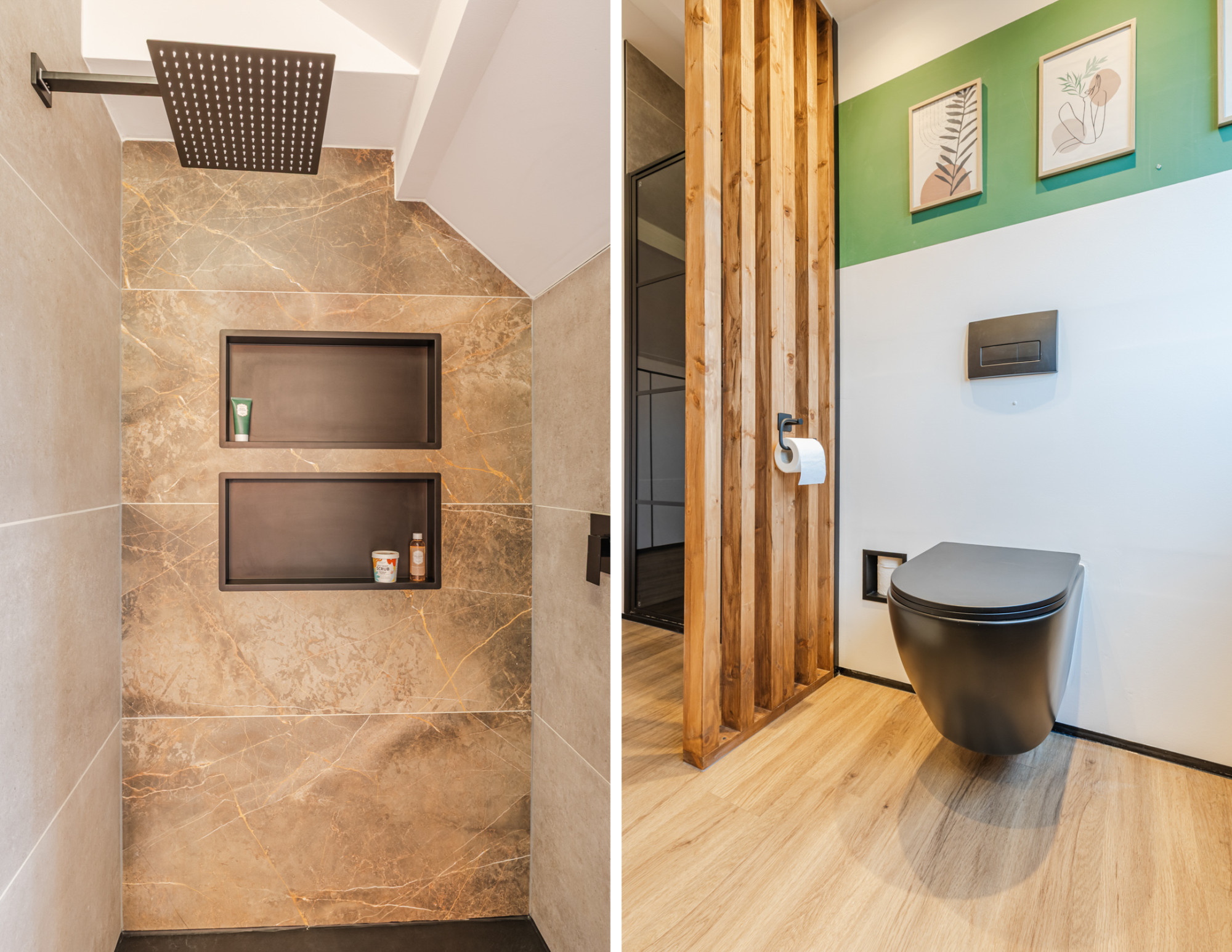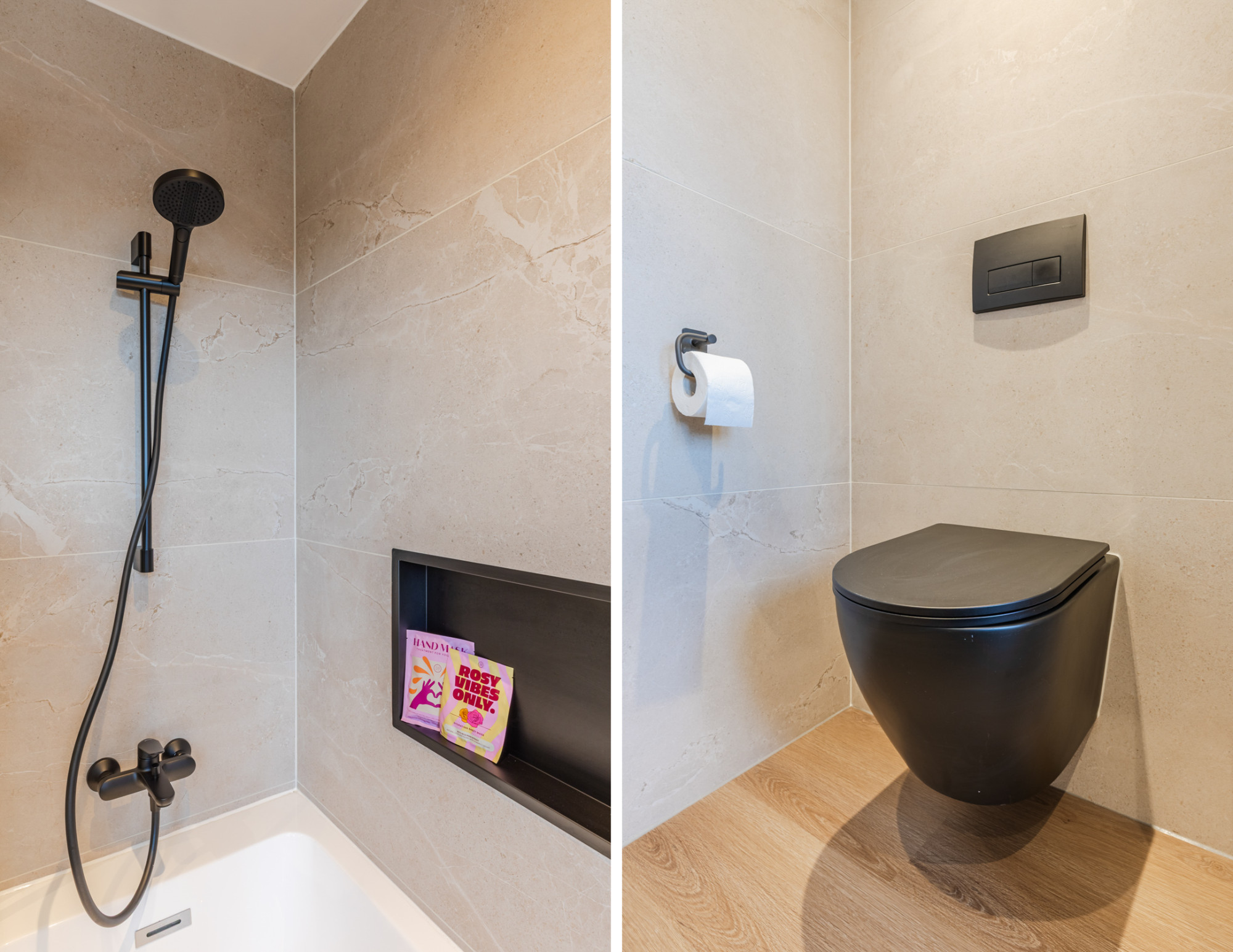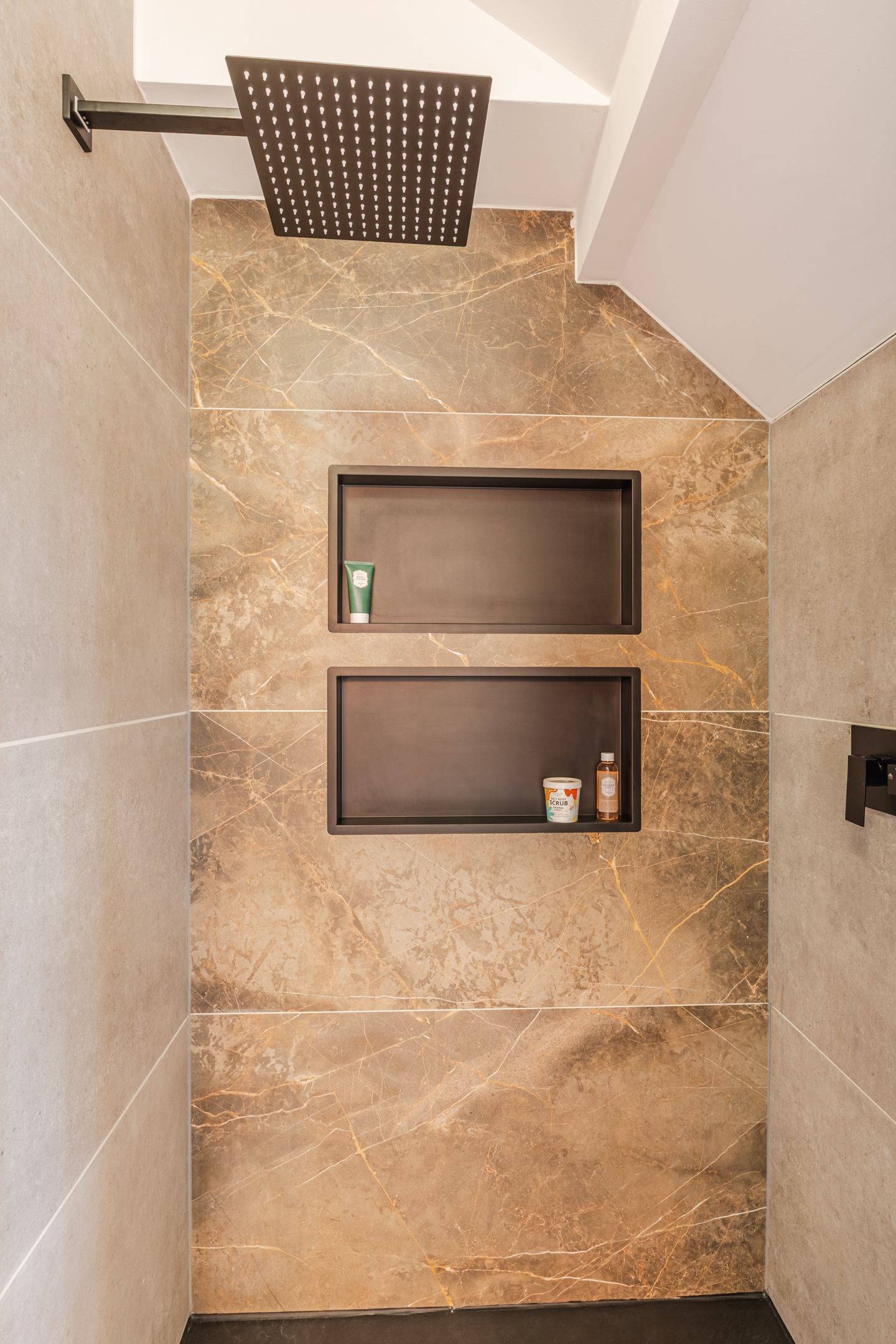 Tweede luxe badkamer (2024) met inloopdouche en wastafelmeubel