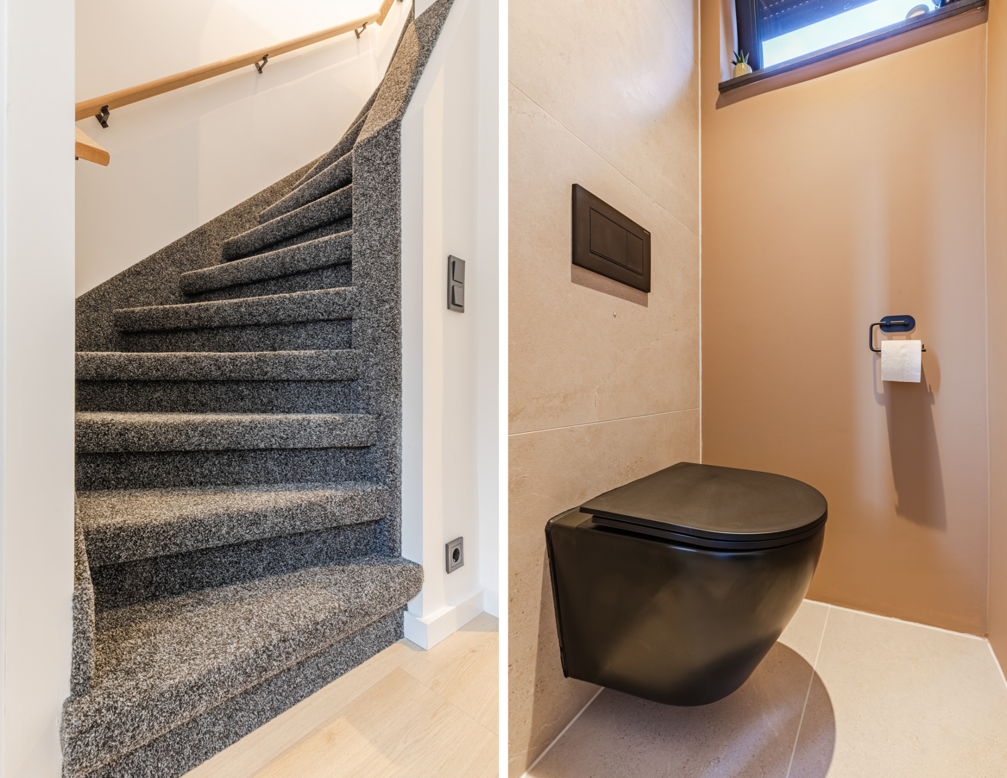 een eerste verdieping met moderne badkamer, vernieuwde installaties en kunststof kozijnen met triple glas.
