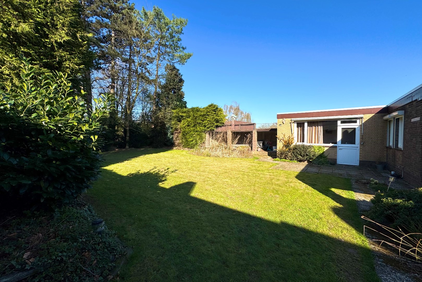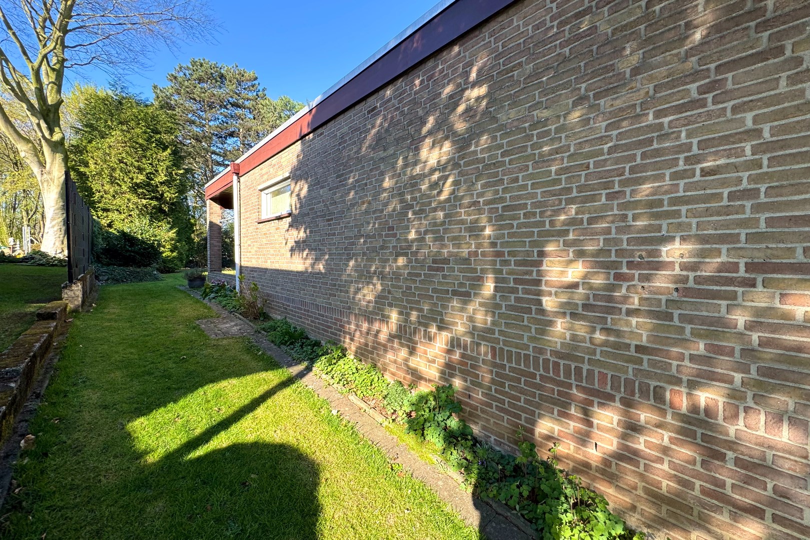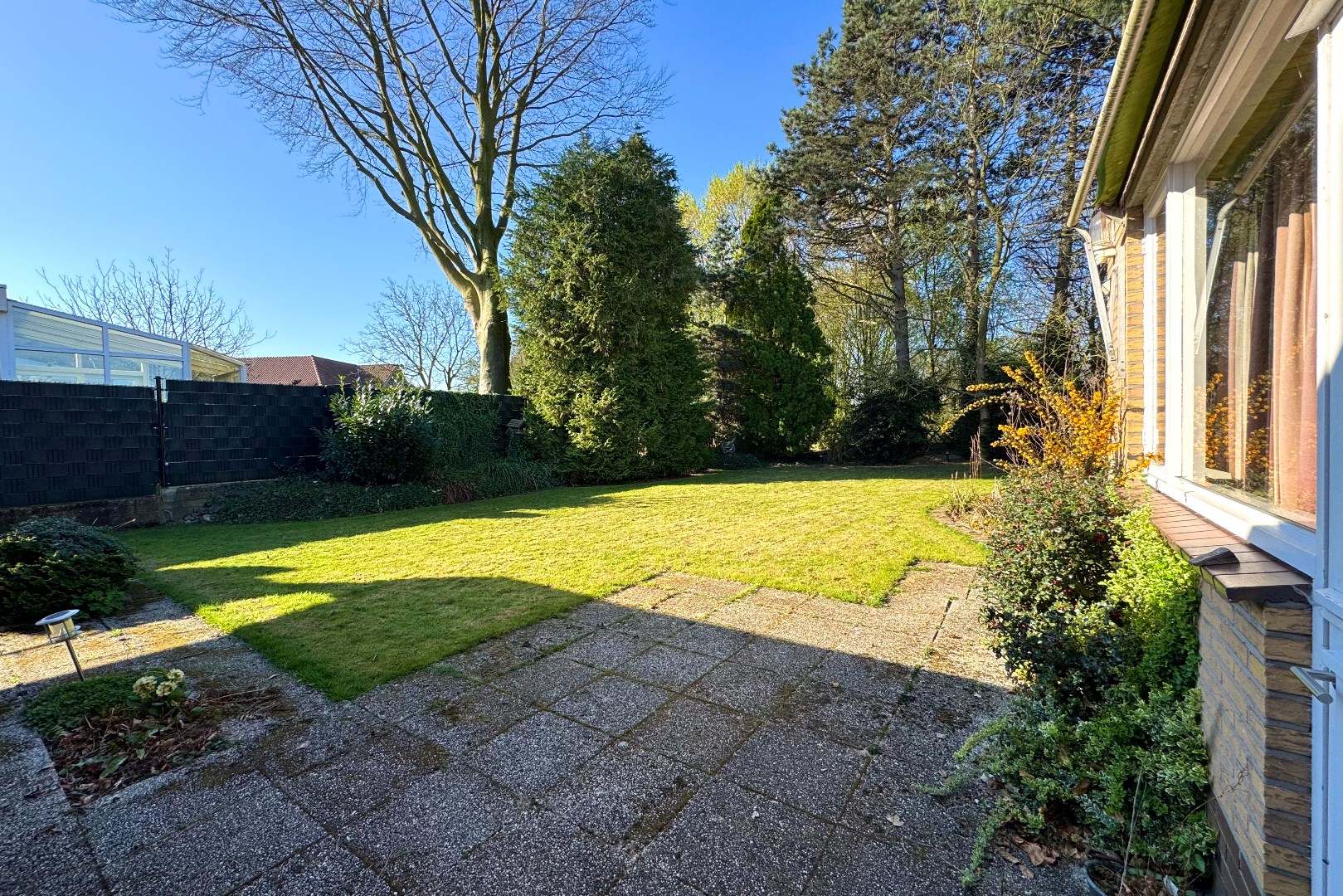 Deze bungalow beschikt over een royale achtergelegen tuin die op het zuidwesten gesitueerd is. Deze tuin beschikt o.a. over een terras, overkapping (5.72 x 3.17), gazon, borders en een achterom. Door hele vele groen en de mooie bomen kan men hier heerlijk van de zon en de natuur genieten. Doordat er achter de tuin geen woningen liggen is het privacy niveau hoog.