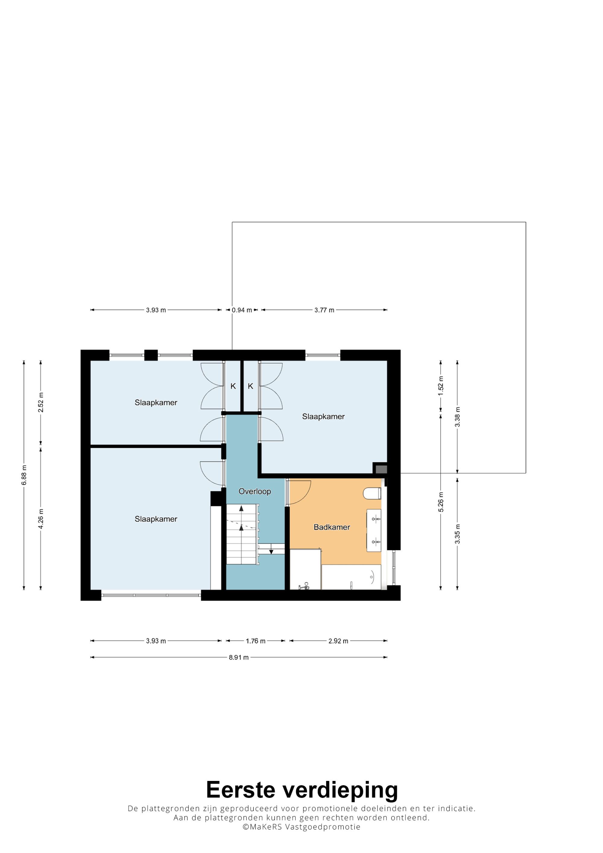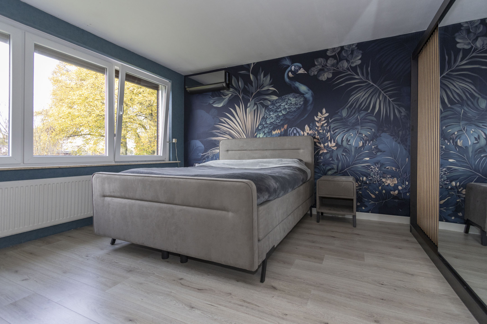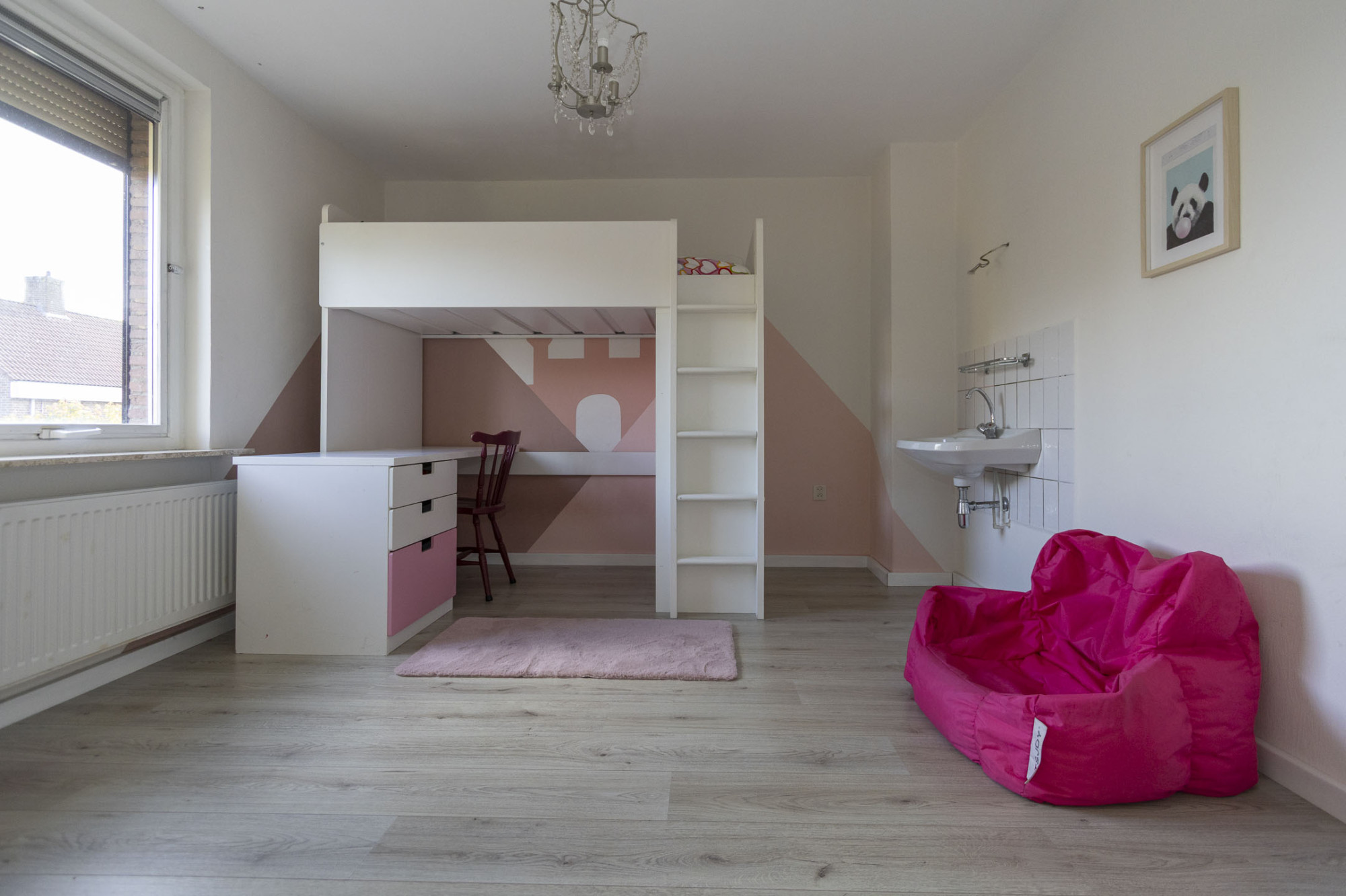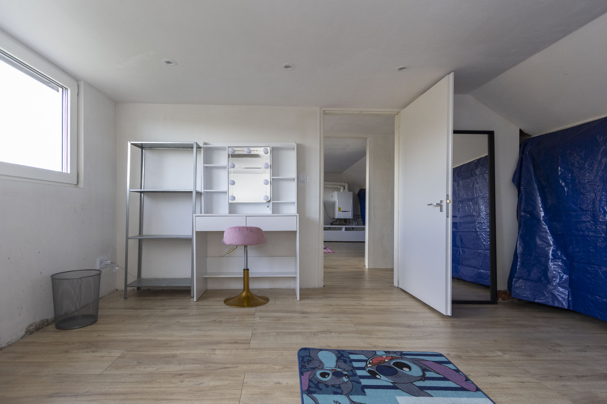 Op de eerste verdieping bevinden zich drie slaapkamers, allen voorzien van dezelfde lichte laminaatvloer en nette afwerking. Een van de slaapkamers is uitgerust met een ingebouwde sfeerhaard. Twee van de drie slaapkamers hebben praktische muurkasten en een airco.