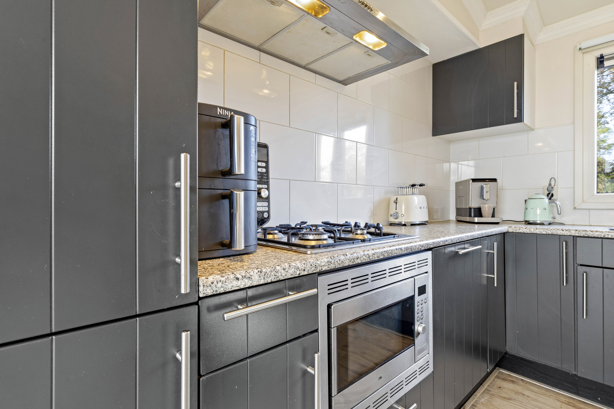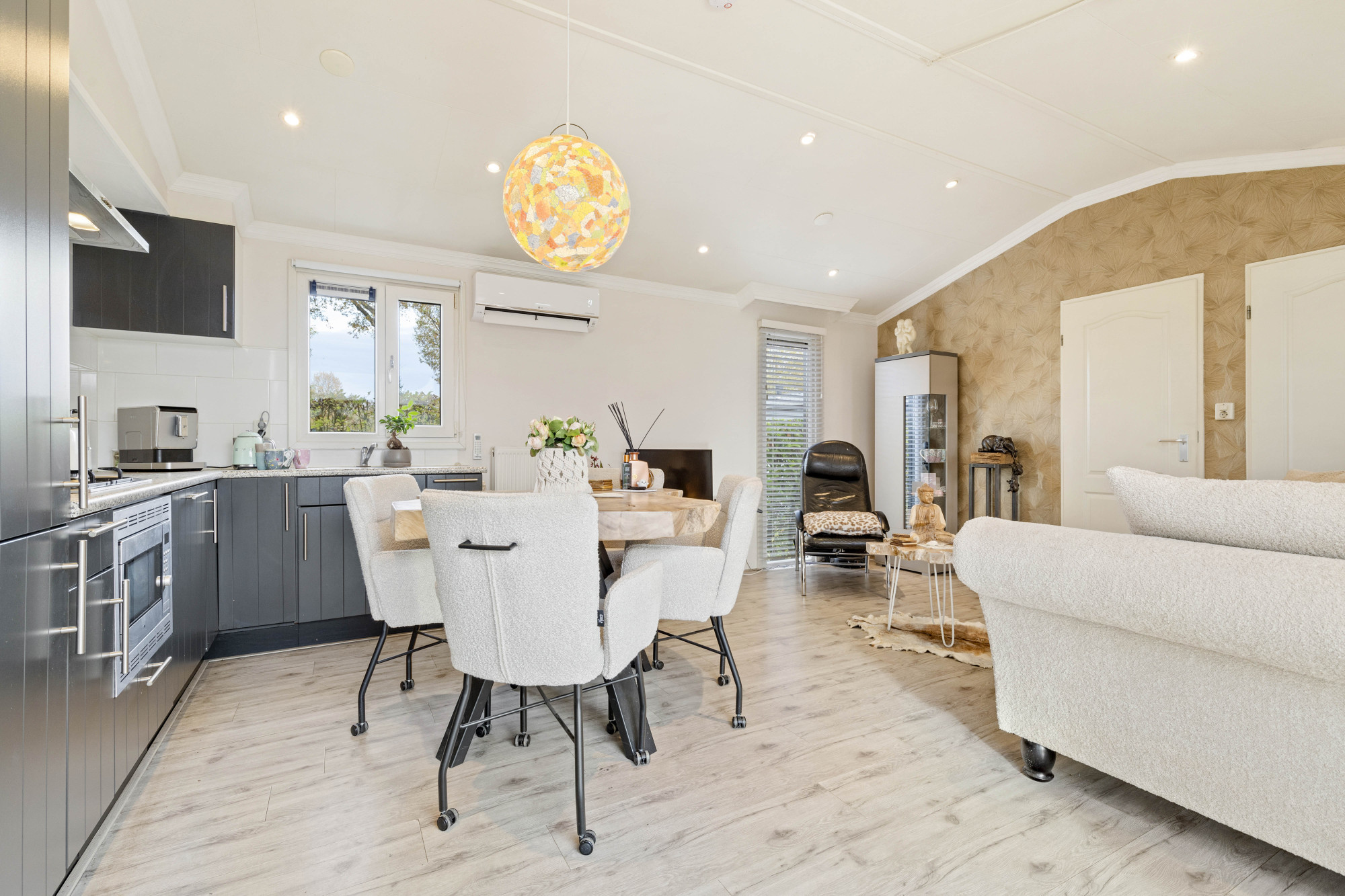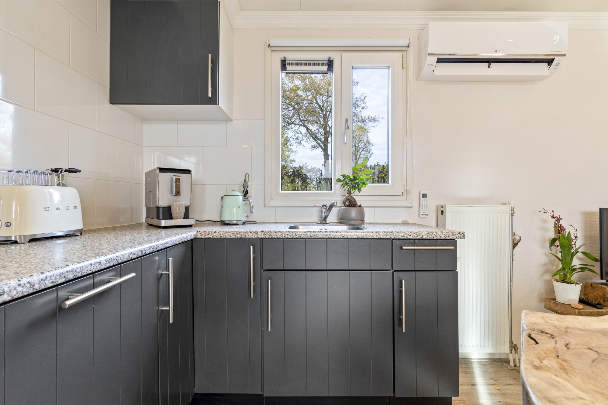 Of je nu ’s ochtends de eerste zonnestralen meepakt, ’s middags ontspannen werkt of ’s avonds gezellig borrelt met vrienden: deze tuinserre biedt een heerlijke plek voor elk moment van de dag. Dankzij de schuifpui open je de ruimte in een handomdraai, waardoor binnen en buiten moeiteloos in elkaar overlopen.