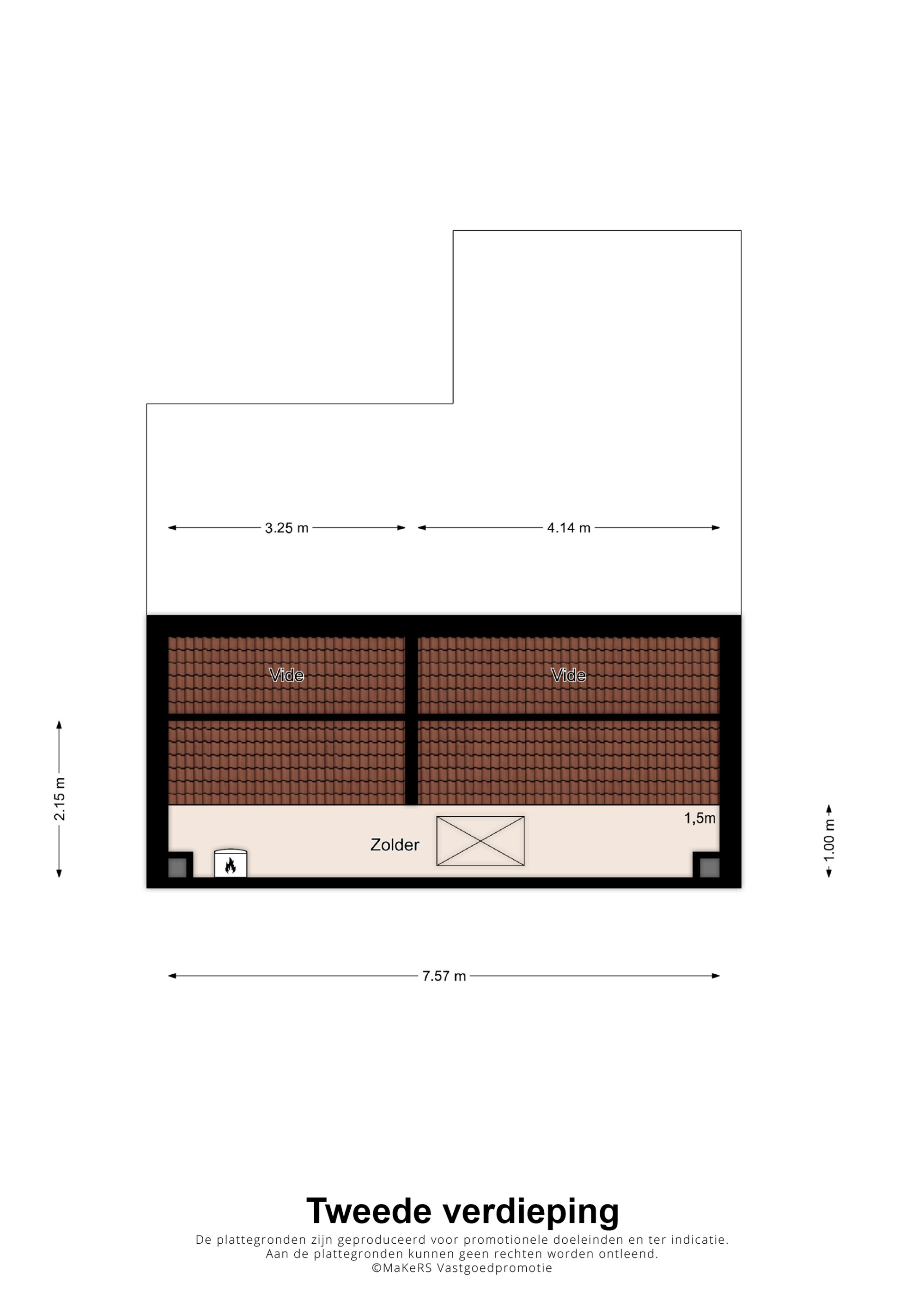 Via een vlizotrap bereikt u de riante bergzolder waar ook de CV-ketel (Nefit HR, eigendom. ca. 2020) is geïnstalleerd.