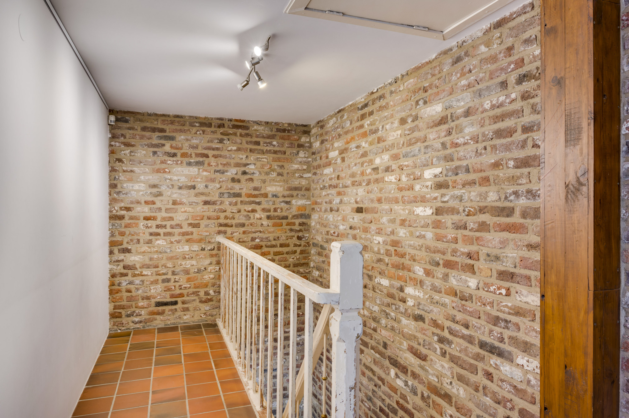 De ruime overloop, geschikt als hobbyruimte, geeft toegang tot twee knusse slaapkamers met authentieke houten vloeren. De badkamer is ingericht met een douchecabine en een wastafel met meubel. Daarnaast vindt u hier een aparte toiletruimte met een fonteintje.