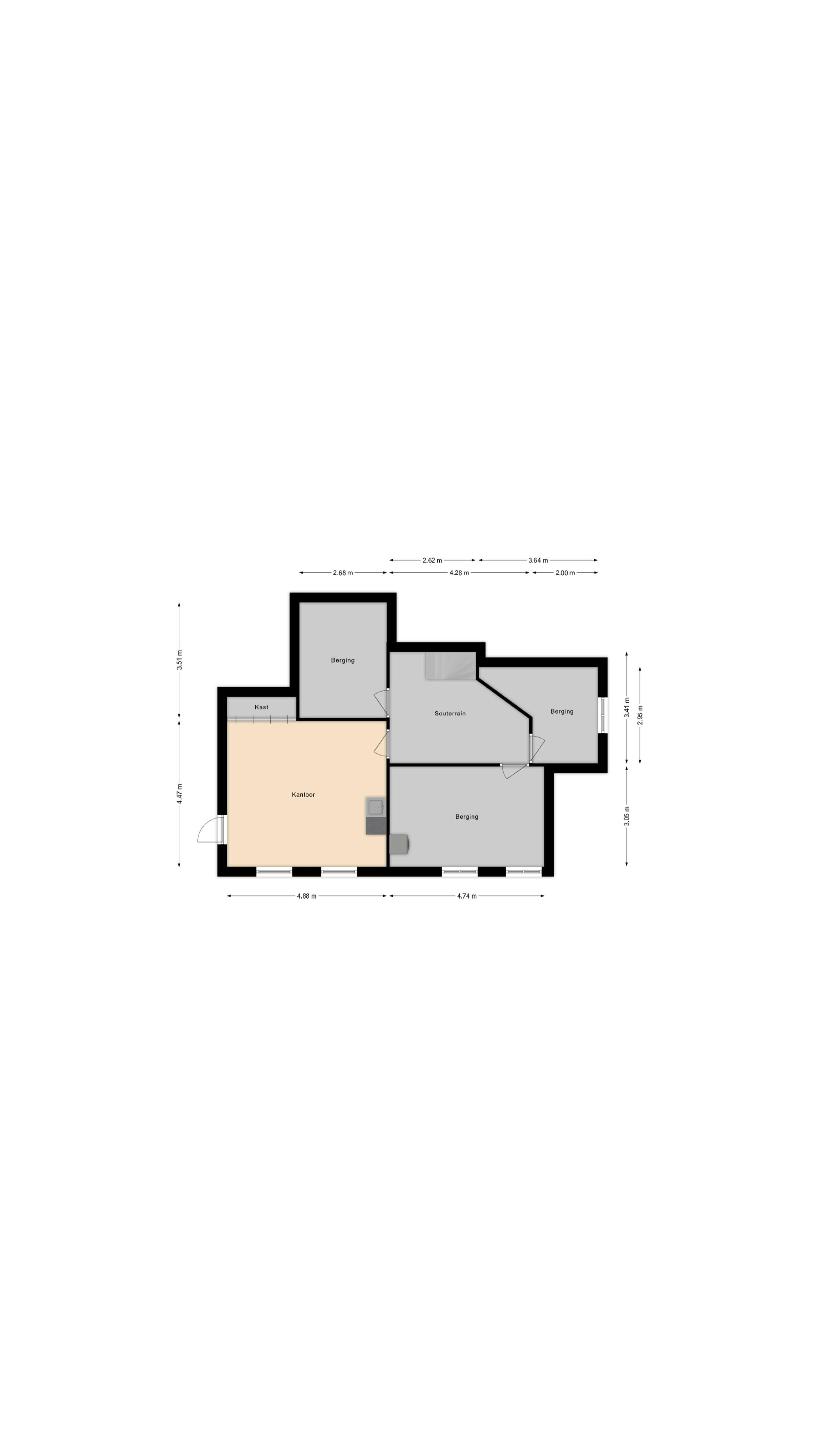 Kantoor/werkruimte met bergkast en toegang naar buitentrap.