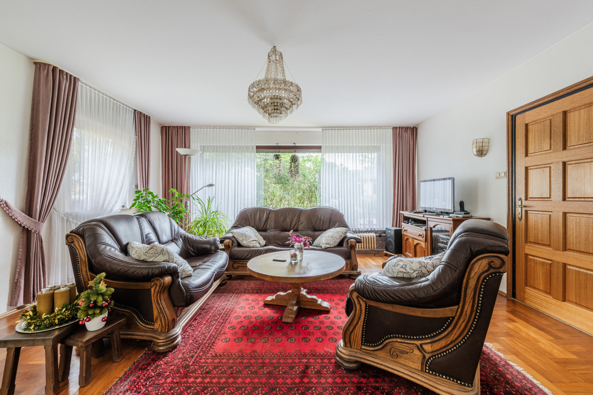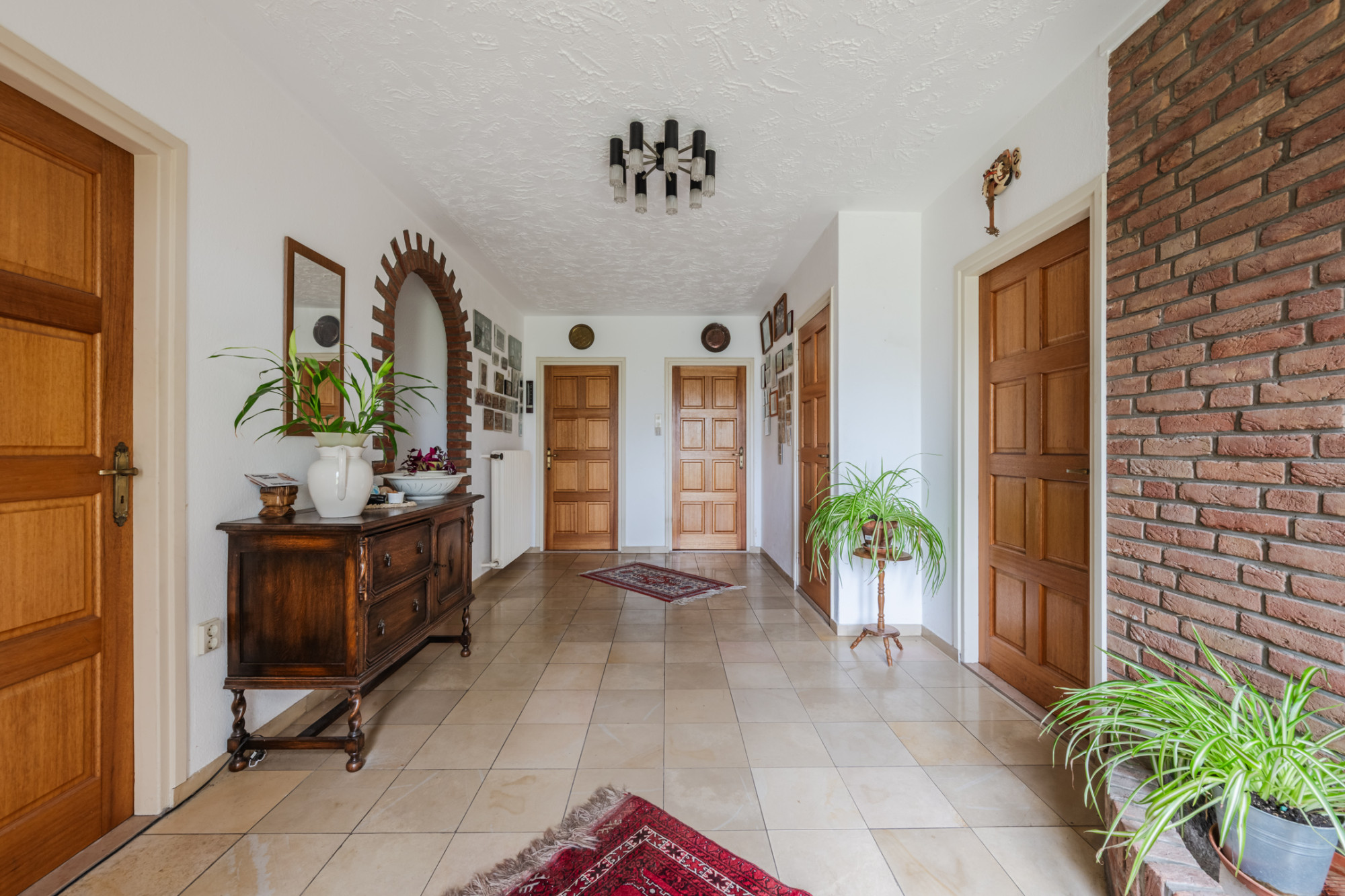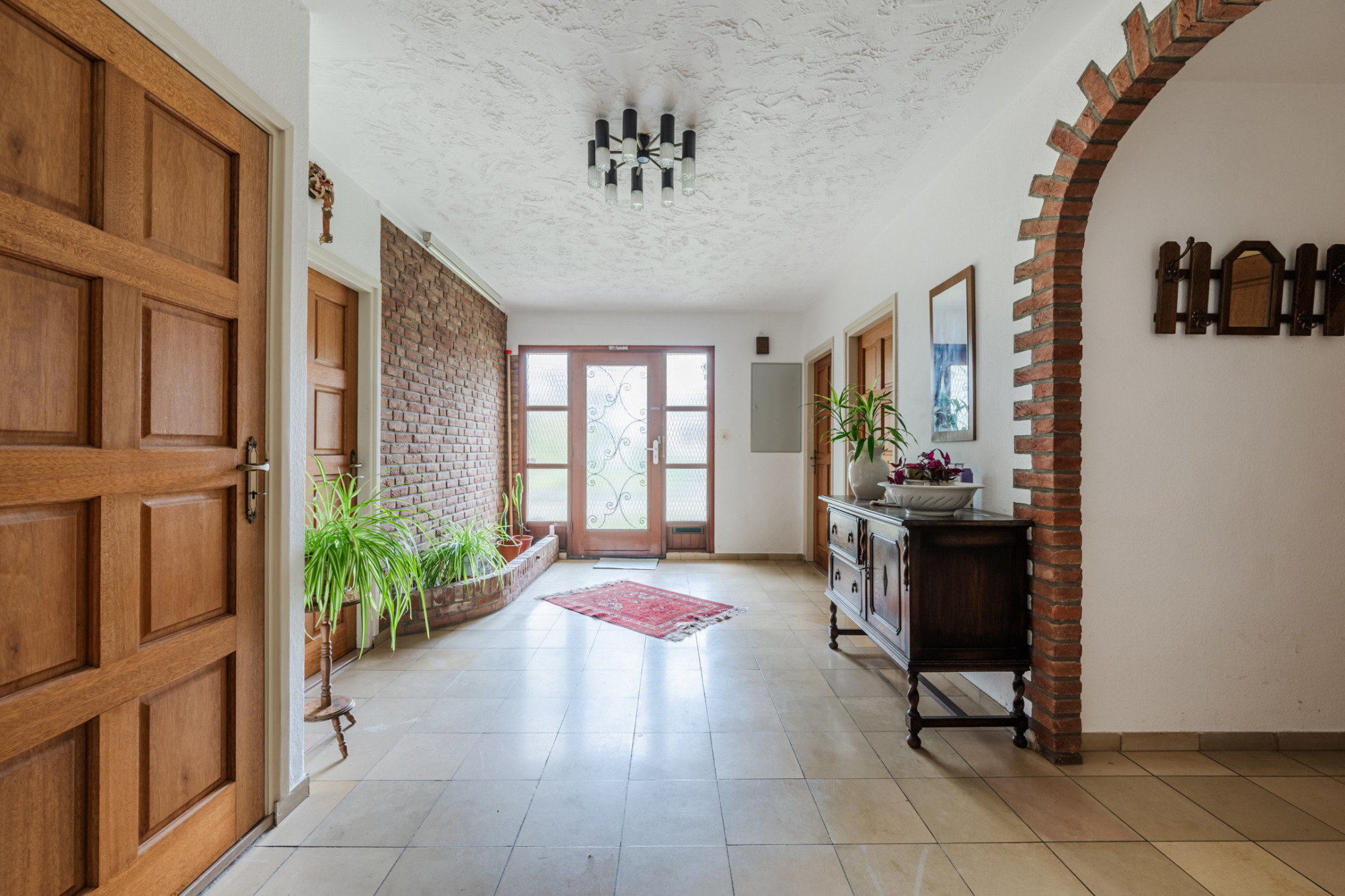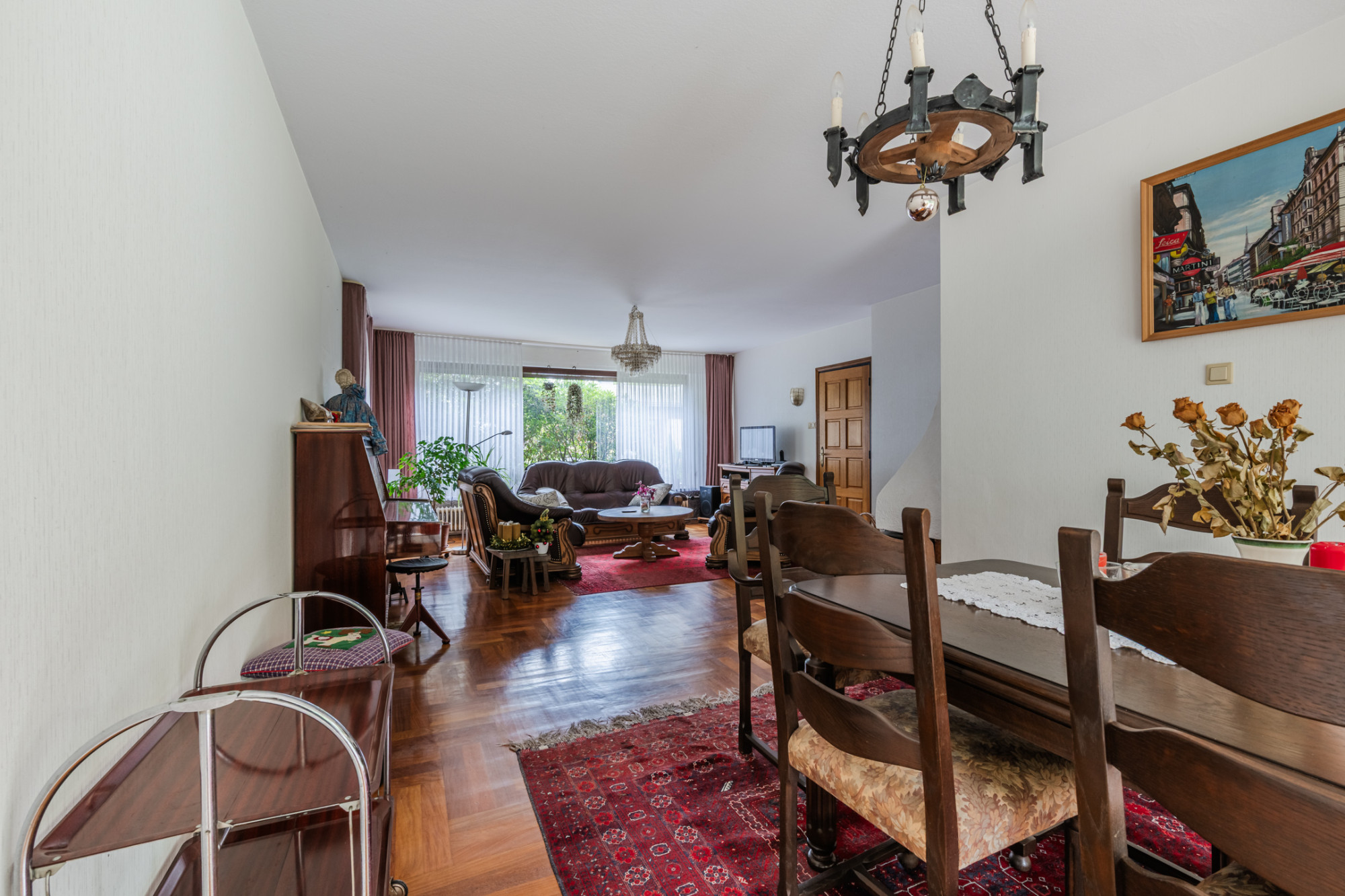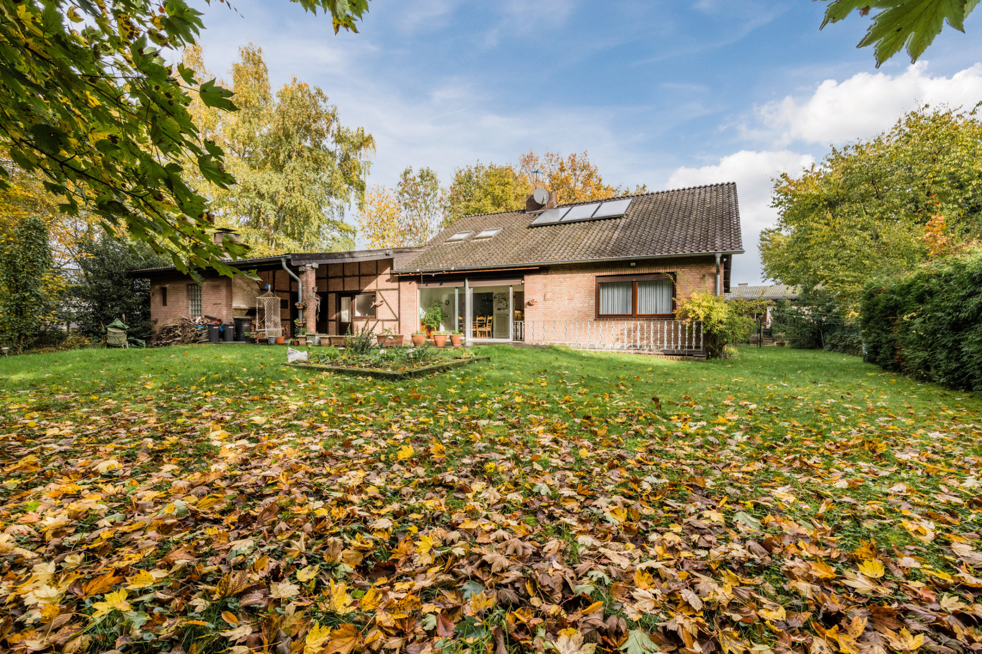 Achter de woning ligt een groot overdekt terras met open haard, ideaal om tot laat buiten te zitten. De woning, gebouwd in 1961, ademt de sfeer van oude chique maar vraagt om modernisering. De cv-installatie is buiten gebruik en dient te worden vervangen.