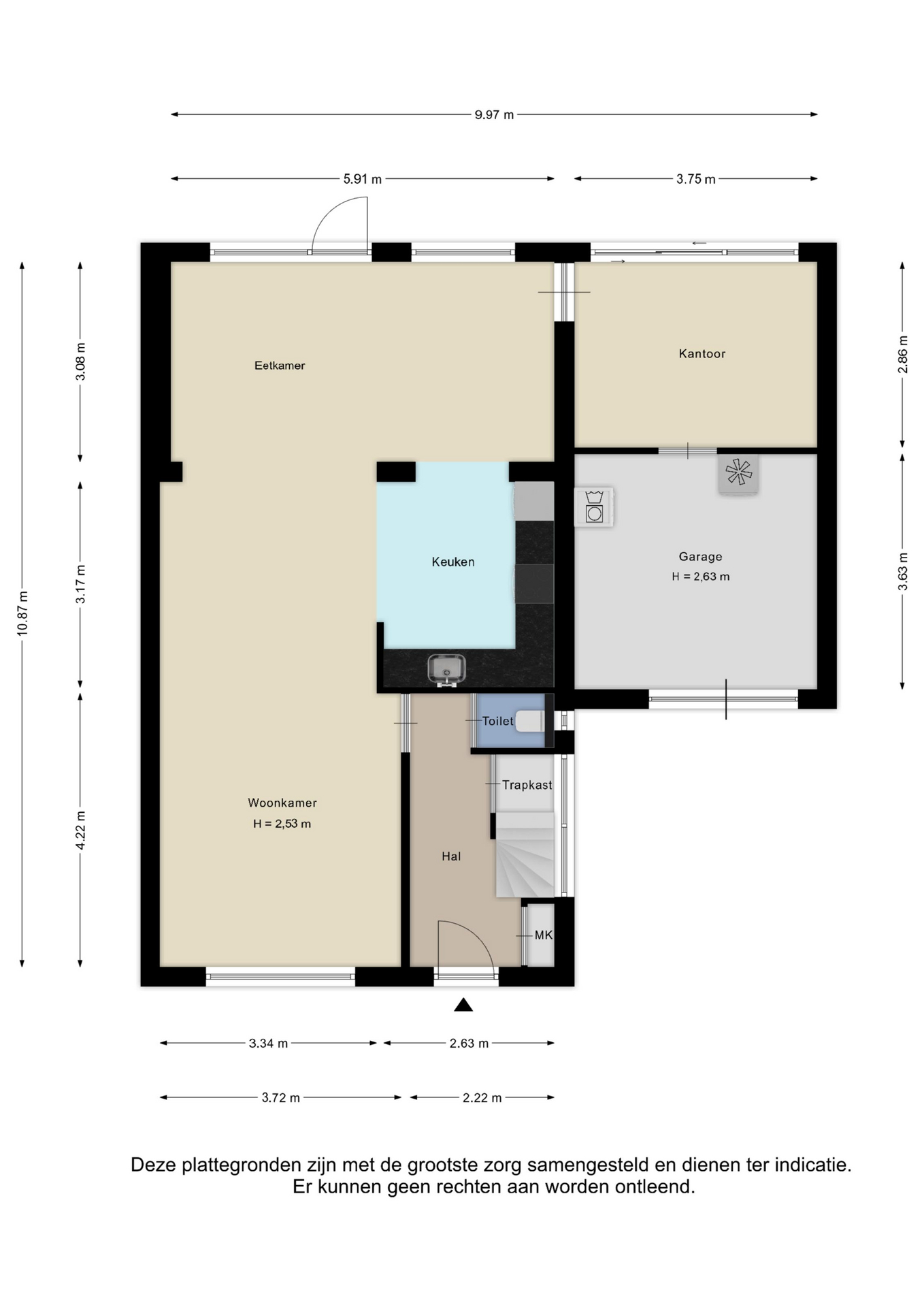 Alle door ons kantoor verstrekte informatie omtrent onroerende zaken, moet beschouwd worden als een uitnodiging om in onderhandeling te treden, en is geheel vrijblijvend! Alle vermelde maten en afmetingen zijn slechts bij benadering. Aan deze beperkte info kunnen geen rechten worden ontleend. Indien in enige documentatie of op enige website informatie staat die niet overeen komt met de werkelijkheid, dan geldt de feitelijke situatie waarin de woning zich bevindt, zoals koper deze tijdens de bezichtiging heeft kunnen waarnemen, en wordt de woning in deze feitelijke situatie/staat verkocht. Een (eventueel) bijgevoegde plattegrond dient uitsluitend als globale indicatie/visualisatie. Hieraan kunnen uitdrukkelijk geen rechten worden ontleend.