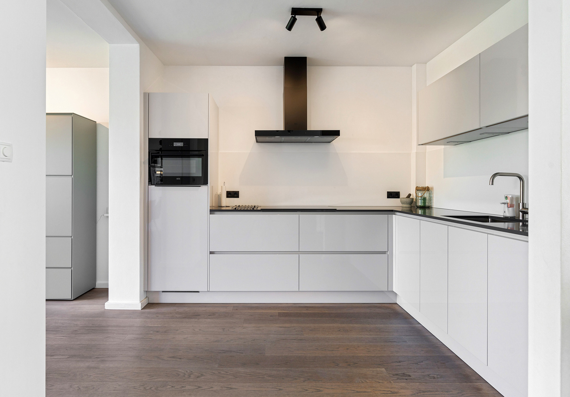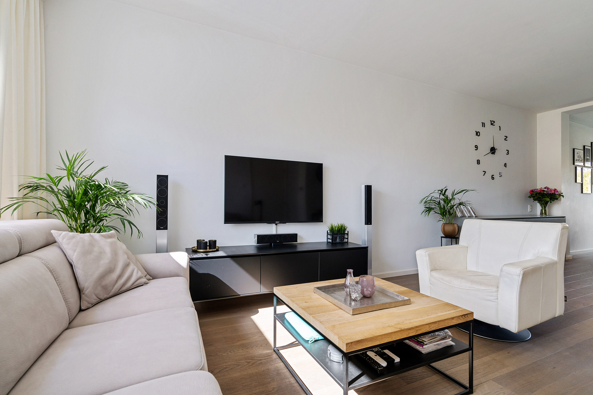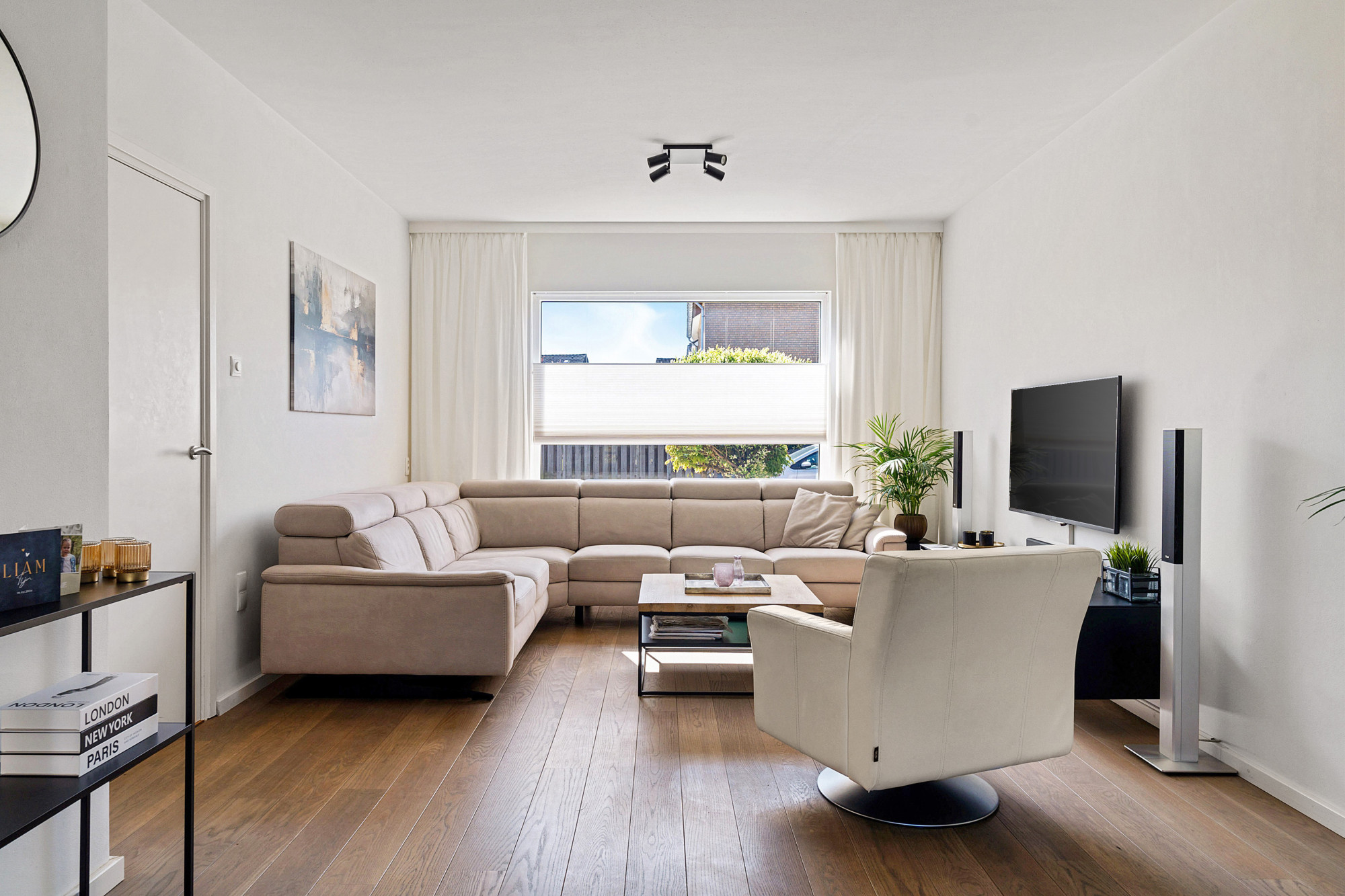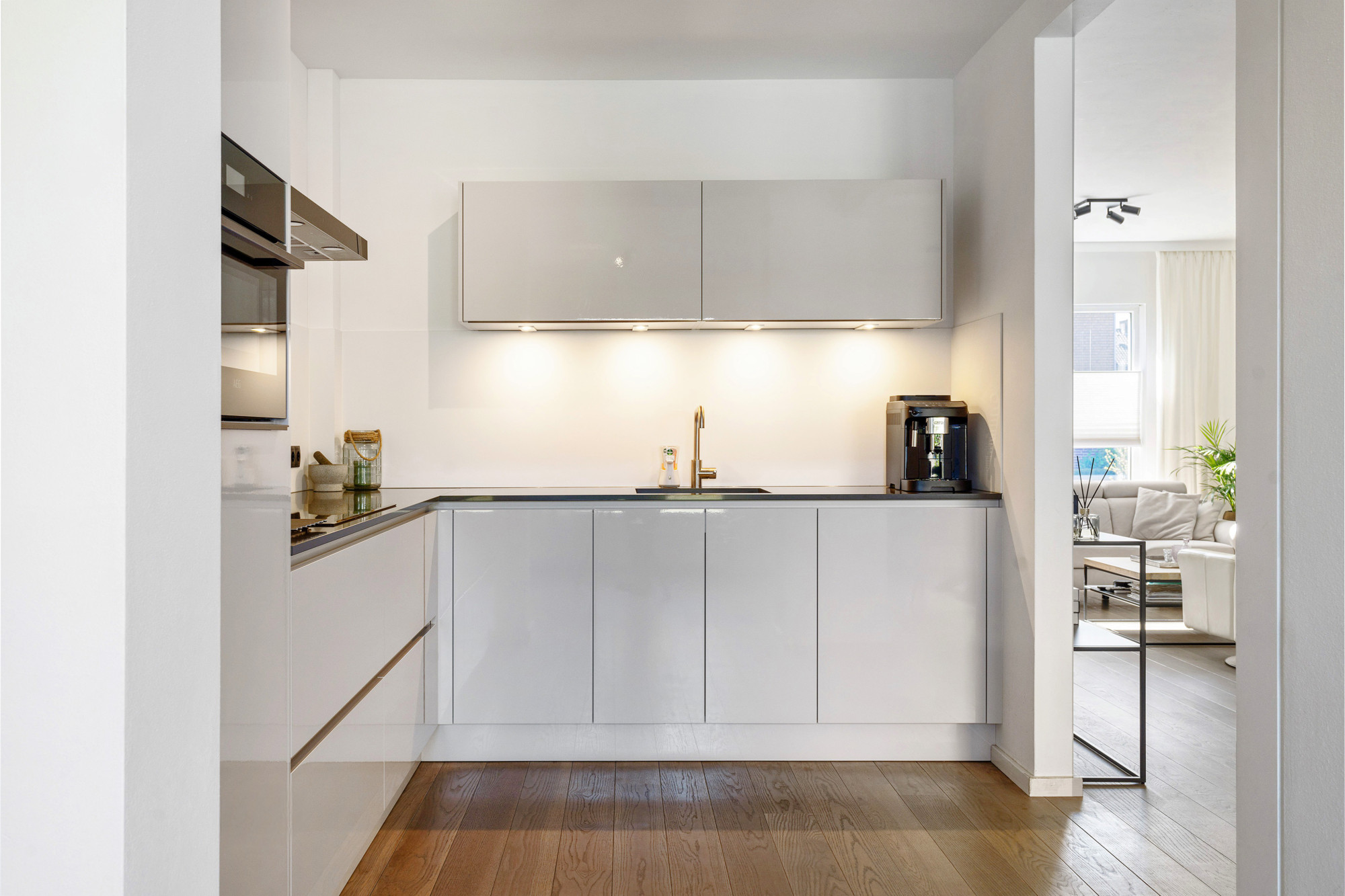 De lichte living is voorzien van een prachtige parketvloer en staat naadloos in verbinding met de half open keuken. De keuken (bouwjaar 2022) is v.v. alle denkbare gemakken, zoals inductie-kookplaat, combi-oven, koelkast en vaatwasser.