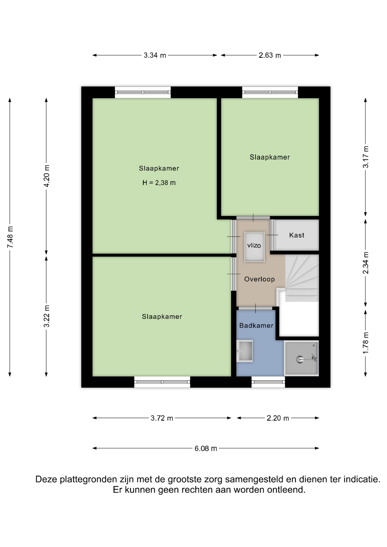 - Slaapkamer 3: ca. 3.17 x 2.63 m.