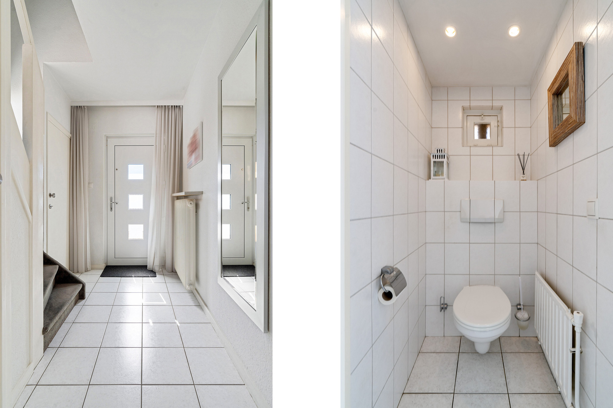 Via de entree/hal heeft u toegang tot de ruime living, meterkast, de trap naar de verdieping en de separate toiletruimte met toilet.