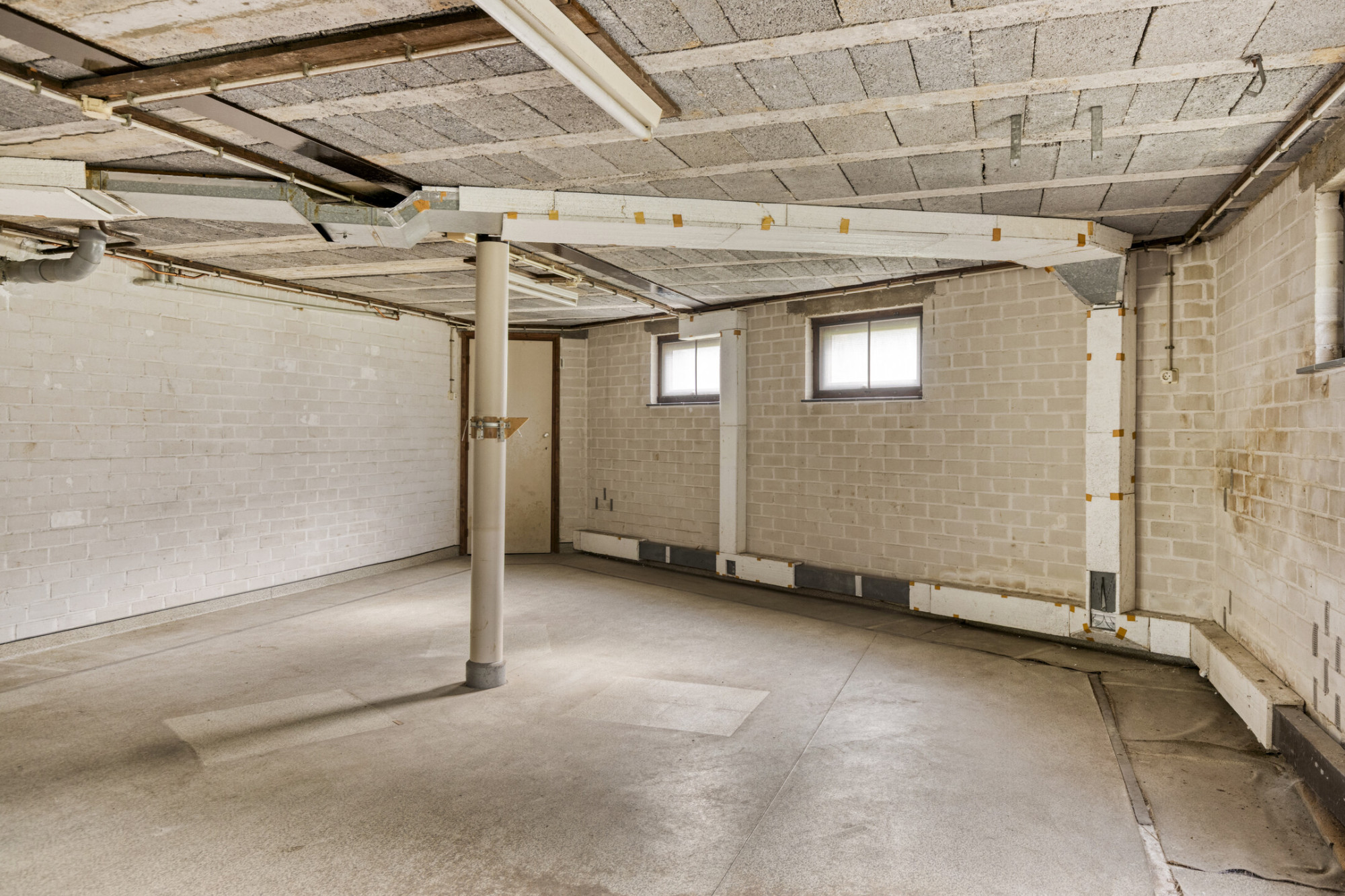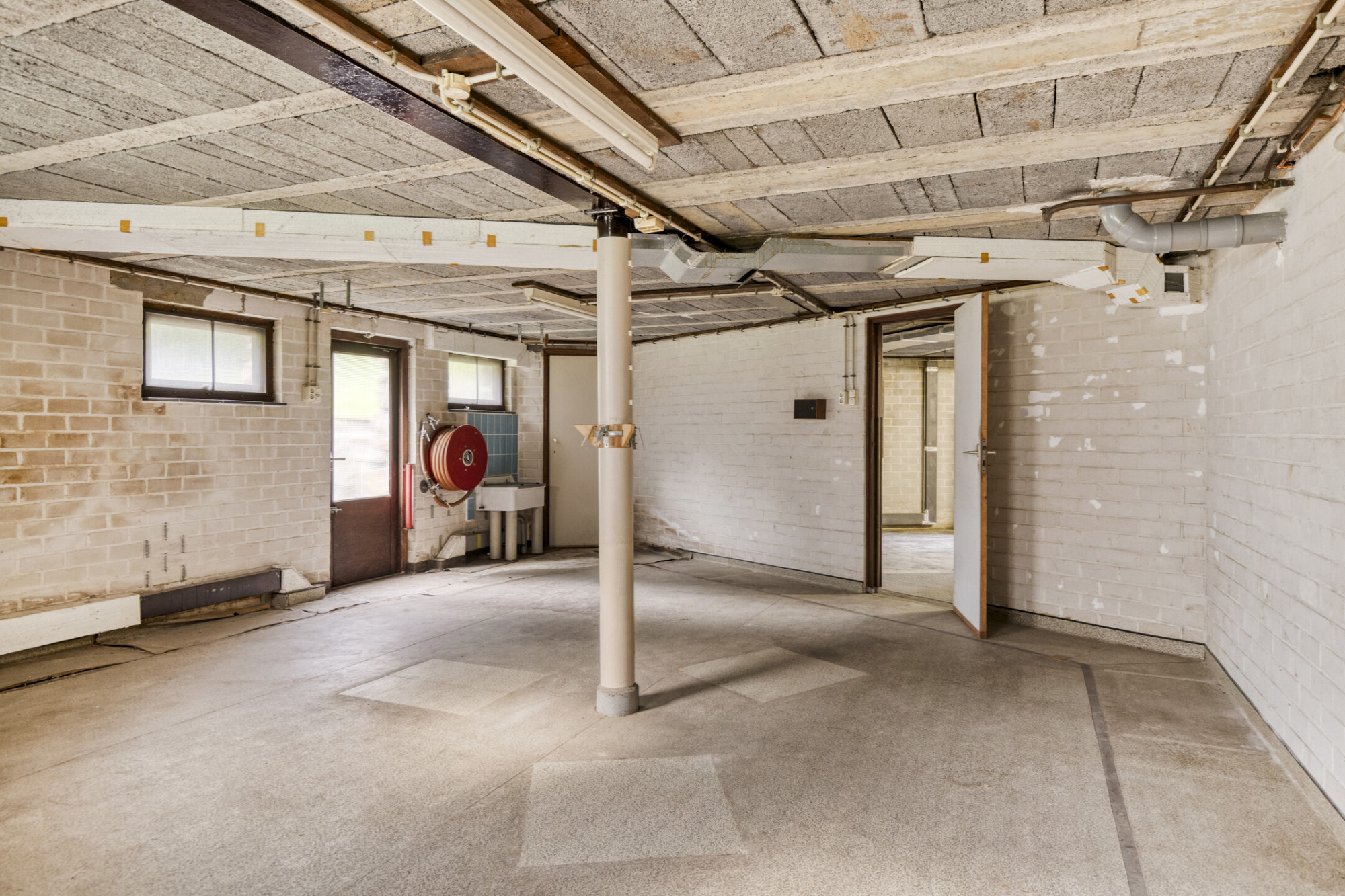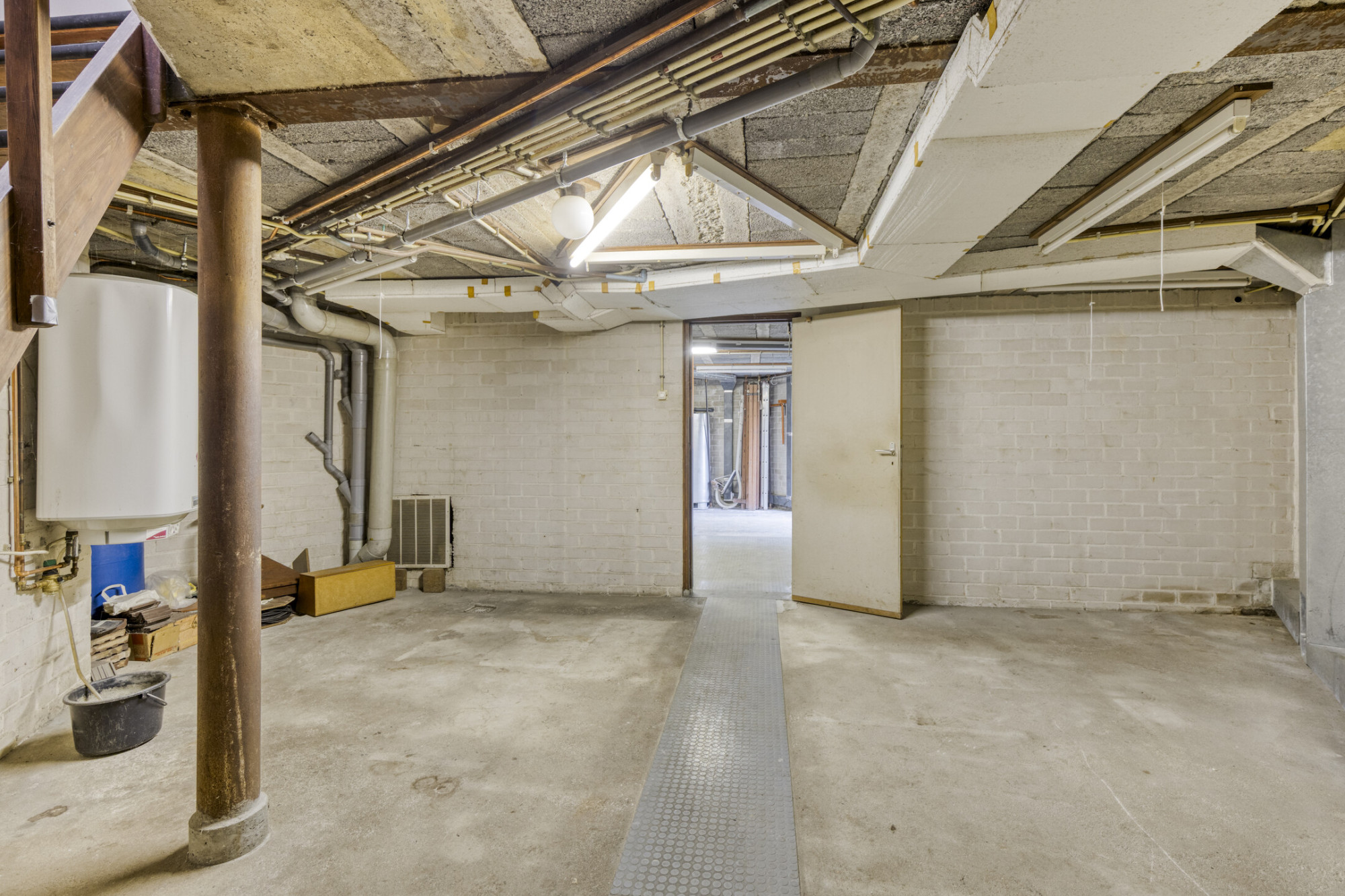 Grote ruimte met boiler en aansluiting/afvoer wasmachine.