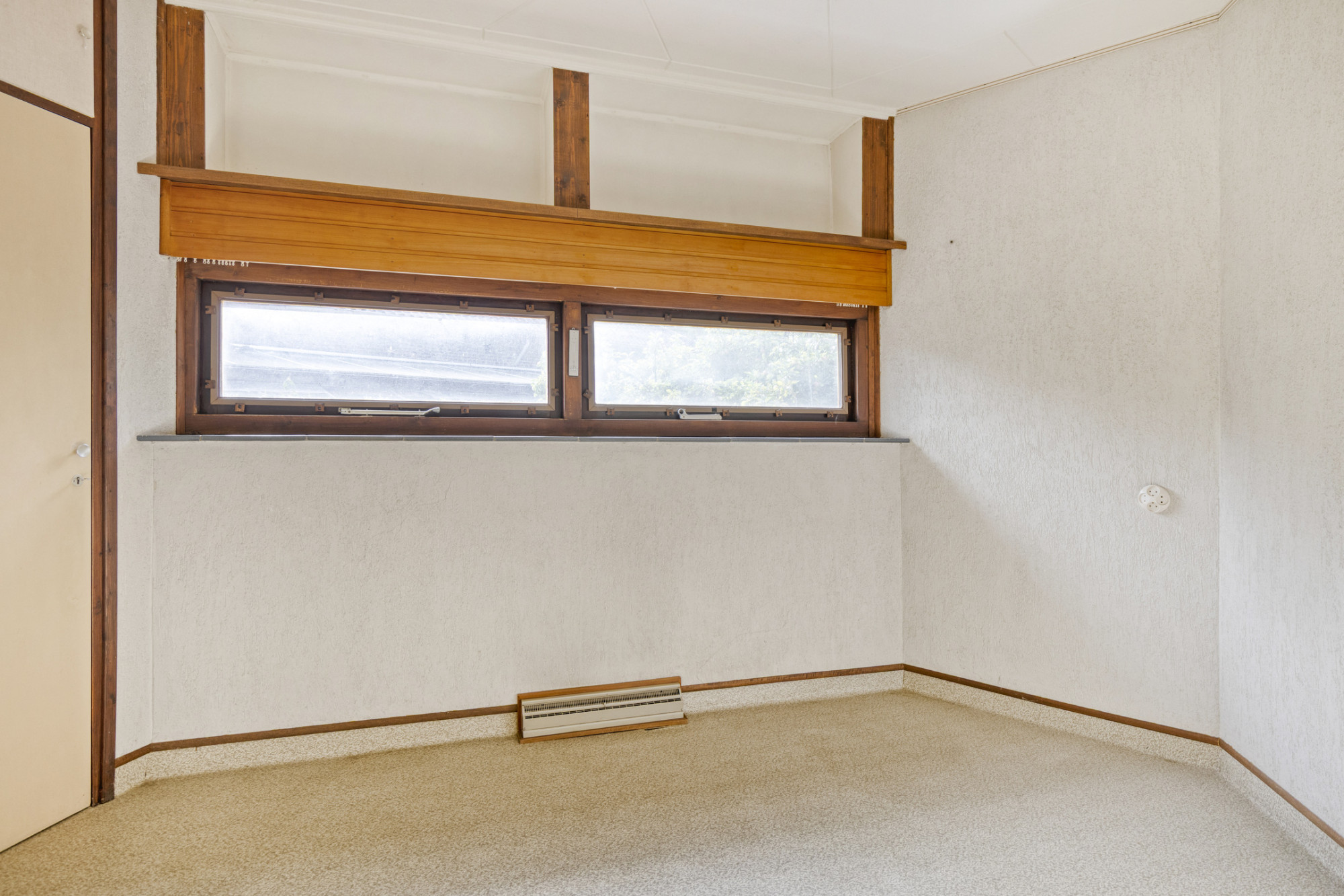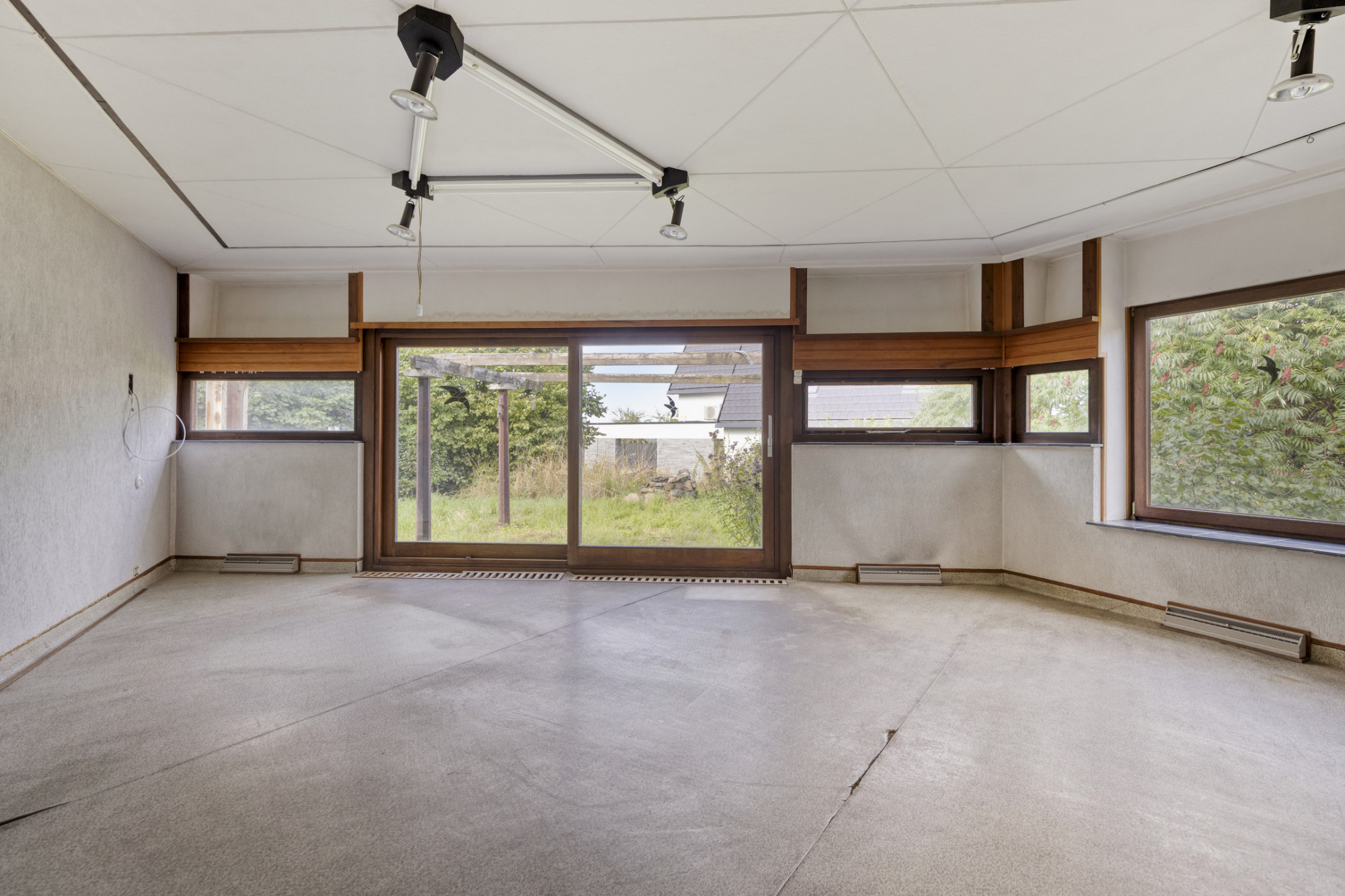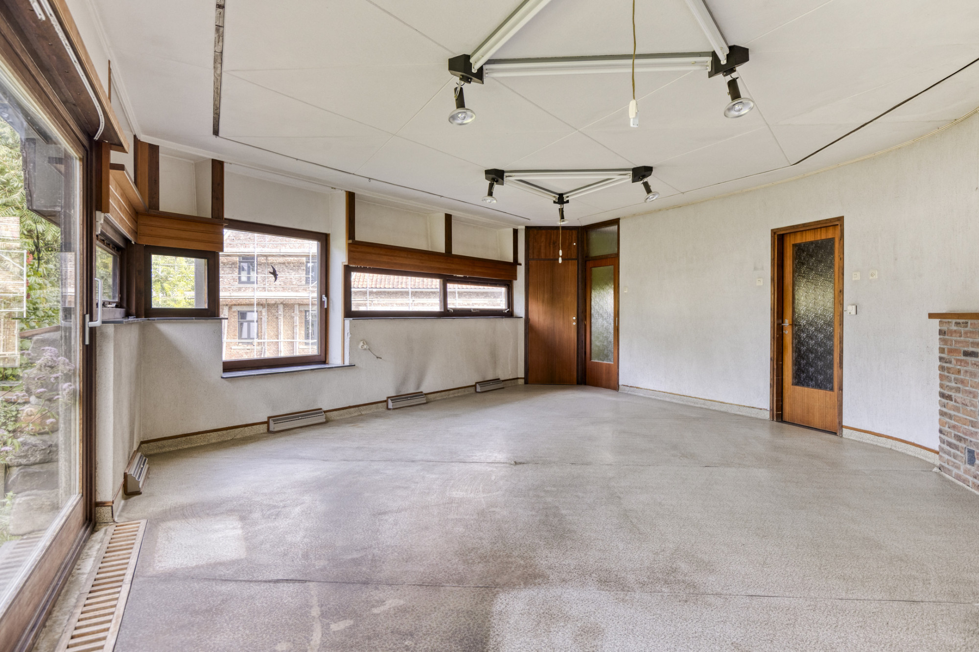 - Houten kozijnen met deel isolatieglas en deels voorzetramen.