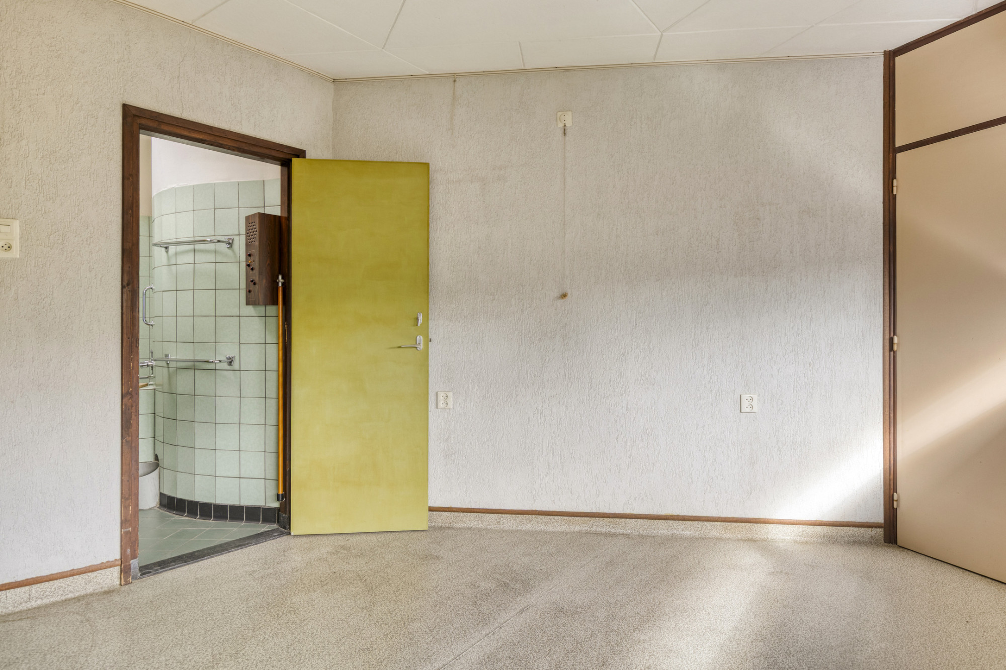 Grote hobby-/bergruimte met deur naar buiten.