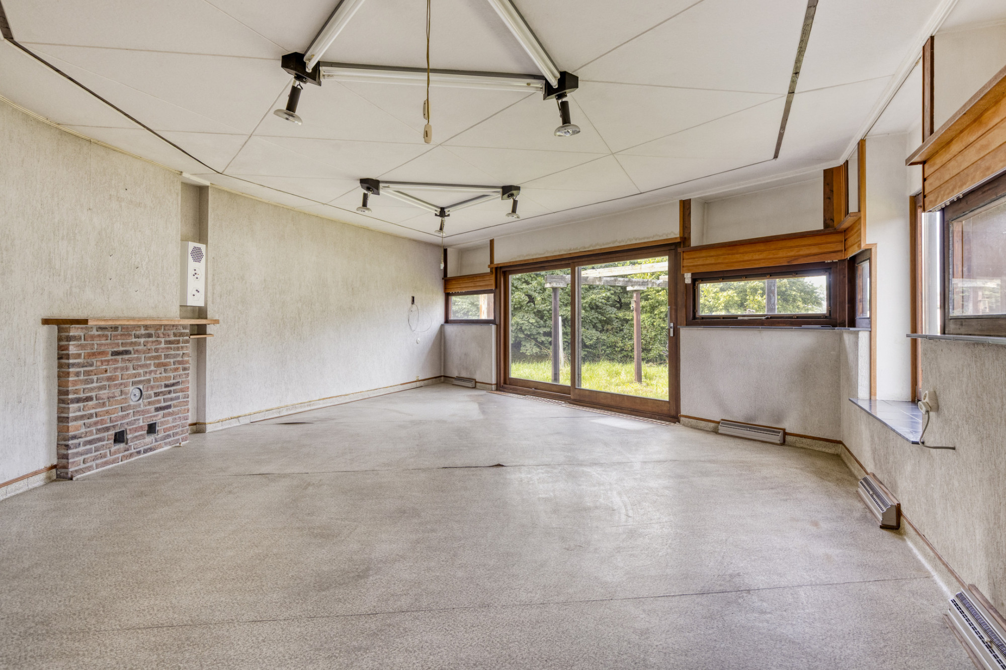 Woonkamer met schuifpui naar de tuin.