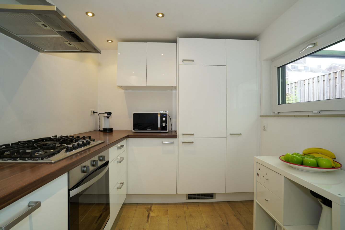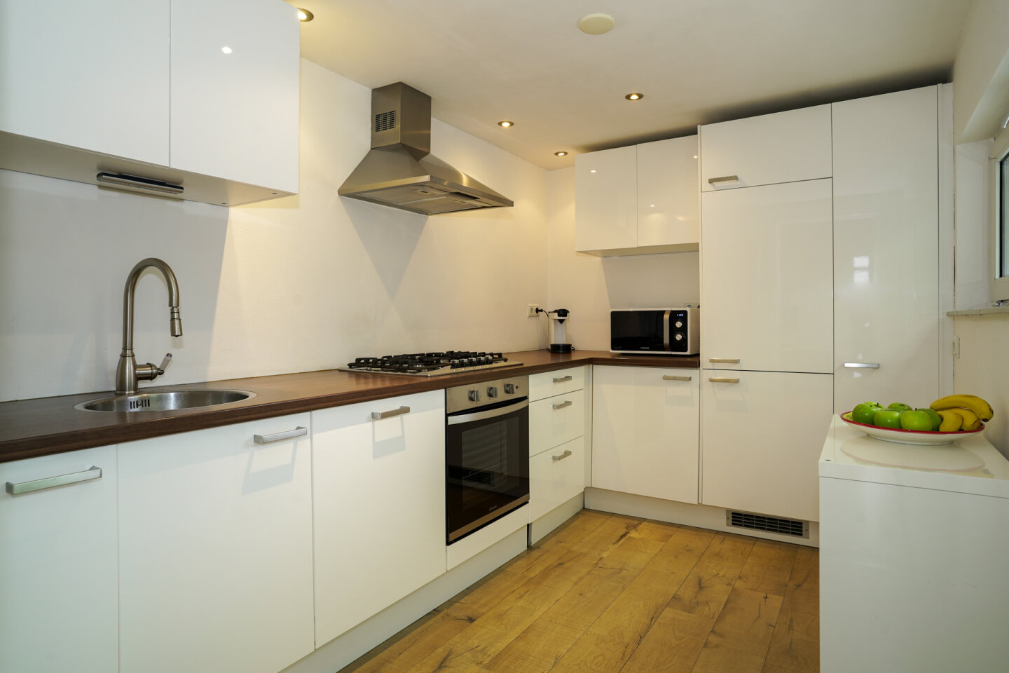 De moderne keuken is gelegen in de aanbouw(10 m2) en biedt een keuken in hoekopstelling voorzien van koelkast, diepvries, afwasmachine, afzuigkap en gaskookplaat.