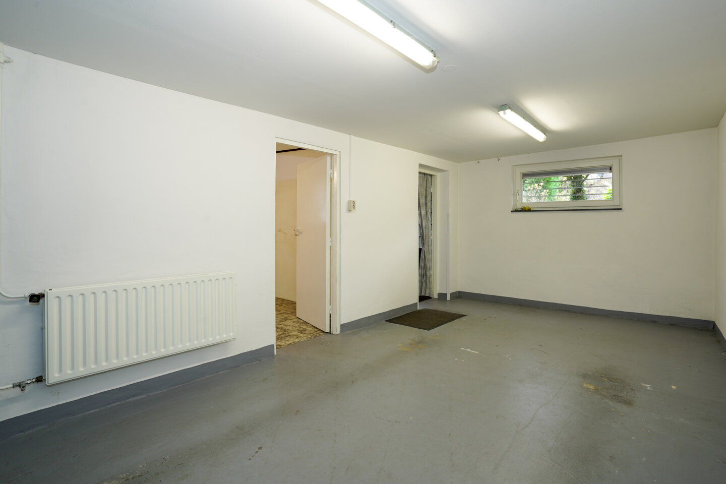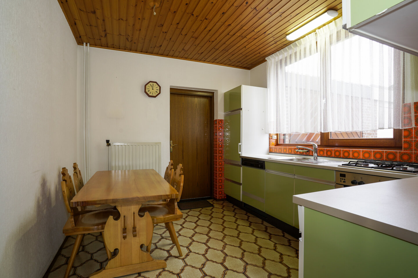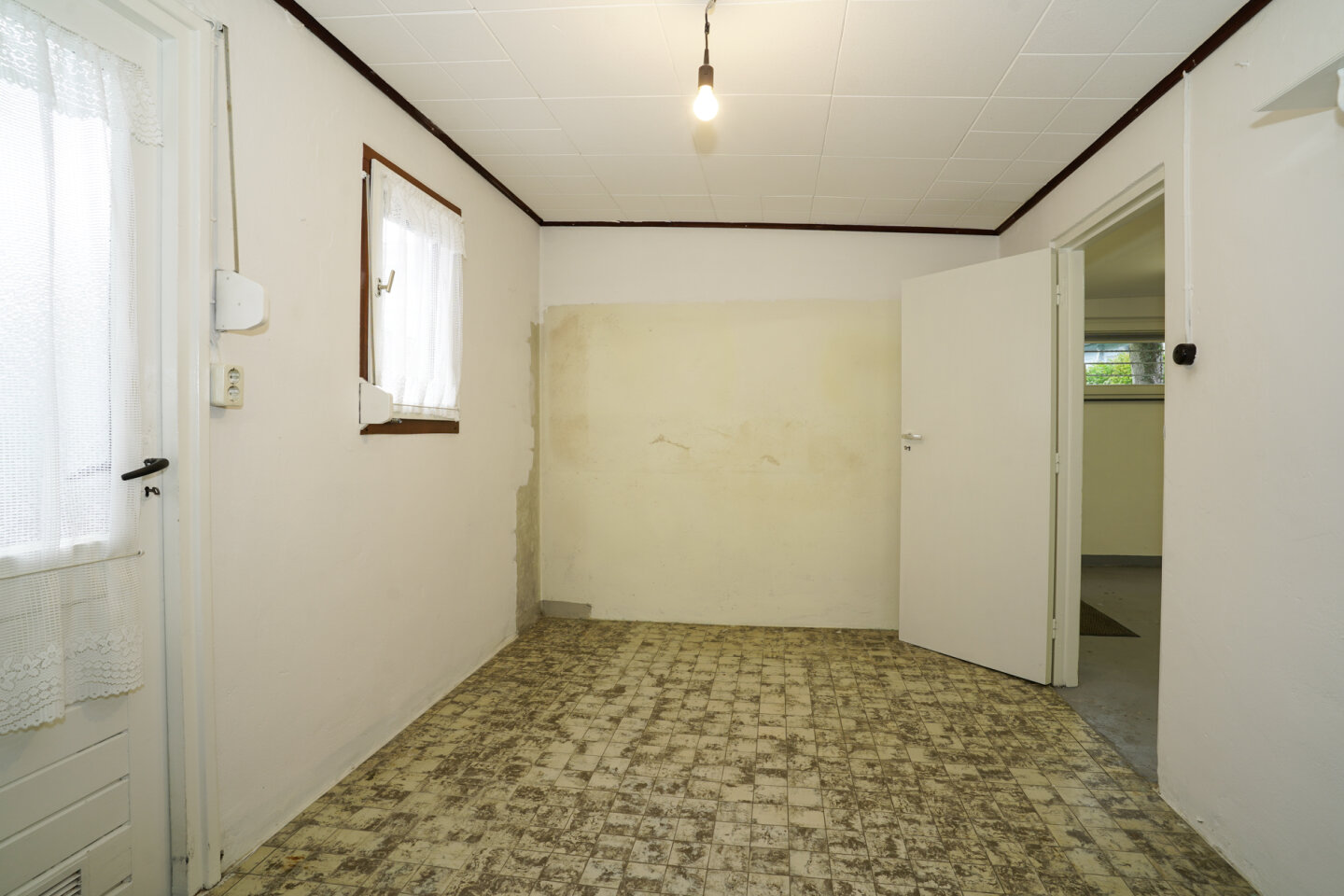 Lichte woonkamer (23 m2) met pvc vloer en schuifpui naar tuin. Keuken (11 m2) is oud maar nog volledig functioneel en is deels voorzien van nieuwe apparatuur koelkast, afwasmachine, afzuigkap, gaskookplaat en oven. Vanuit de keuken is de bijkeuken (10 m2) en garage (18 m2) bereikbaar, beiden zijn voorzien van elektra en verwarming. De tuin is bereikbaar via de woonkamer, bijkeuken en berging bij garage.