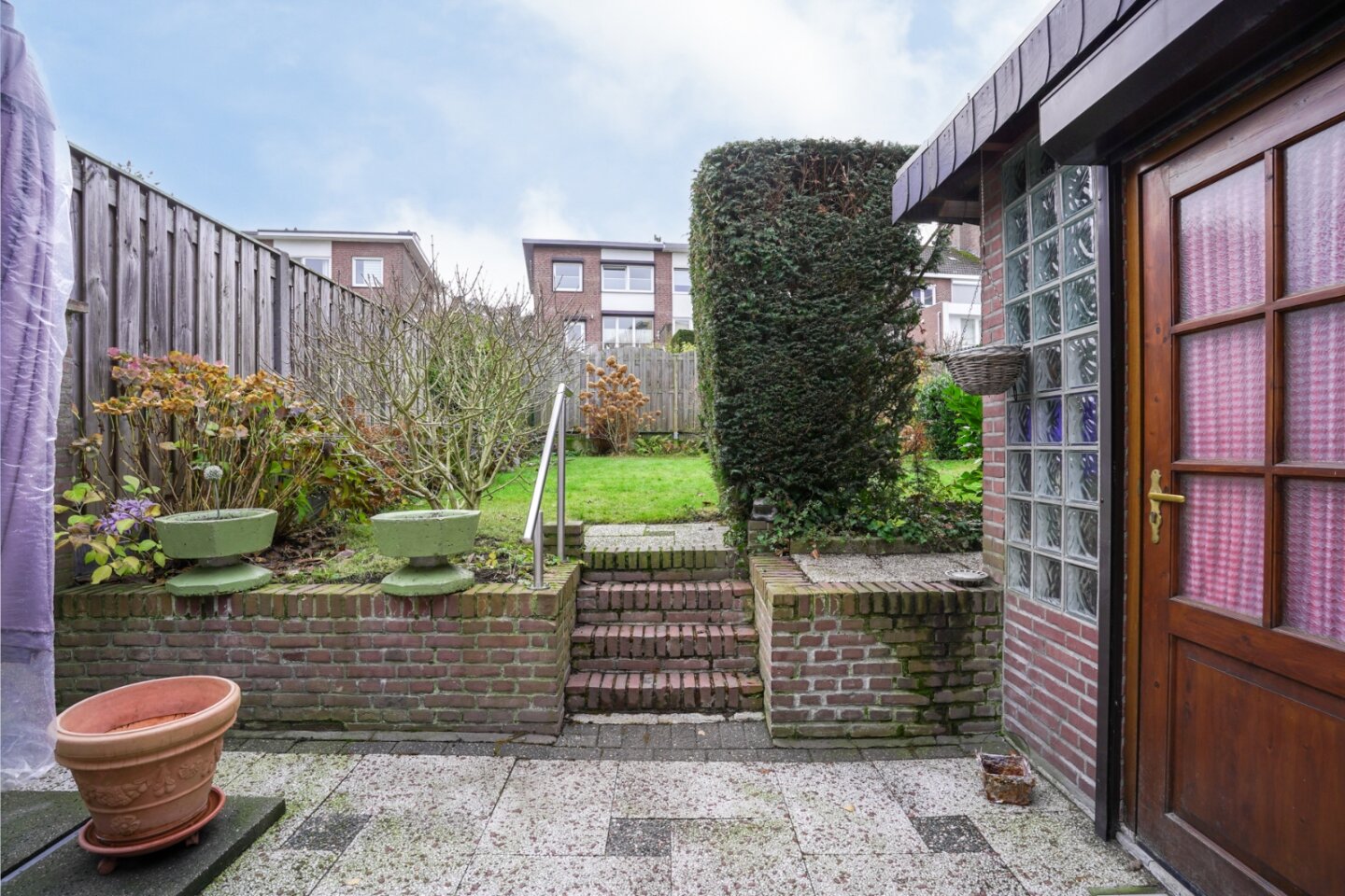 Heerlijke zonnige achtertuin gelegen op het Zuiden. Met een overkapping en zonwering aan de woning. De tuin biedt veel privacy en heeft een terras, gazon en beplanting. De voortuin is onderhoudsarm en er kunnen met gemak 2 auto's op eigen terrein worden geparkeerd.