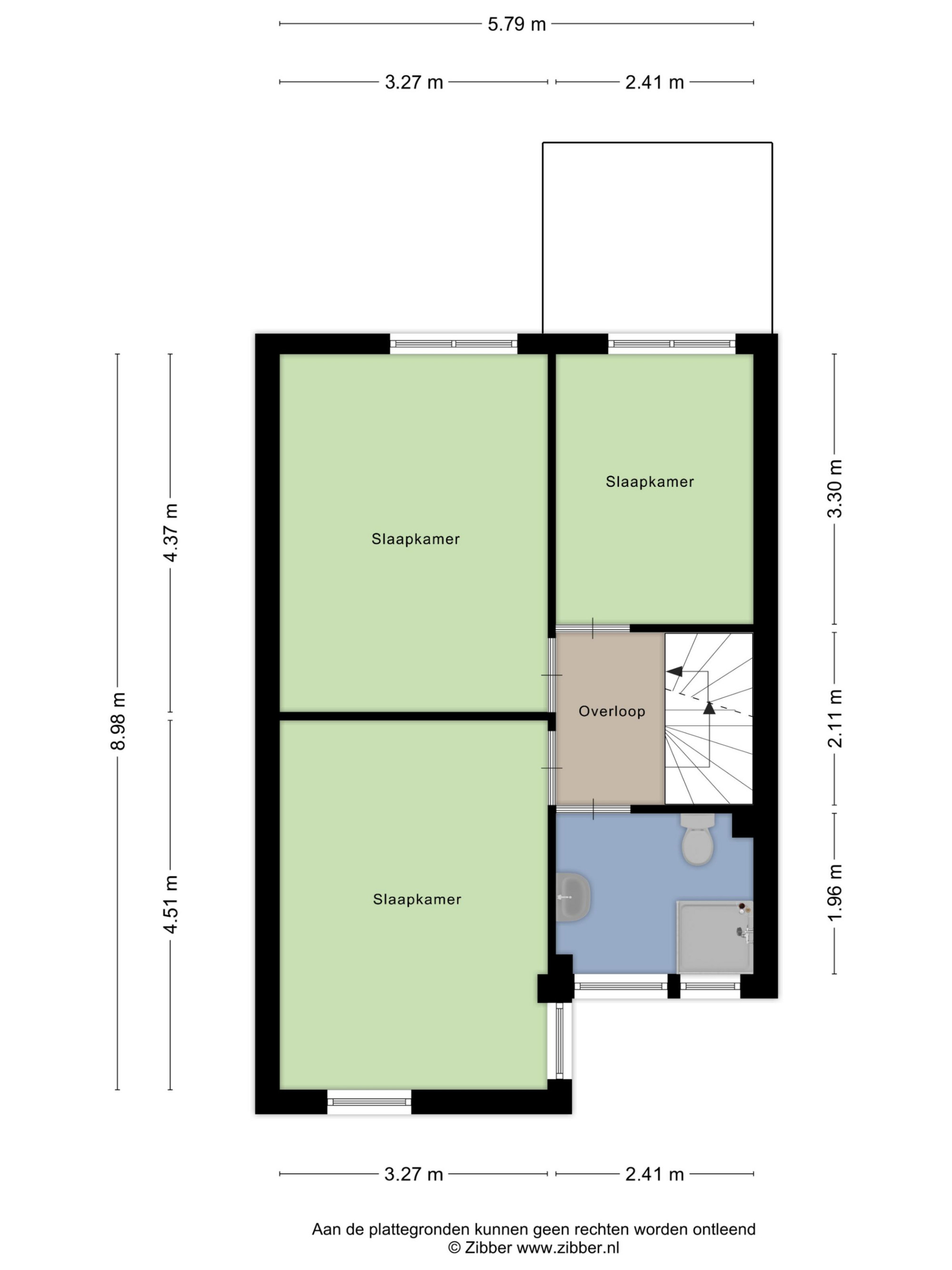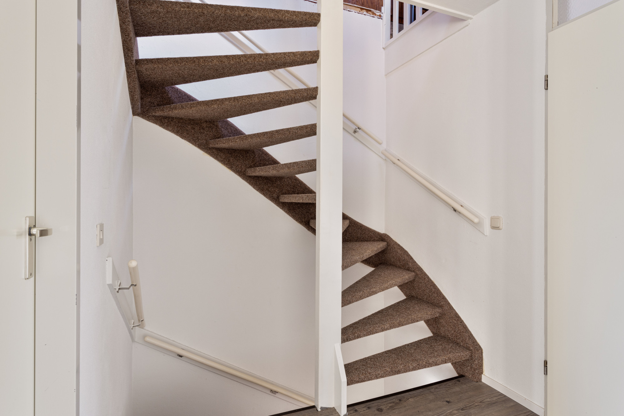 Tevens biedt de overloop toegang tot de badkamer en de trapopgang naar de tweede verdieping.