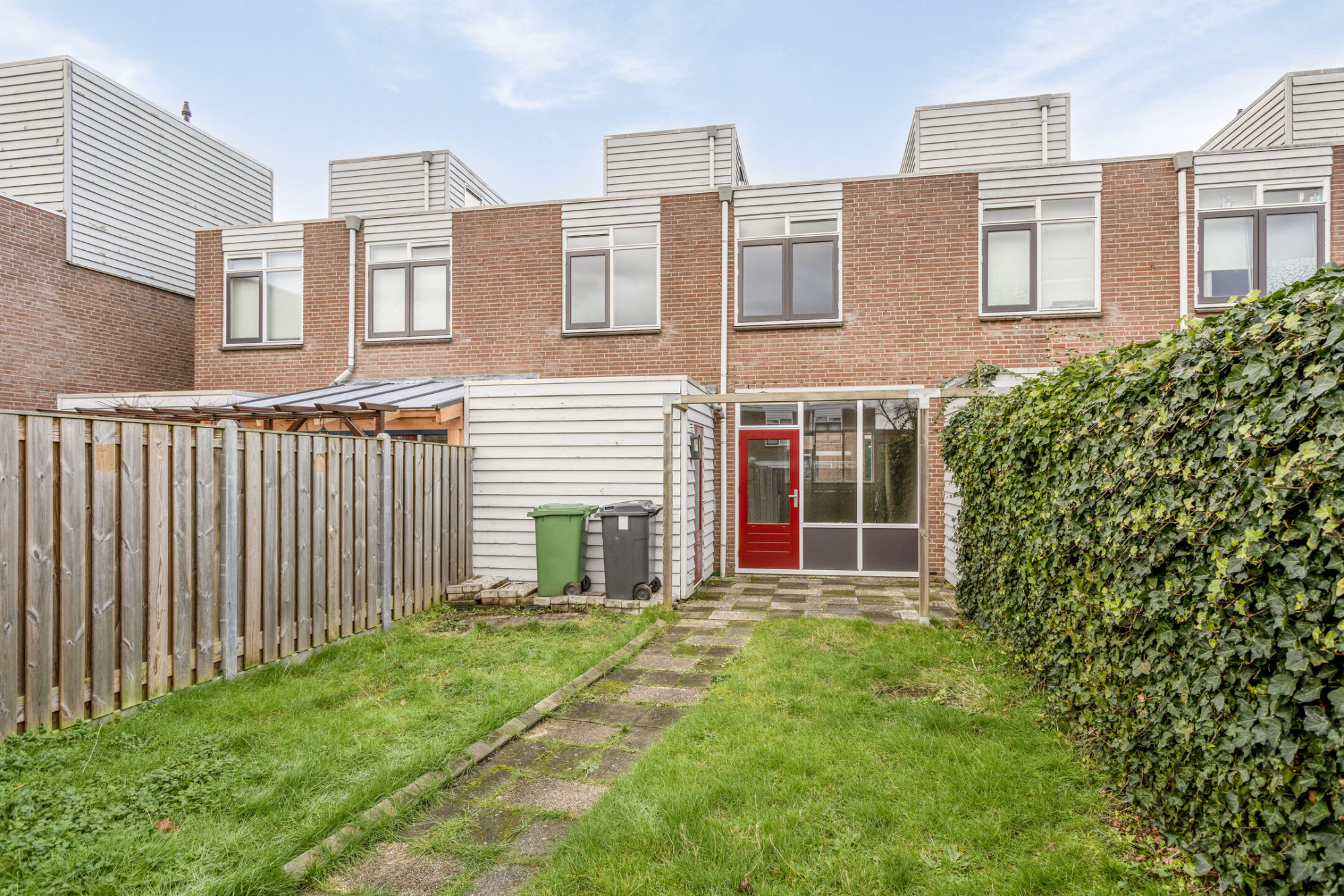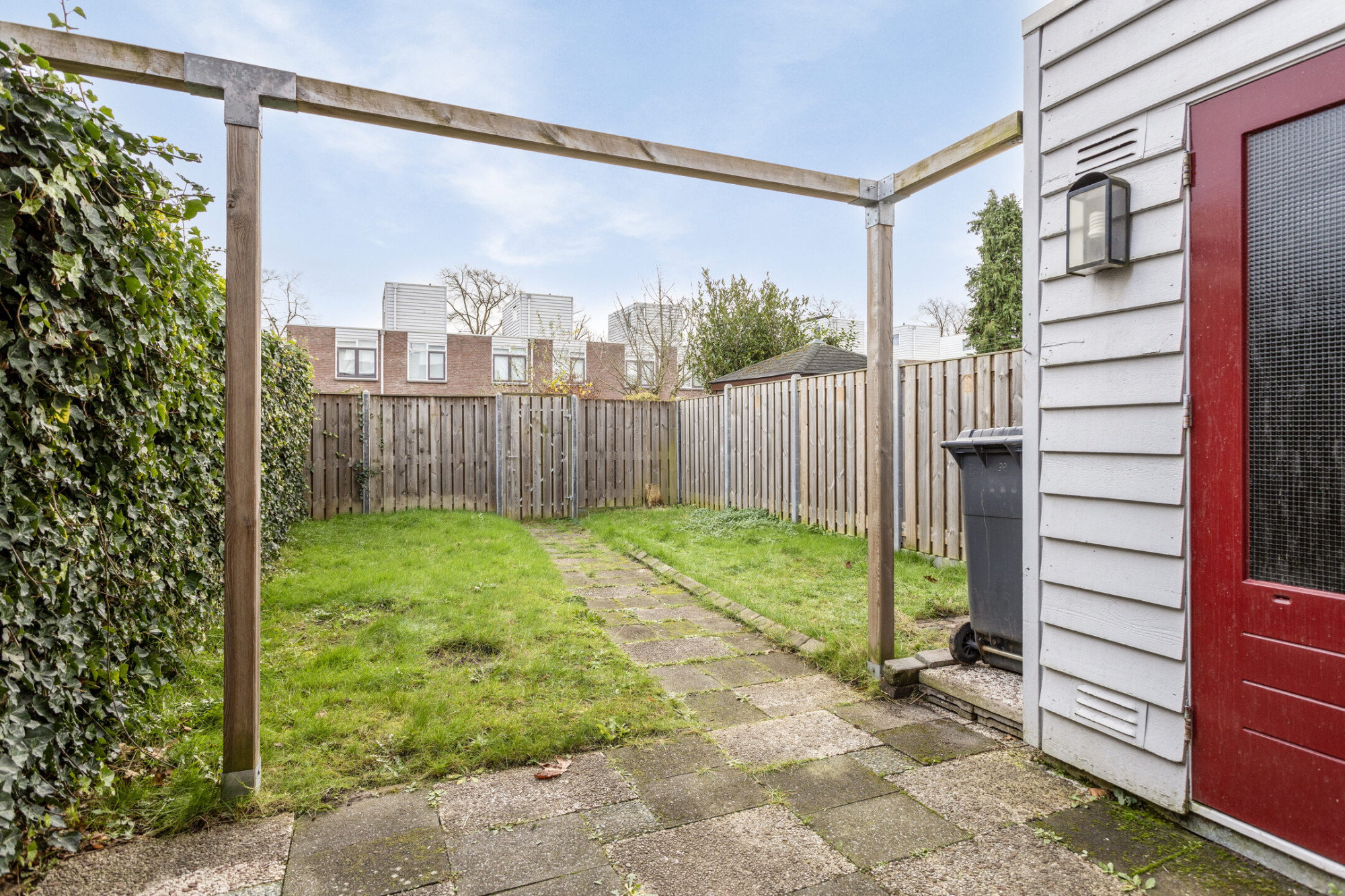 Via de woonkamer komt u in de tuin. Deze is eenvoudig uitgevoerd met een houten aangebouwde berging en een vrije achterom en is gelegen op het zuidoosten.